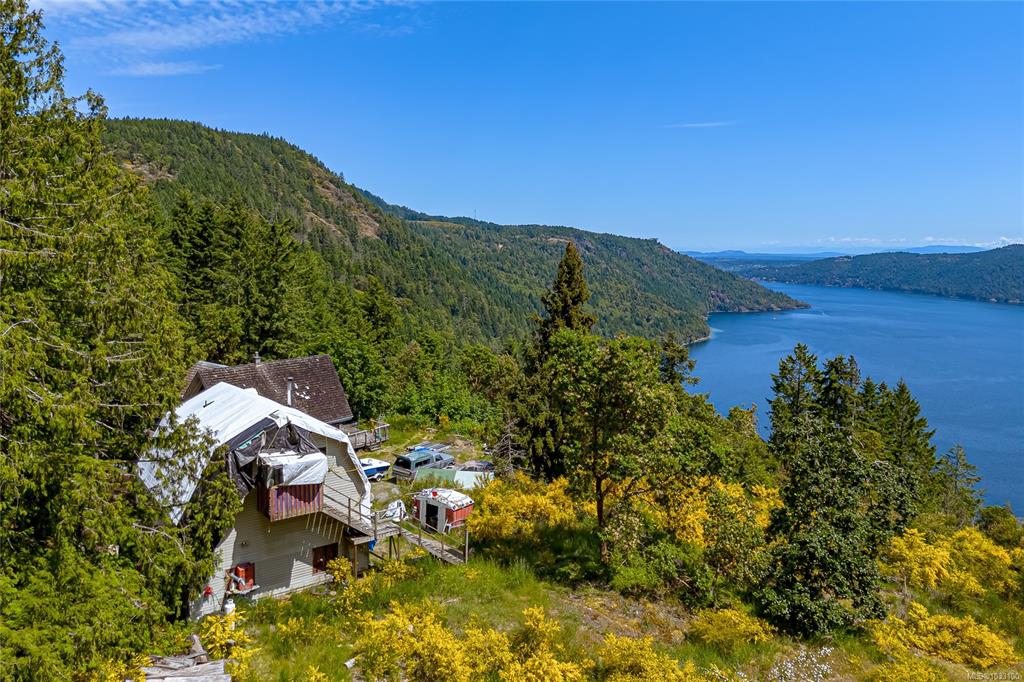 Gorgeous views of Saanich Inlet from this 17+ acres parcel. The original house was built in 1986, with a vaulted ceiling in the living room. Dining room, Kitchen, and bathroom on the main floor, with the primary bedroom on the second-level loft. Very large detached workshop/Garage with a 1-bedroom in-law accommodations. All measurements are approximate, and land size is taken from the BC Assessment Authority. Call now for an appointment to view