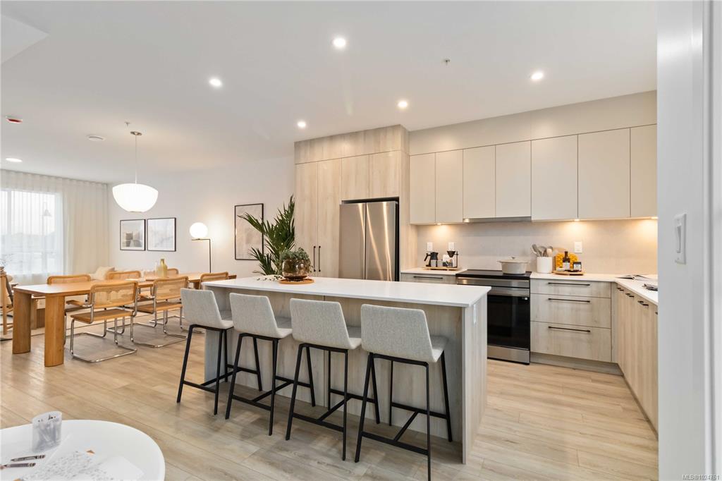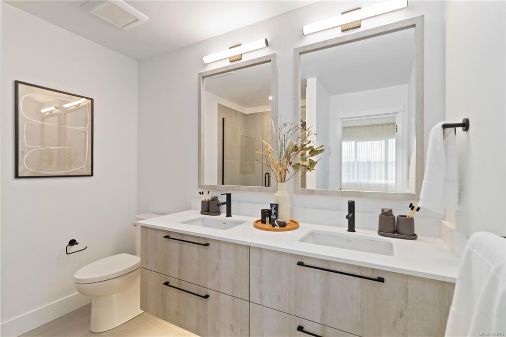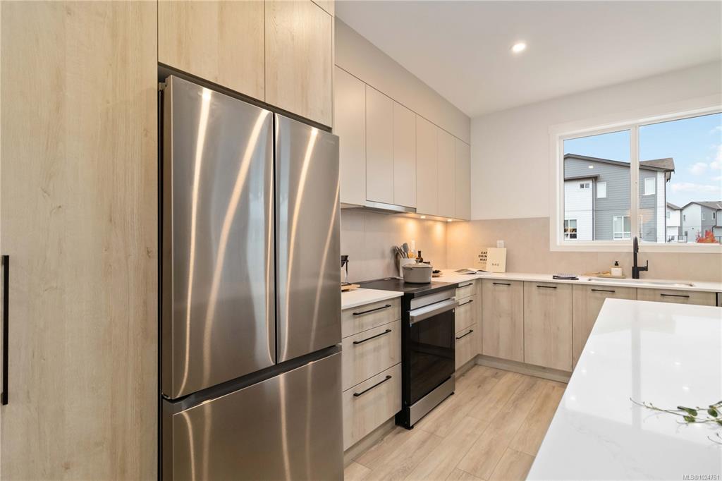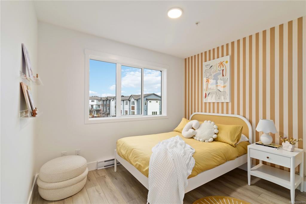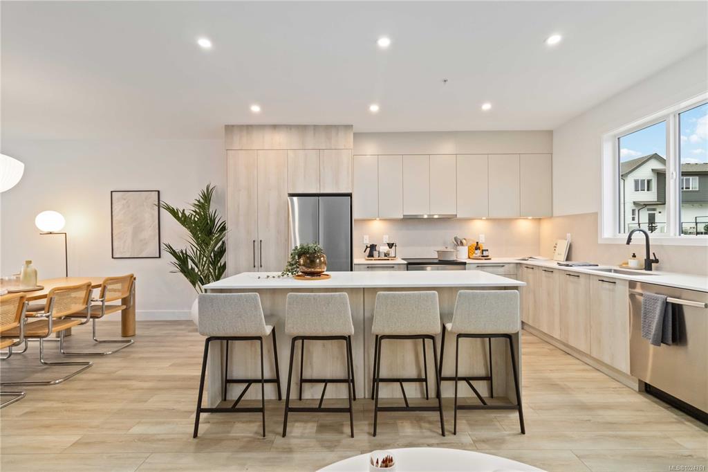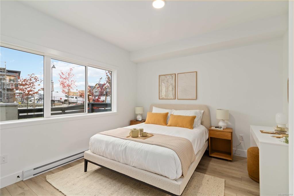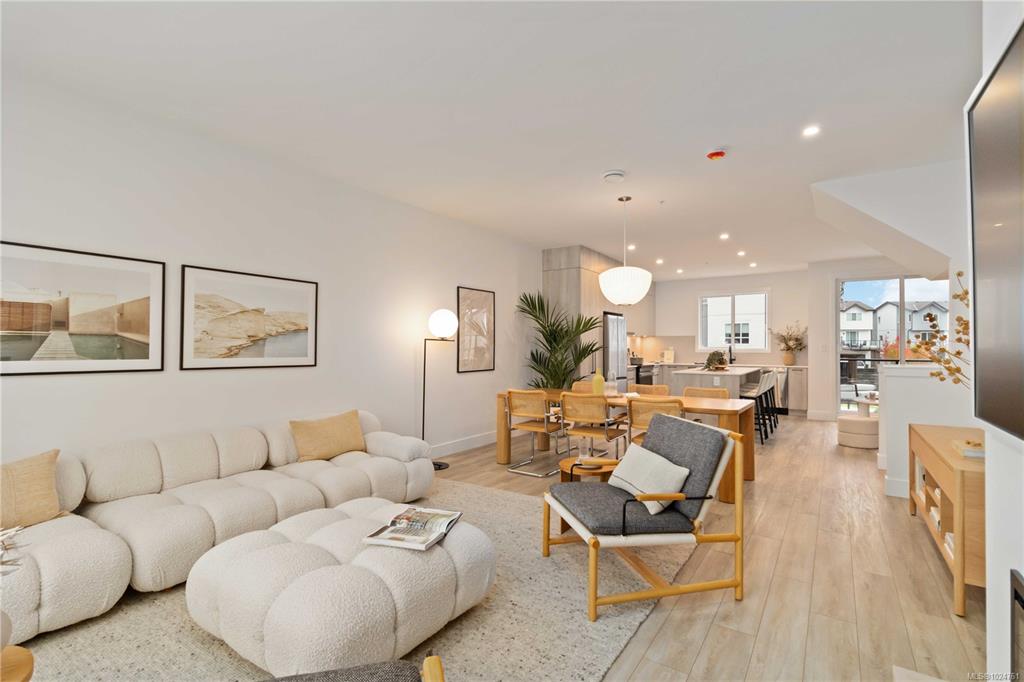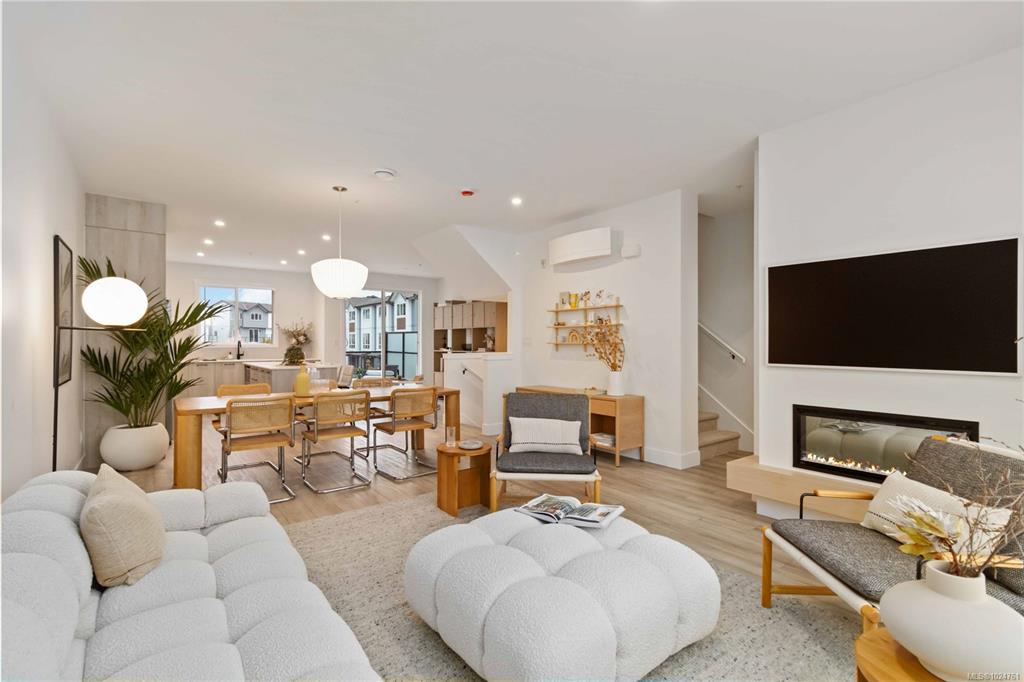 Exceptional townhome showcasing impeccable craftsmanship & sophisticated finishes throughout. Soaring 9-ft ceilings anchor the open-concept living spaces, enhanced by luxury vinyl plank flooring & elegant electric fireplace that adds warm ambiance to the living rm. Gourmet kitchen features engineered stone countertops, custom two-tone cabinetry with matte black hardware, & modern appliances. Elevated bathrooms with floating vanities with under-cabinet lighting, frameless glass shower enclosures, & large-for...