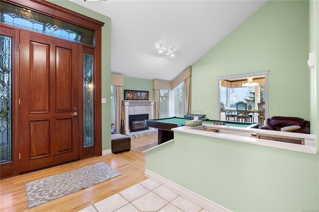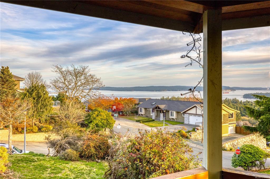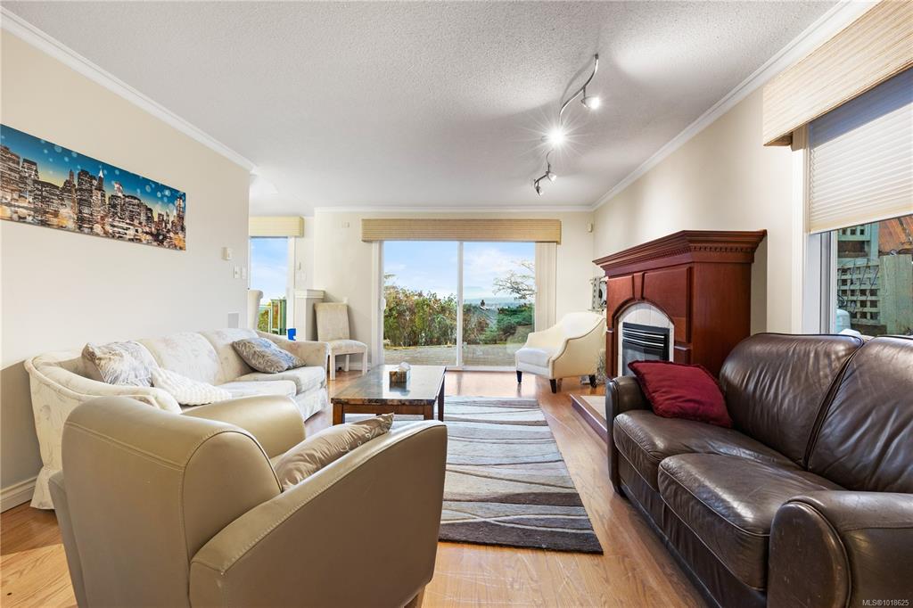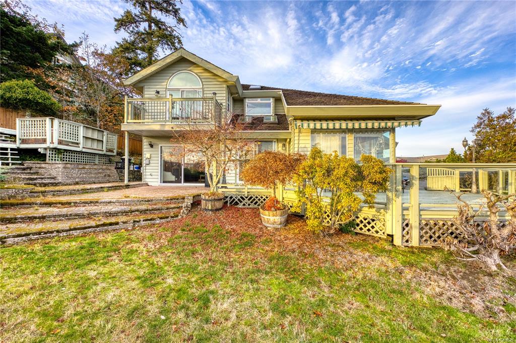 Welcome to 3688 Glen Oak Drive, where ocean, mountain, and city views unite in a stunning home, with a carriage house on site. The entry features a solid oak door with side windows, opening to a vaulted living room with a striking hanging light. The main level offers two family rooms, each with a fireplace, plus a bright dining area and kitchen with stone countertops, undermount sink, white cabinets, tile backsplash, stainless steel appliances, and an ocean-view eating nook. Step onto the large Ocean and Ci...