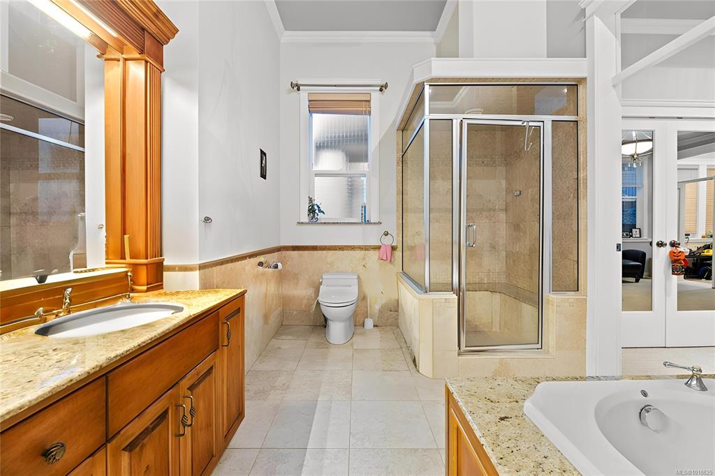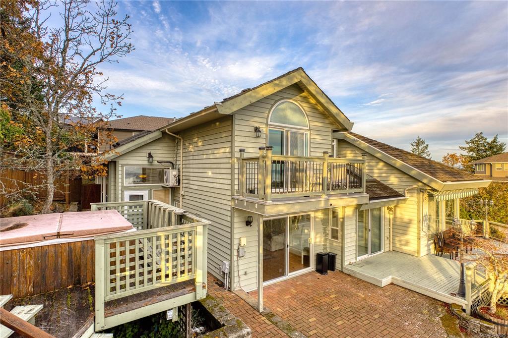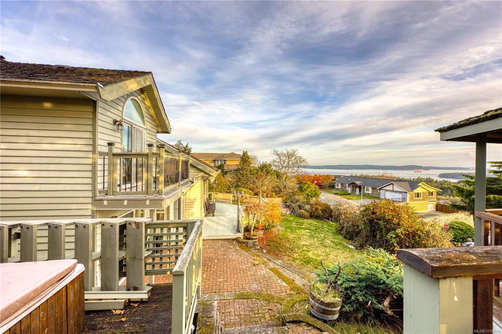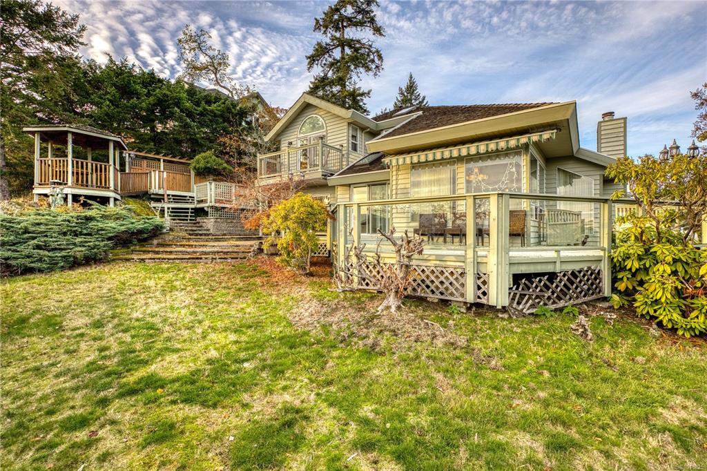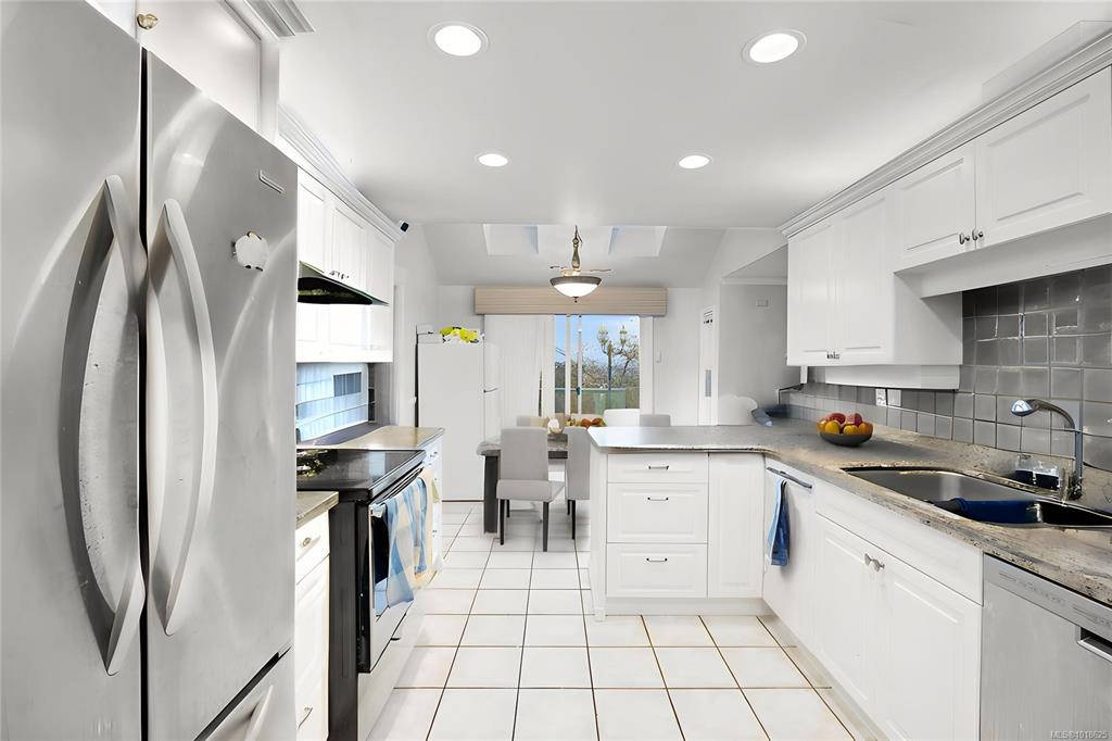 Welcome to 3688 Glen Oak Drive, where ocean, mountain, and city views unite in a stunning home, with a carriage house on site. The entry features a solid oak door with side windows, opening to a vaulted living room with a striking hanging light. The main level offers two family rooms, each with a fireplace, plus a bright dining area and kitchen with stone countertops, undermount sink, white cabinets, tile backsplash, stainless steel appliances, and an ocean-view eating nook. Step onto the large Ocean and Ci...