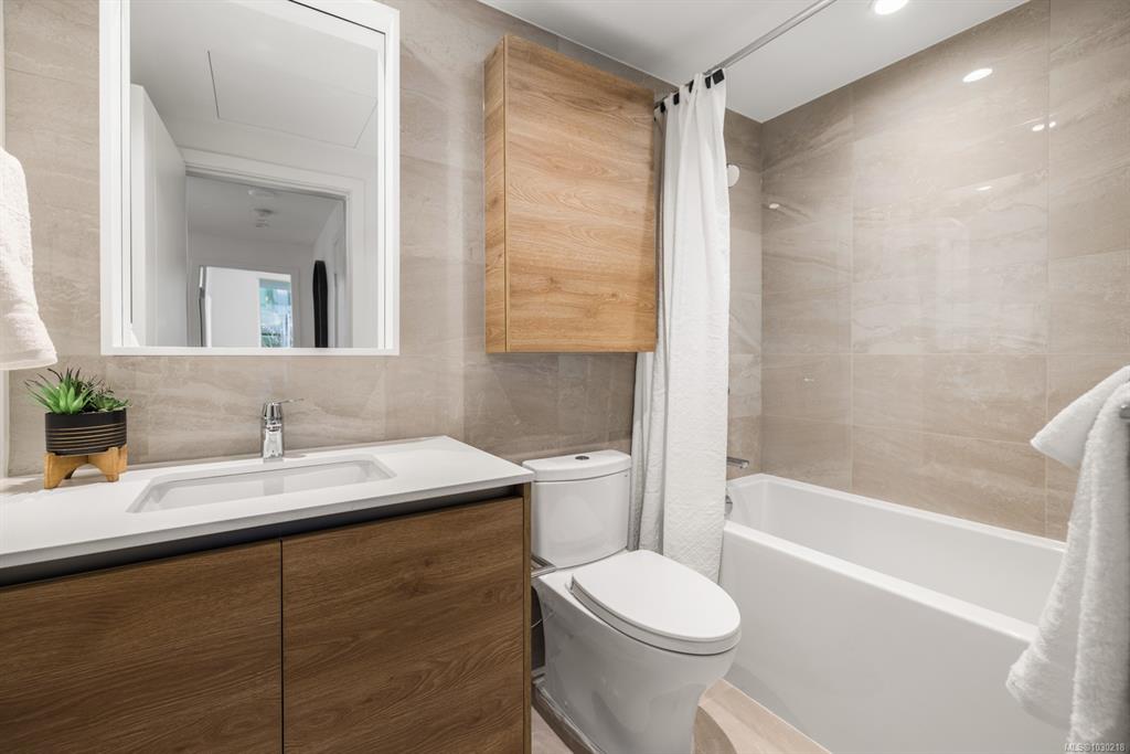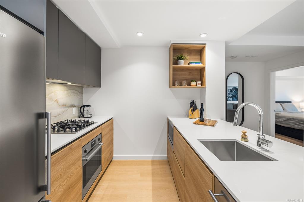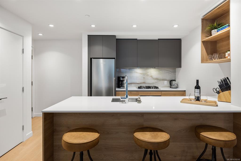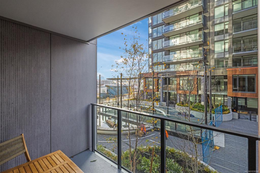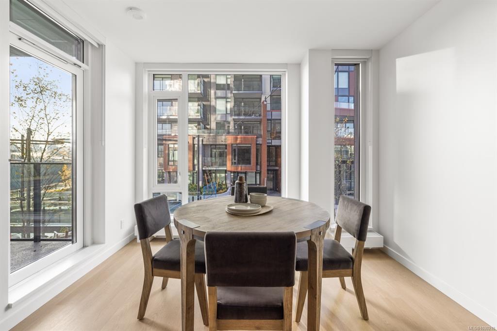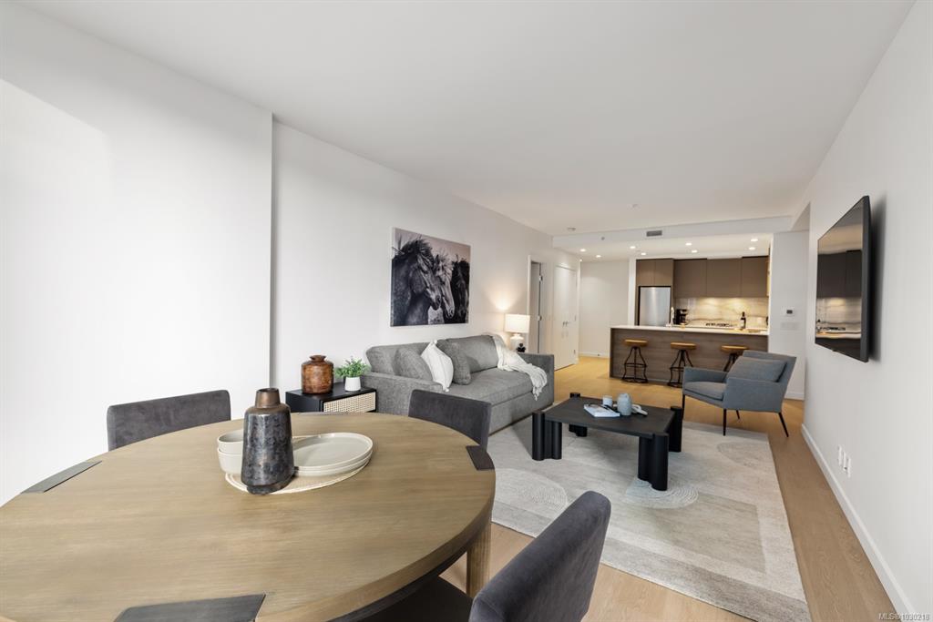 Welcome to Dockside Green- well suited to single professionals or couples seeking a true work-from-home layout. This spacious one-bedroom residence offers almost 900 sq ft of functional living, with a generous den that provides an ideal workspace and room for guests. Expansive windows fill the home with natural light, while the chef’s kitchen features elegant cabinetry, gleaming countertops & refined finishes alongside a spa-inspired bath. A private south-facing balcony offers a quiet outdoor retreat. Enjoy...