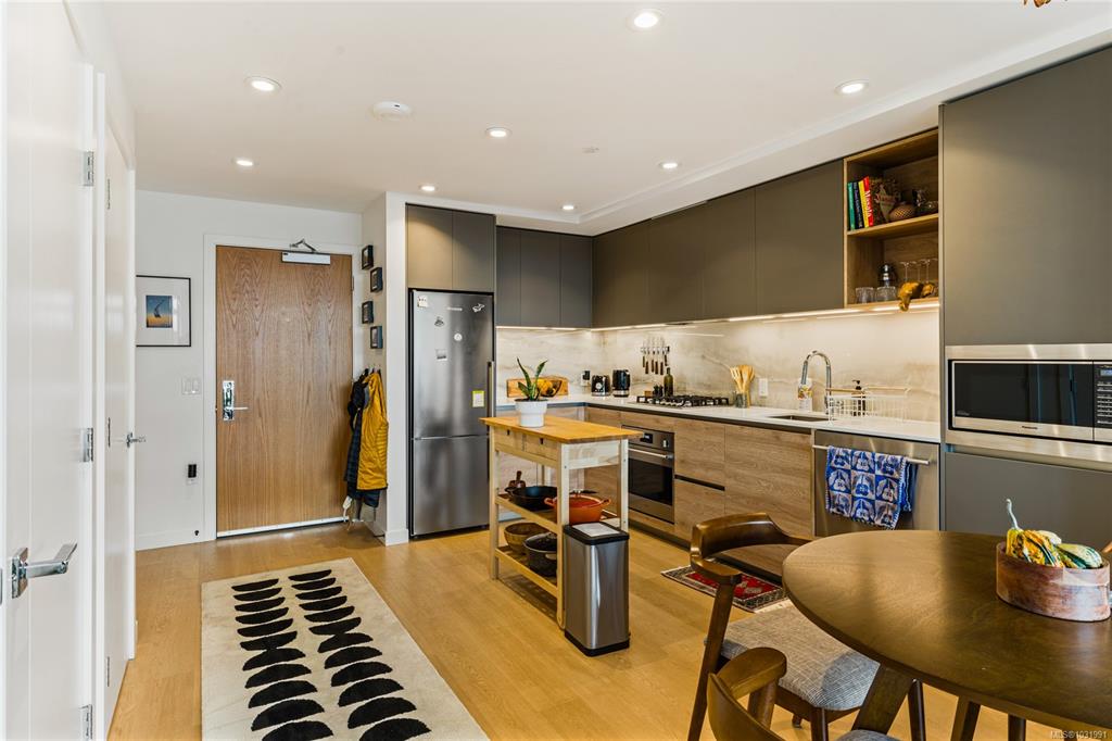 Welcome to coveted Dockside Green by Bosa Development in this bright and modern 1BED, 1BATH condo spanning 590 sq ft, located at 369 Tyee Road. Designed to maximize space and natural light, the home features a spacious southwest-facing balcony with views of the city—perfect for seamless indoor-outdoor living. The sleek kitchen showcases Italian cabinetry and premium European appliances, blending sophisticated design with energy efficiency. West Coast materials and natural finishes create a stylish and welco...