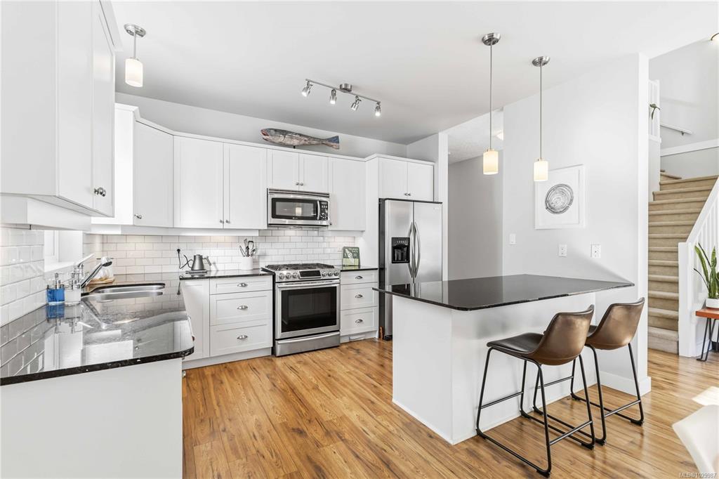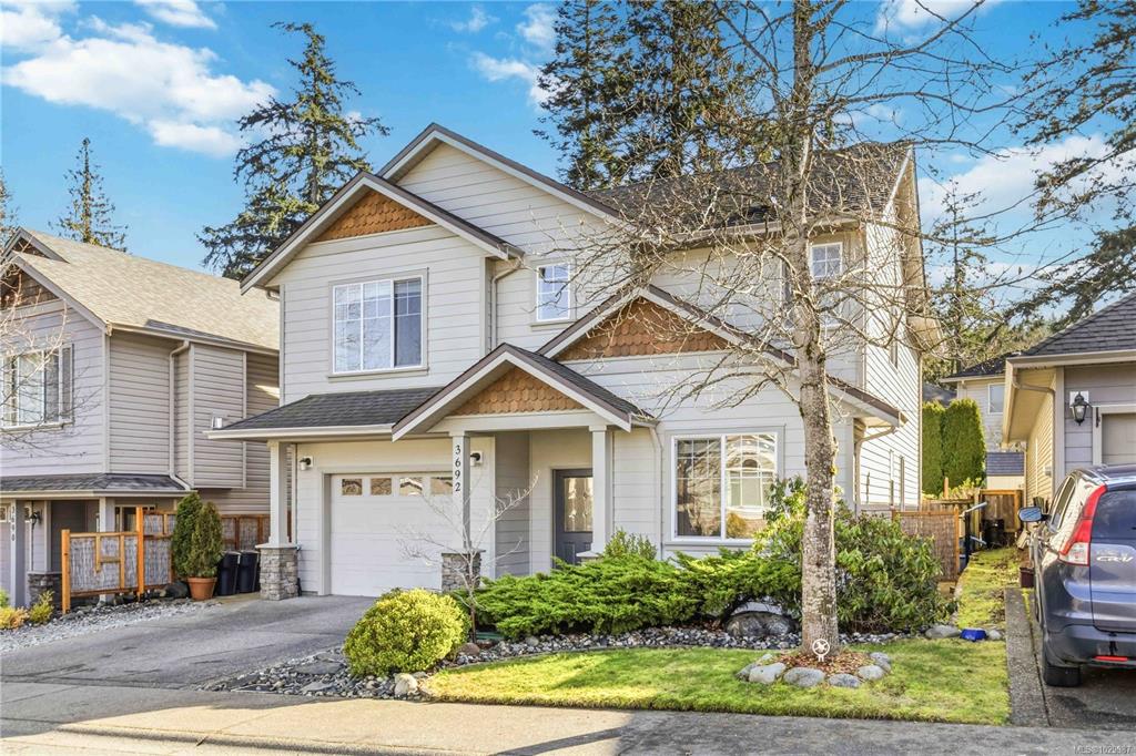 Welcome to this beautifully maintained home in a sought-after Happy Valley neighbourhood, perfect for young families or first-time buyers. Offering 3 bedrooms + den and 3 bathrooms, this home features a bright open-concept main floor with vaulted ceilings, cozy gas fireplace, and a well-appointed kitchen with lovely countertops, stainless steel appliances, and great flow for everyday living. The dining area opens to a private yard with sun-facing patio—ideal for entertaining or relaxing. Upstairs, the spaci...