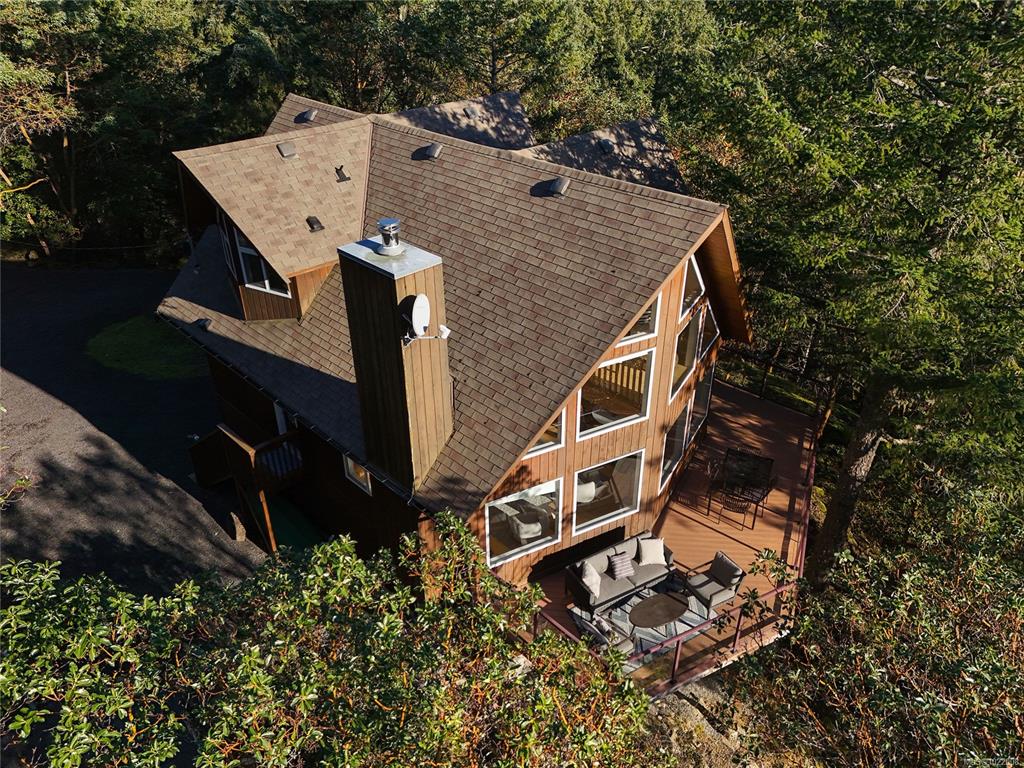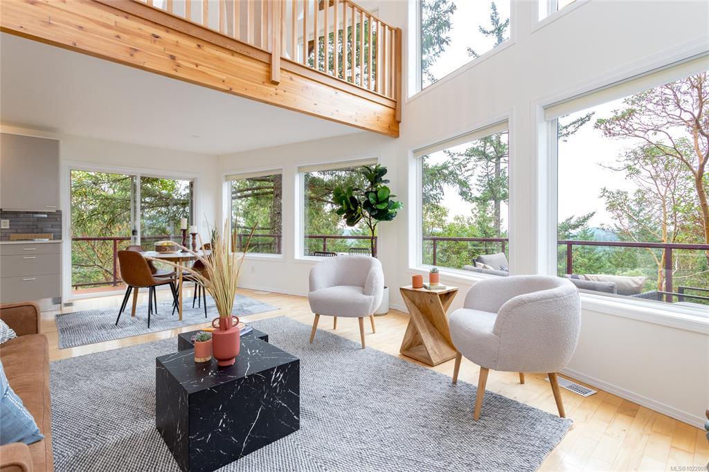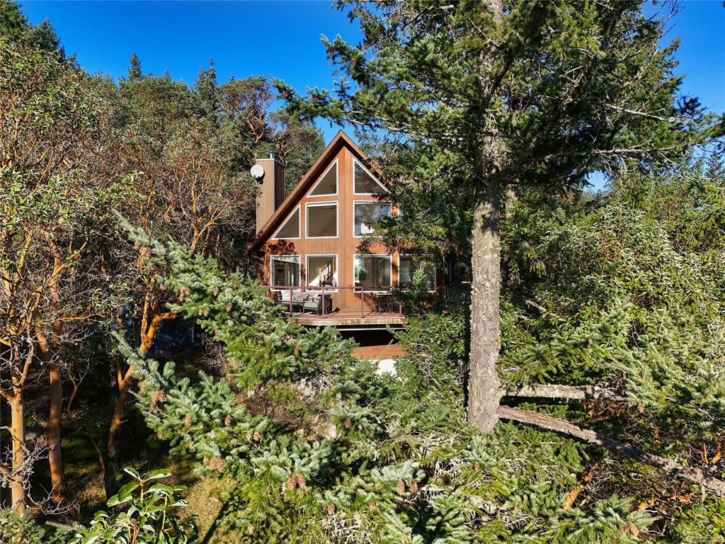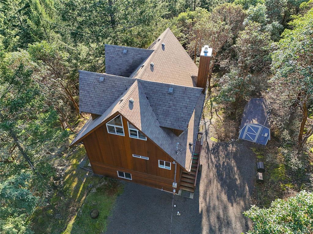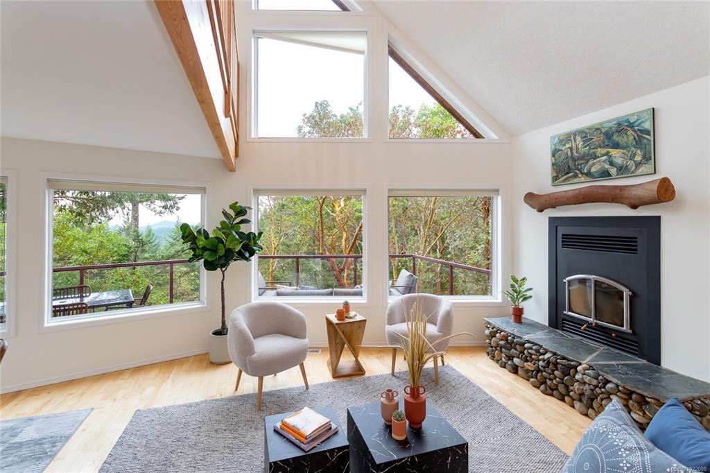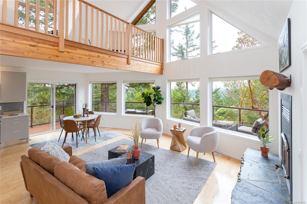 Tucked away in the Eastern Highlands, this inviting 2005 custom cedar home sits on nearly 4 ACRES of pristine woodland, offering a rare sense of privacy just minutes from everyday amenities. Surrounded by arbutus and Douglas fir forest, the property has been thoughtfully cared for to maintain its natural setting. Perched on a rise above the trees, you’ll fall in love with sweeping outlooks and sunsets from the expansive SOUTH-FACING wrap-around deck! Inside, floor-to-ceiling windows overlook the forest and ...