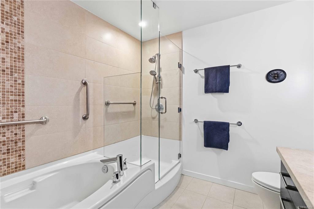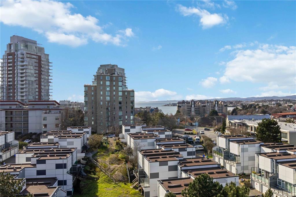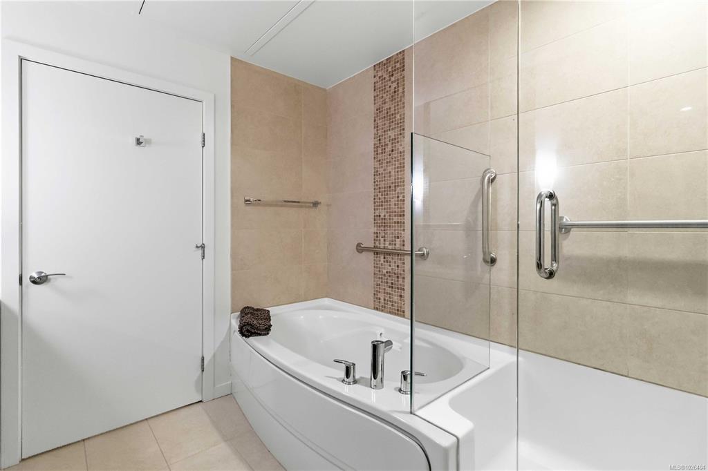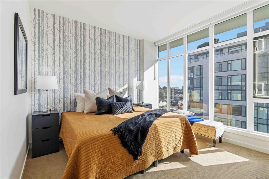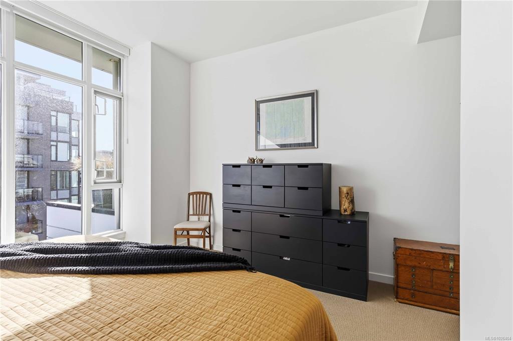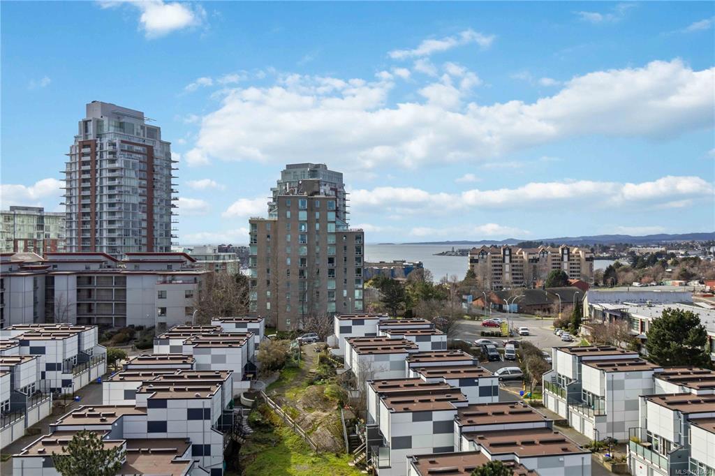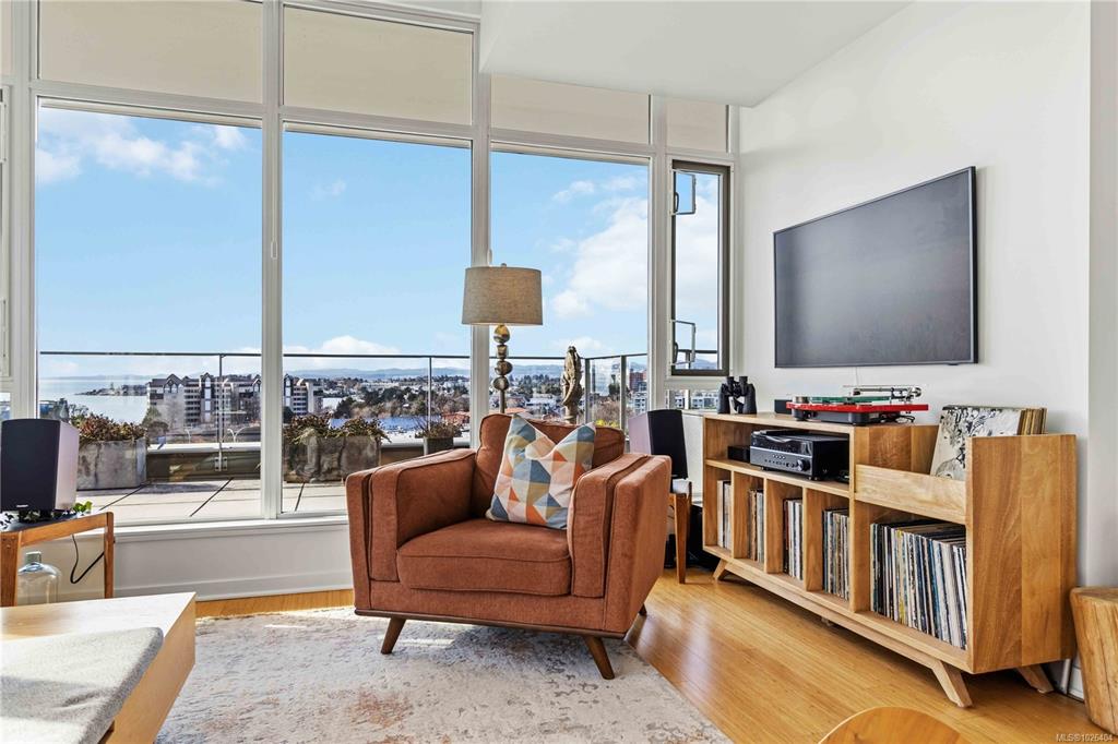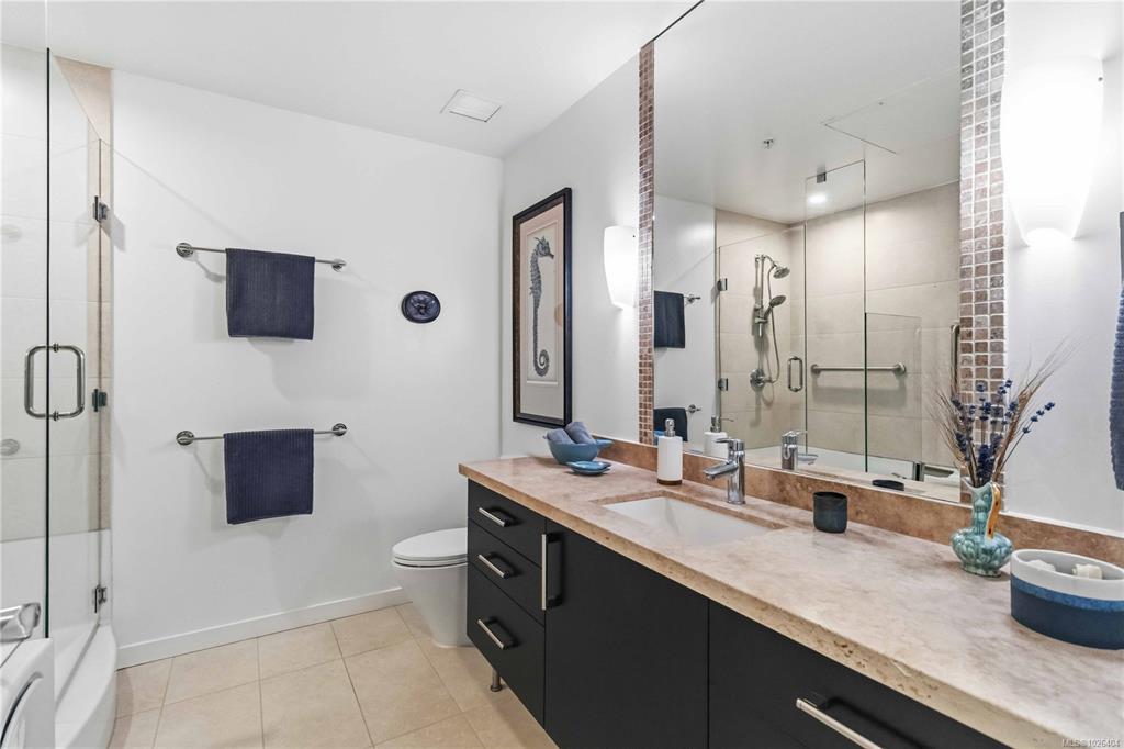 Dockside Green Penthouse — a rare opportunity to experience premier urban living. Enjoy panoramic views from this southwest corner suite in a sustainably built steel-and-concrete building. This sun-filled 1,253 sq. ft. condo offers exceptional outdoor living with a large wraparound deck and dedicated rooftop garden oasis. The stylish kitchen features solid-surface counters with matching backsplash, SS appliances, and a large island for entertaining. Floor-to-ceiling windows brighten the open living and dini...