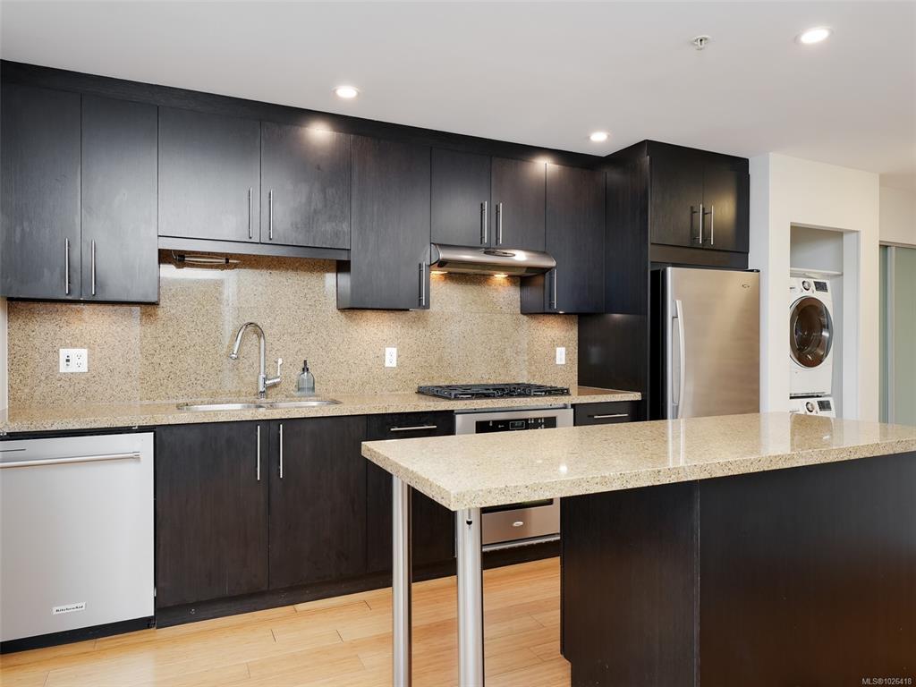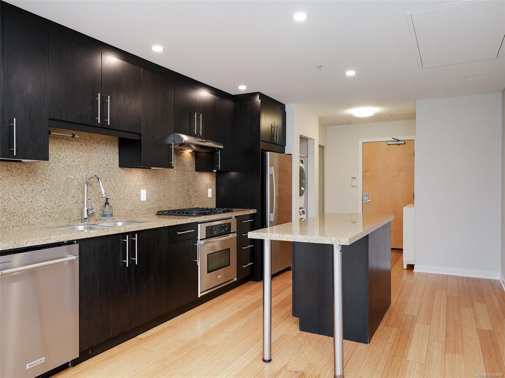 Welcome to Balance at Dockside Green—one of Victoria’s most desirable waterfront communities. This 7th floor 1 bed, 1 bath condo offers 608 sqft of thoughtfully designed living space with bamboo floors and views of the Victoria Harbour. Floor-to-ceiling windows fill the home with natural light, while the open kitchen features granite countertops, stainless appliances, and a gas range. Extensive updates include a new dishwasher, new washer/dryer, new closet doors, new carpet in the bedroom, and new ceiling l...