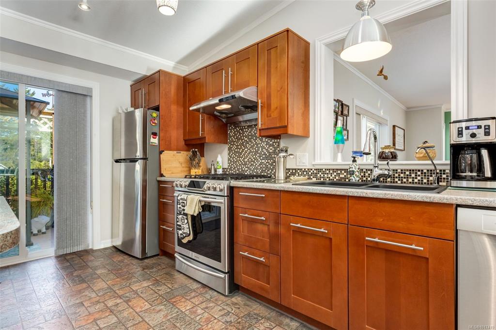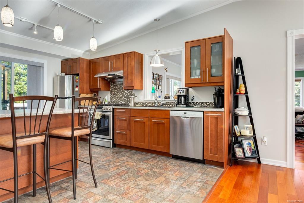 Well-maintained home on a quiet cul-de-sac just minutes from Departure Bay Beach. Featuring hardwood floors, vaulted ceilings, and skylights, filled with natural light. The living room offers a cozy gas fireplace, and the spacious kitchen includes a gas range, pantry, eating bar, and plenty of cupboard and counter space. Layout offers a large dining area, a mud room with laundry and access to the double garage, and a crawlspace. The primary bedroom includes a private ensuite and his-and-hers closets. Update...