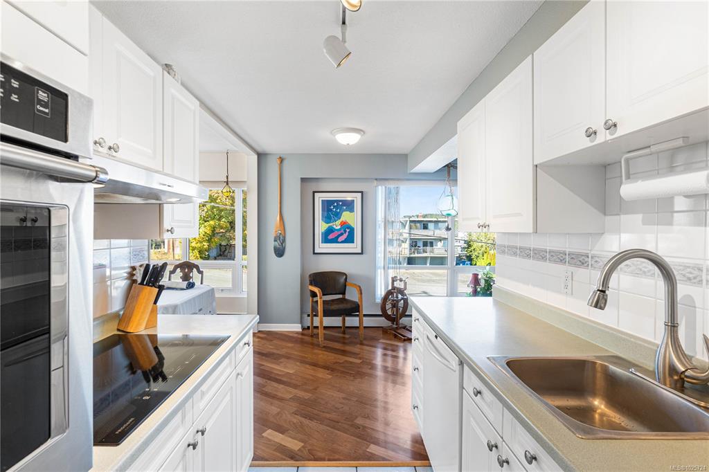 Welcome to the Royal Vista, an oceanside, 55+ building in the charming Brechin Hill neighbourhood of Nanaimo. This beautifully maintained 2-bedroom, 1-bathroom condo boasts 1100sqft of living space with Brazilian cherry flooring throughout the main living area, stainless steel fridge and stove in the kitchen, a spacious dining area to entertain your guests, and a second bedroom complete with a Murphy bed to host any overnight visitors. Natural light fills the home through the large windows which also allow ...