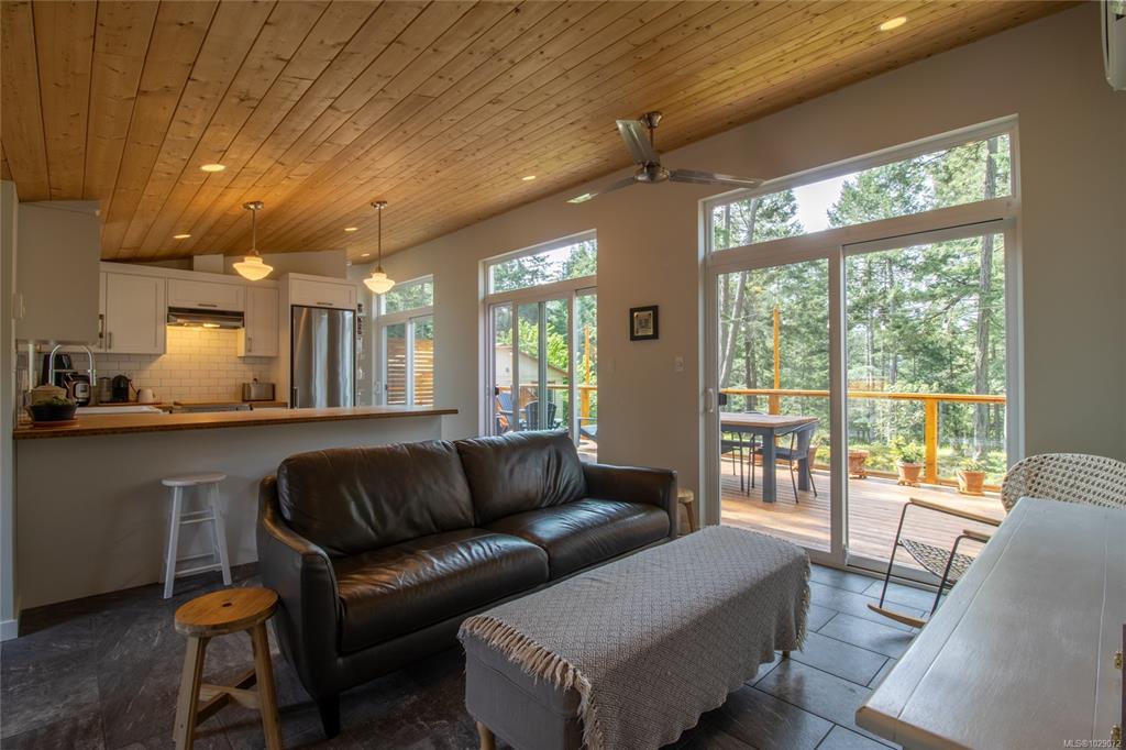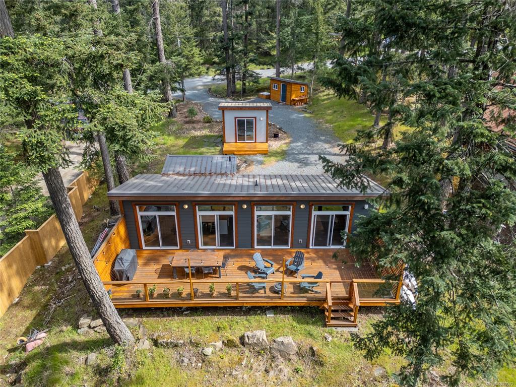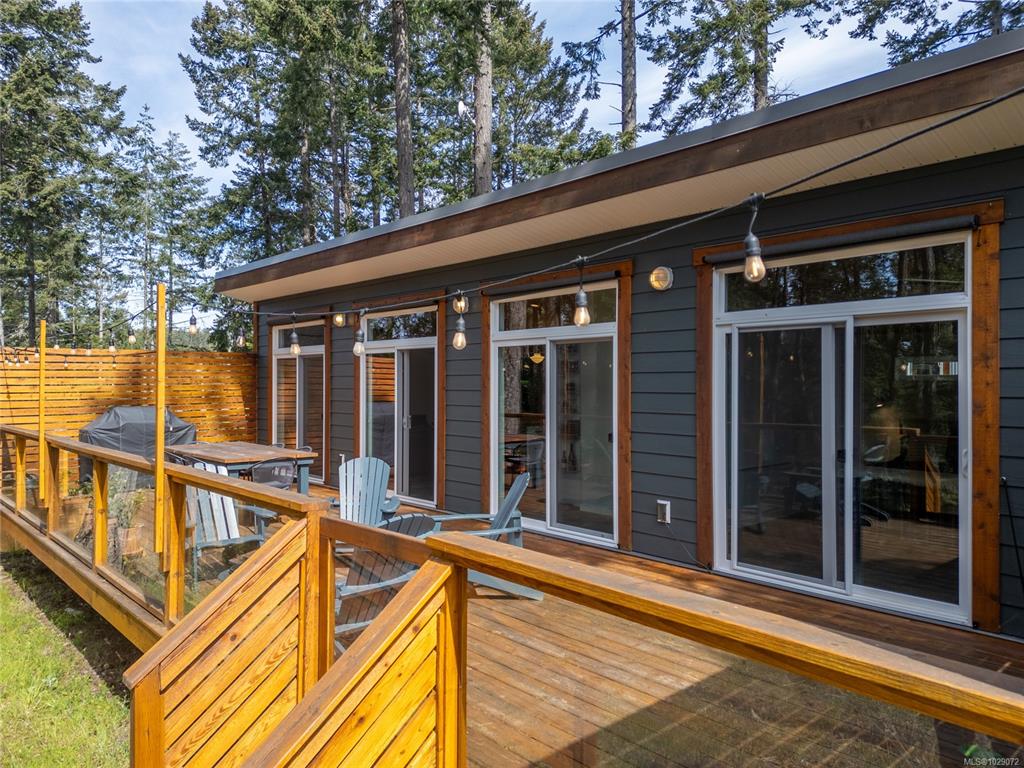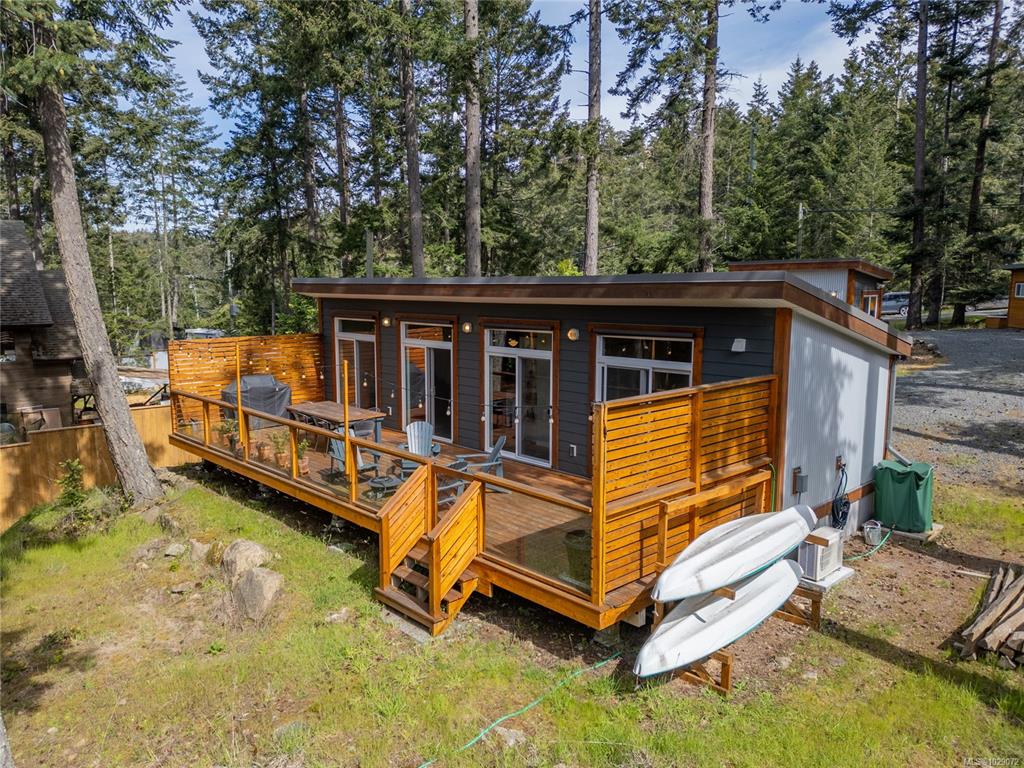 Welcome to where nature and modern comfort meet in this beautifully designed 576 sq ft, CSA A277 certified modular home. Surrounded by birdsong and south-facing forest views, this small home makes a BIG impression — featuring two heat pumps for year-round comfort, along with a generator, propane fireplace, dishwasher, and stacking washer/dryer. The open-concept living space flows effortlessly, with a bright kitchen showcasing bamboo countertops and stainless steel appliances. Step outside to a 480 sq ft dec...