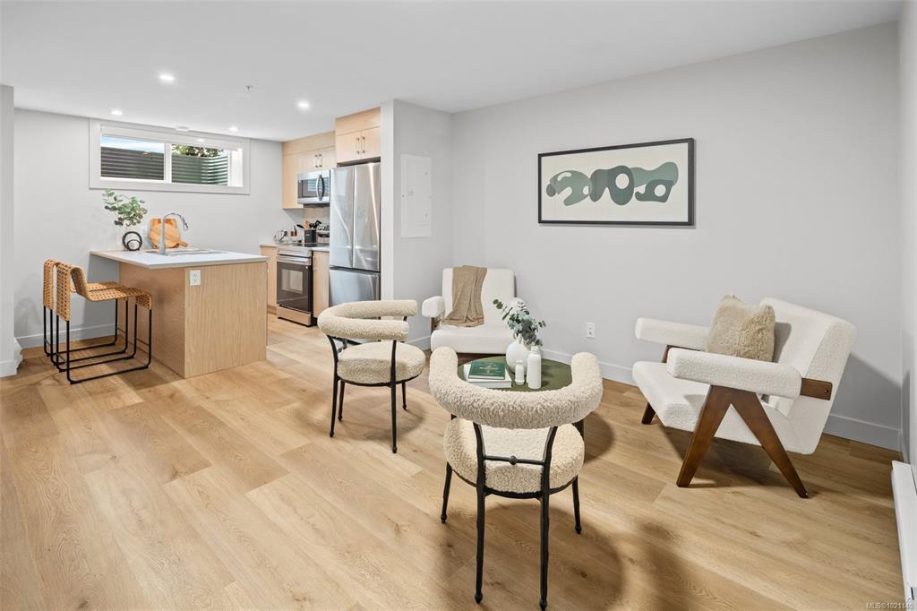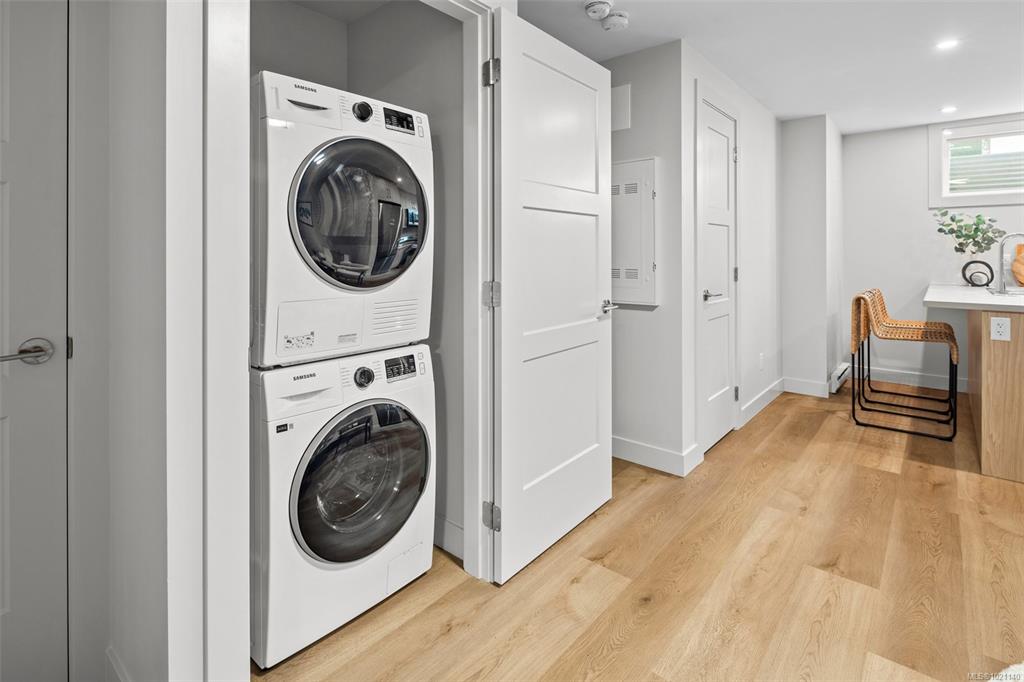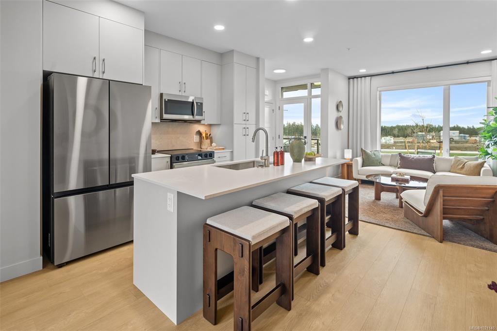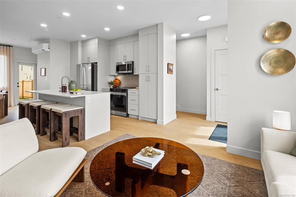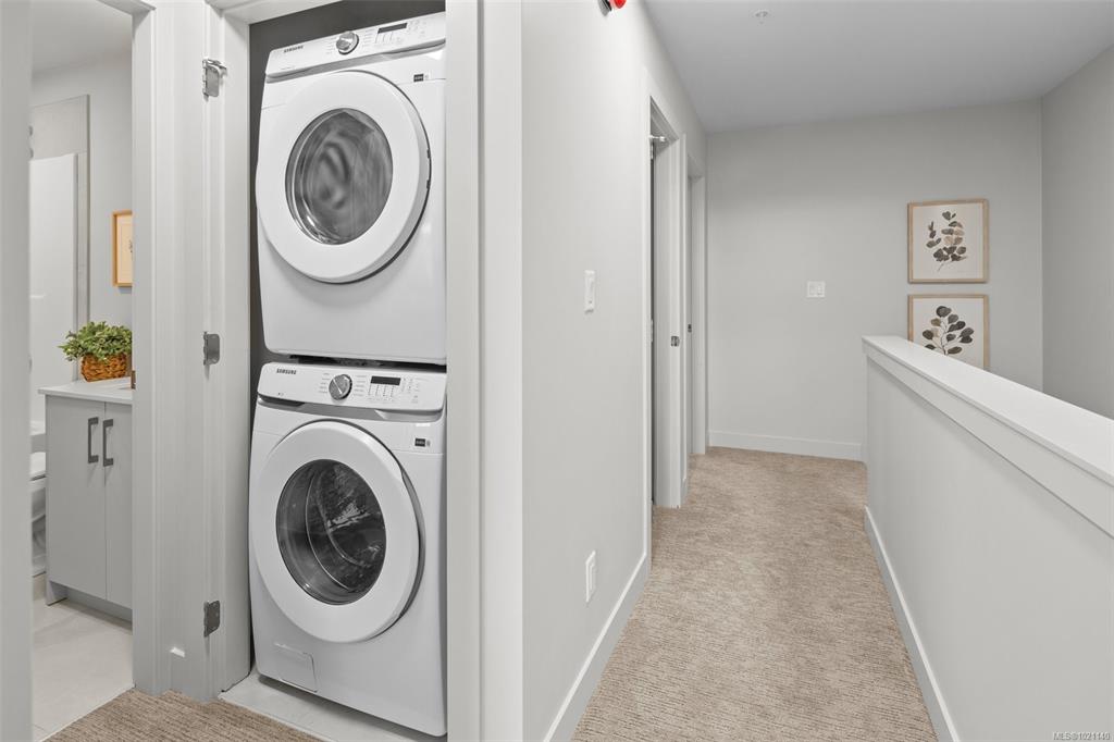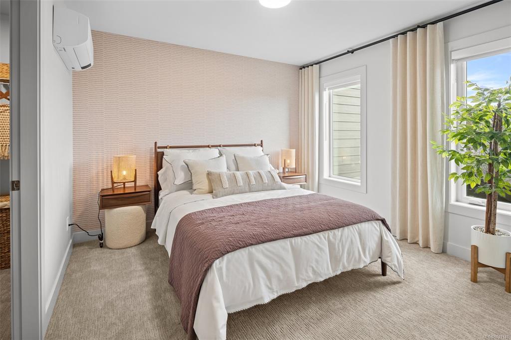 Beautifully crafted 1,836-square-ft Peyton rowhome spans 3 levels of refined West Coast living. Open-concept main floor boasts 9-ft ceilings, expansive windows, & cozy electric fireplace in the great rm. Sophisticated kitchen with 42" upper cabinetry, quartz counters, designer tile backsplash, & modern appliances. Upstairs, dramatic vaulted ceilings enhance the private quarters, including a luxurious primary ensuite with dual undermount sinks & beautifully tiled walk-in shower, plus 2 more bedrooms. Self-co...