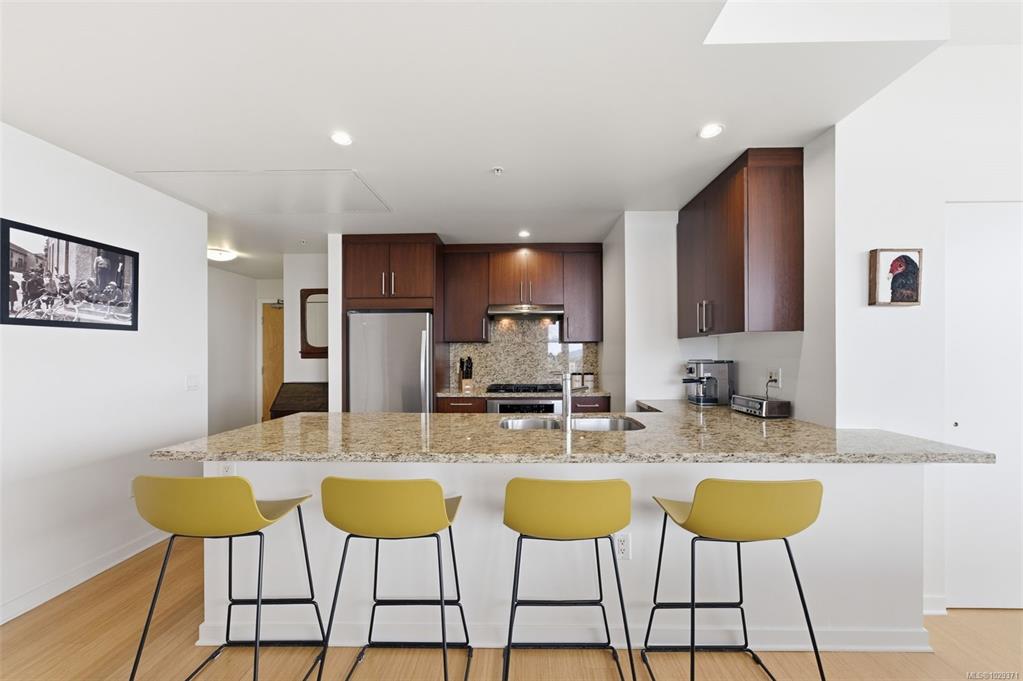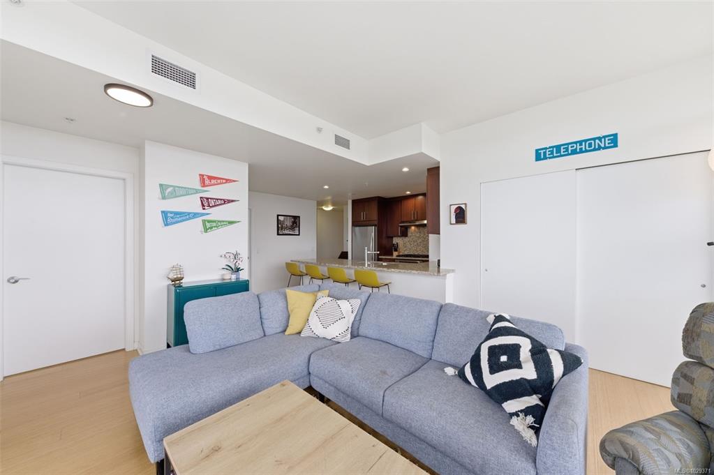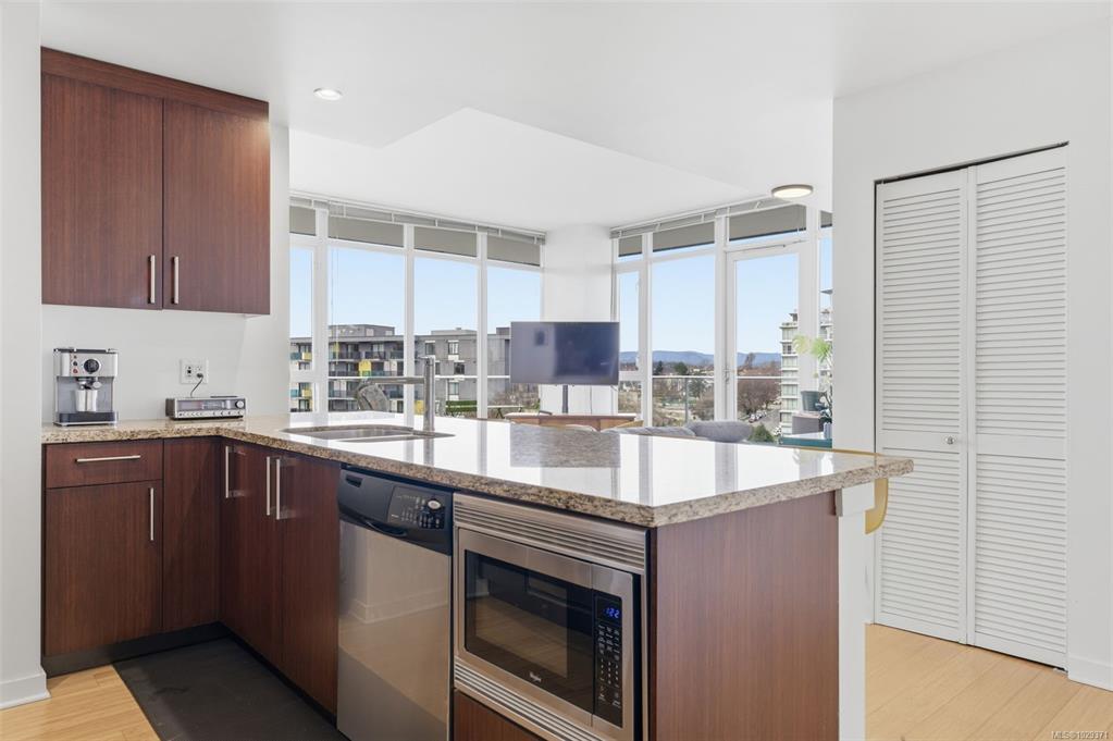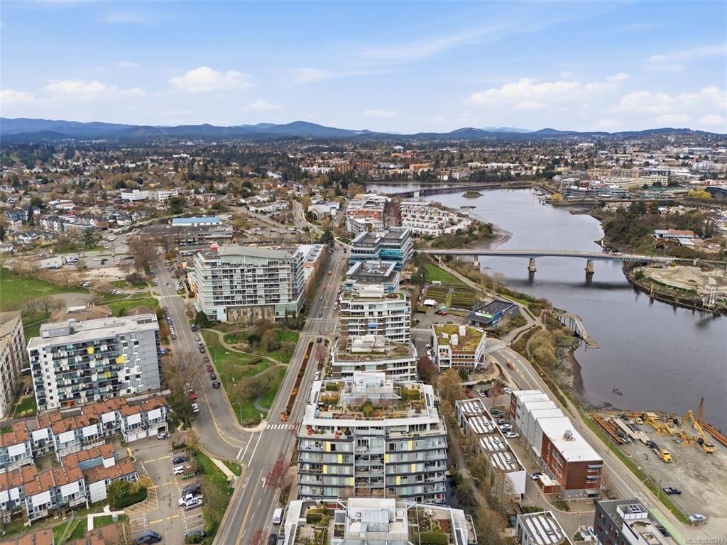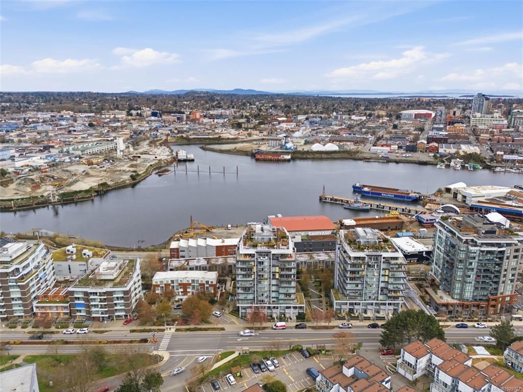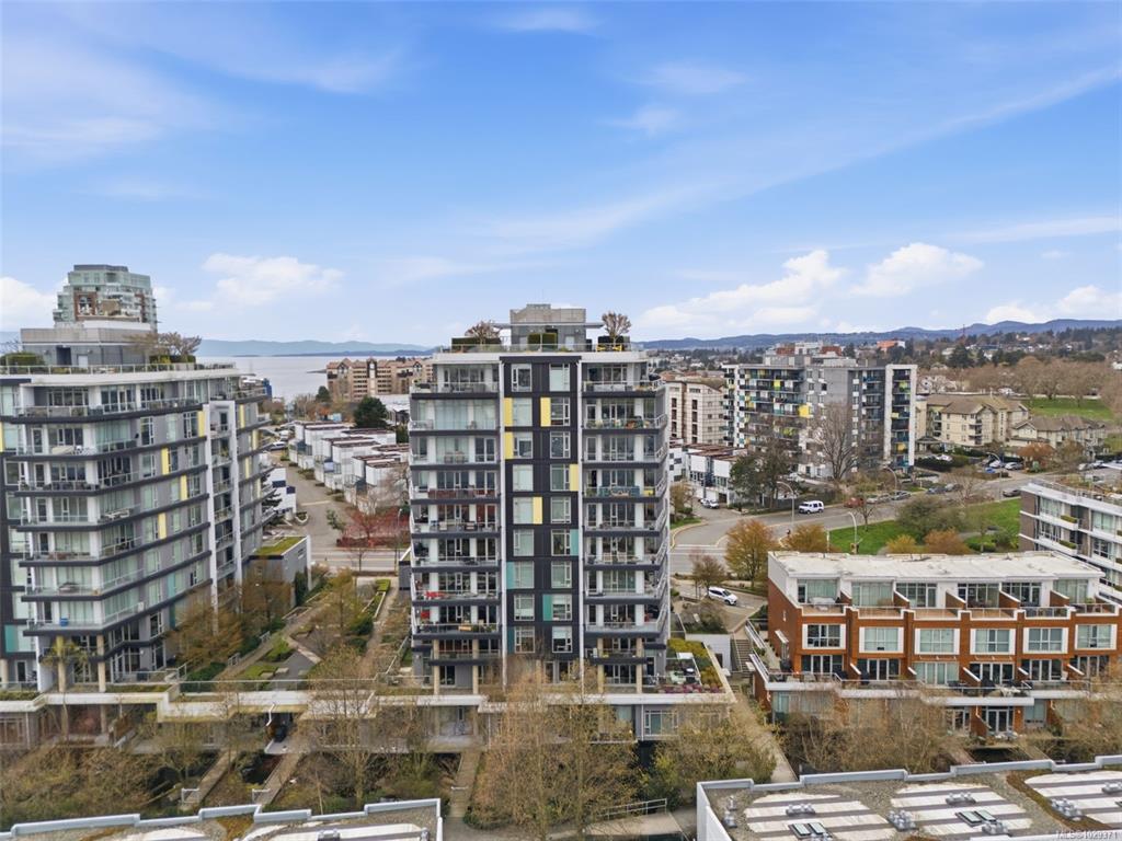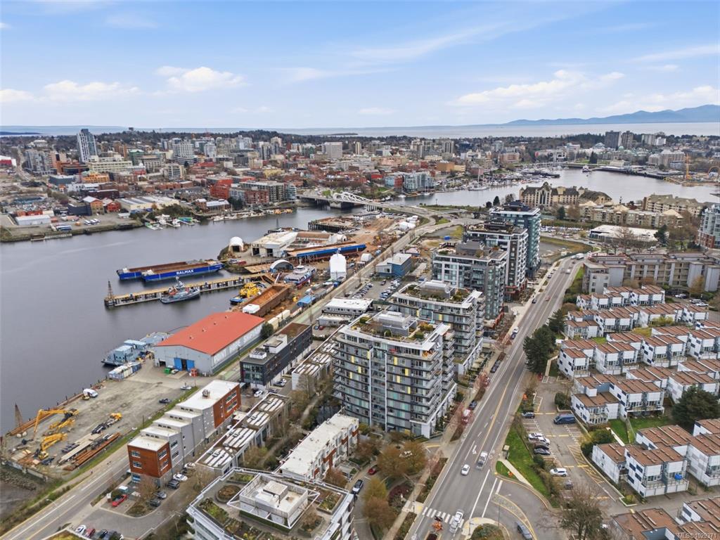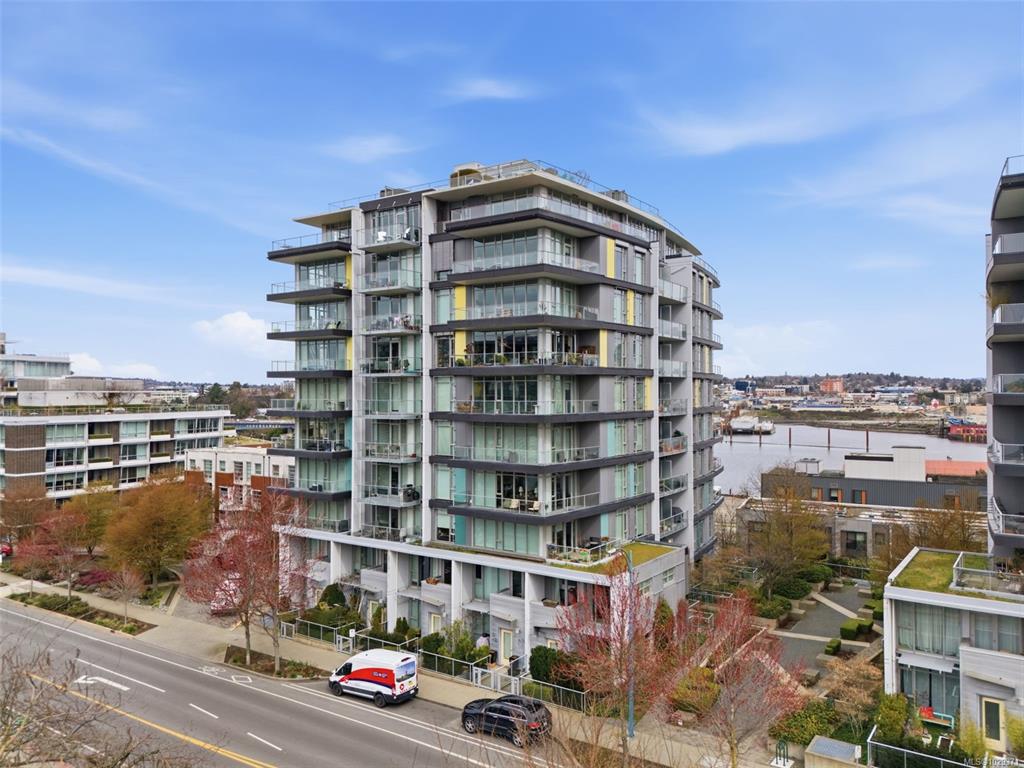 Spectacular views of the ocean & Upper Harbour from this bright corner suite in the award-winning Dockside Green community, a LEED Platinum-targeted development built in 2009. Floor-to-ceiling windows flood every room with natural light, while the large wraparound balcony showcases sweeping vistas of the city skyline, mountains, and water; perfect for evening sunsets. The functional layout features one bedroom plus a den with window and closet, ideal as a guest room or home office. Quality finishes include ...