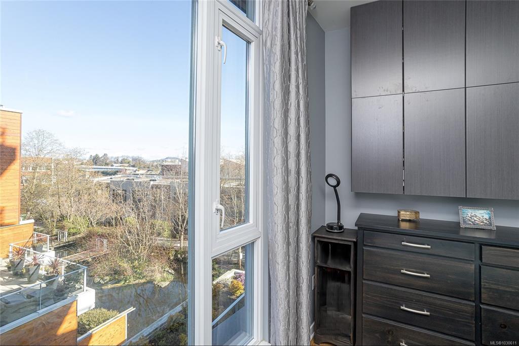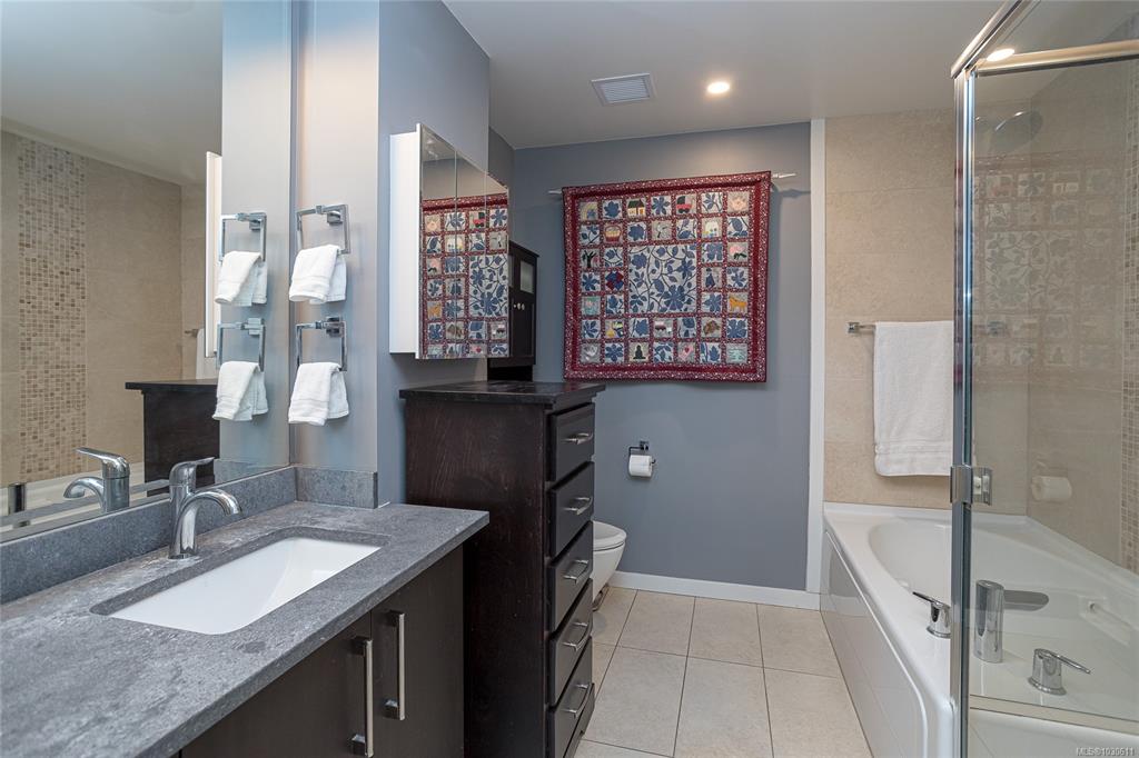 Ocean views, quality finishes, and an exceptional Dockside Green location define this beautifully updated 2 bed, 2 bath condo. Offering 1,042 sq ft, the home features granite countertops, newer stainless steel appliances, updated flooring and light fixtures, custom window treatments, a generous balcony, and smart built-ins including custom storage in the primary suite and a Murphy bed in the second bedroom. Steel and concrete construction, in-unit laundry, separate storage, and two secure underground parkin...