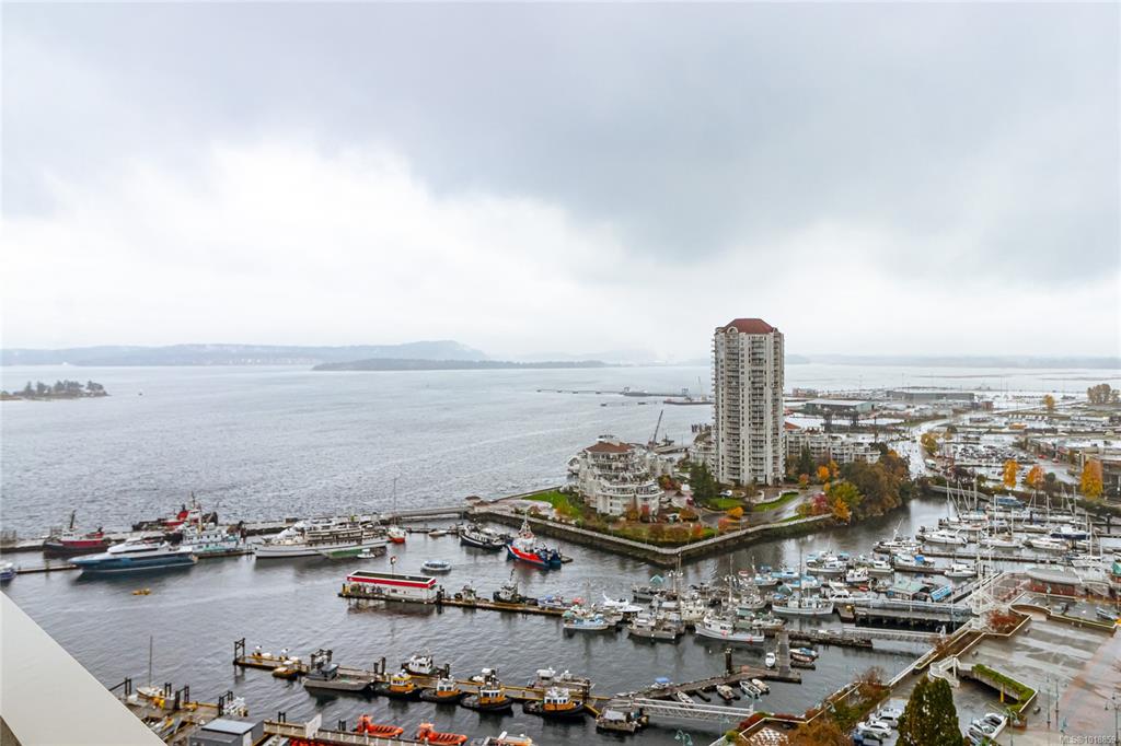 Open House Sunday Nov 9, 11:00-1:00. Soaring high above the city on the 15th floor, this spacious 2-bedroom, 2-bath corner unit showcases panoramic views of Nanaimo's harbour, mountains, and cityscape. Located in Pacifica, a quality-built steel and concrete building, this home offers an unmatched luxury lifestyle. Inside, the open-concept layout creates an effortless flow between the kitchen, dining, and living spaces. The kitchen features granite countertops, stainless steel appliances, and plenty of room ...