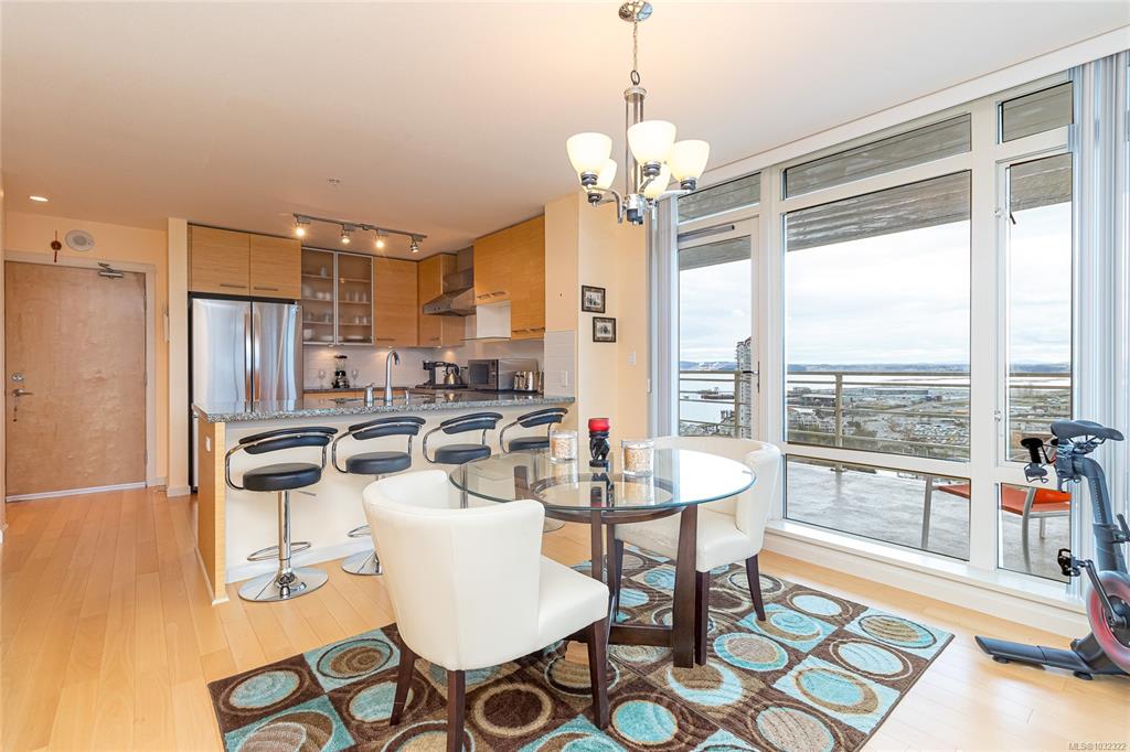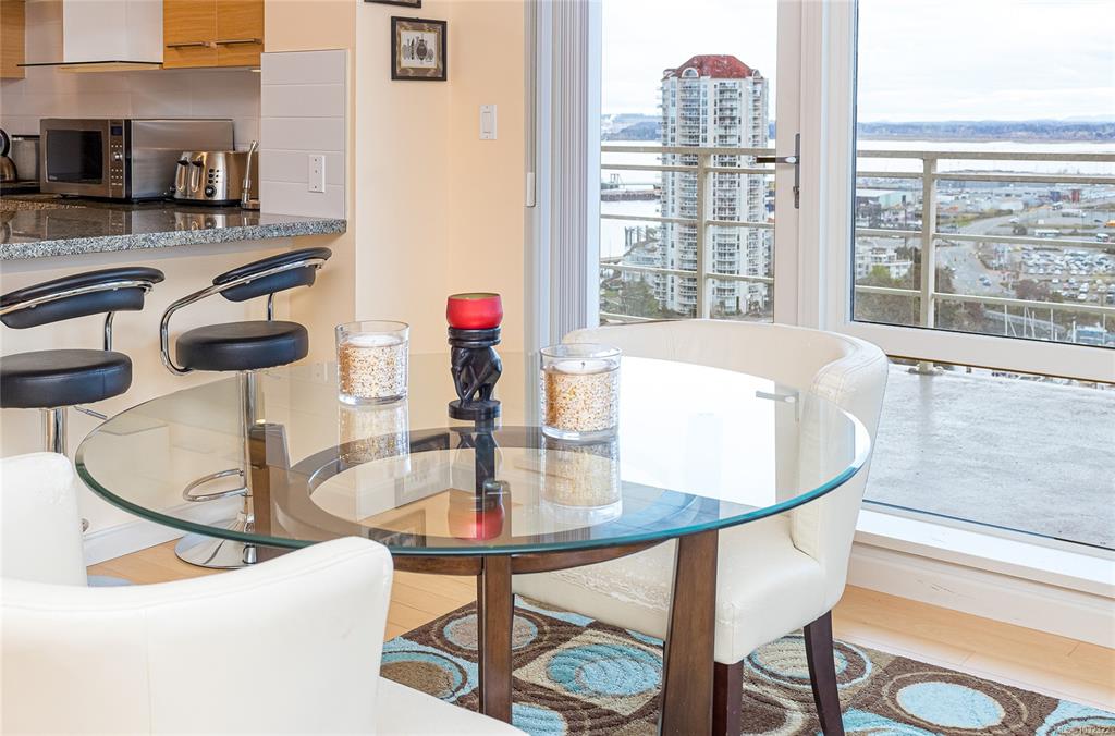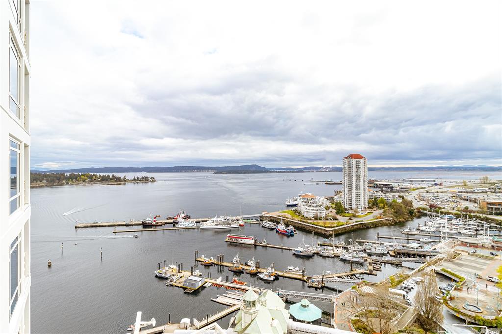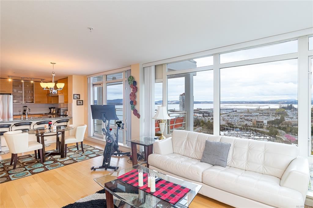 Experience elevated coastal living in this 14th-floor, 2-bedroom, 2-bathroom waterfront Pacifica condo in downtown Nanaimo. This bright, open-concept home features floor-to-ceiling windows that showcase ocean, city and mountain views. Step out onto the spacious balcony to take in the scenery—perfect for morning coffee or evening relaxation. The layout seamlessly blends living, dining, and kitchen spaces, creating an ideal setting for both everyday living and entertaining. Conveniently located just steps f...