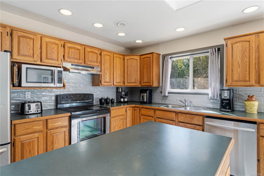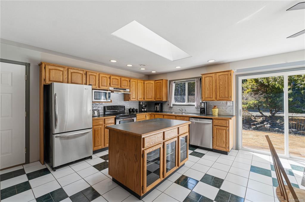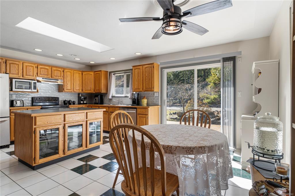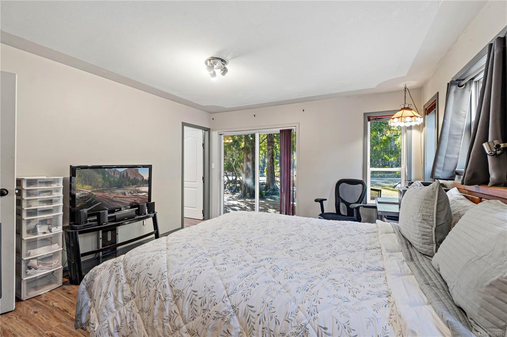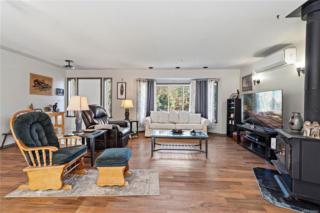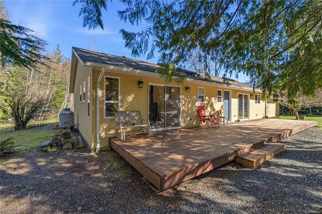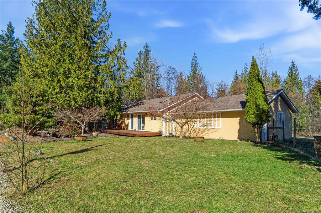 Take a walk on the Wild side! Stunning forested country estate with a fish bearing seasonal creek is situated at the base of Mt. Arrowsmith across from crown land. 2.5 flat acres provides plenty of privacy with miles of off-roading trails at your doorstep. Open concept cozy rancher complete with recessed lighting, hardwood floors, and a kitchen that boasts a large island, tile flooring and stainless steel appliances. There's plenty of natural light with skylights, bay window and glass doors that lead out to...