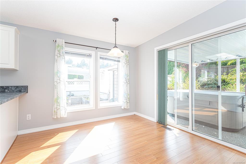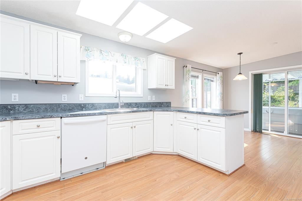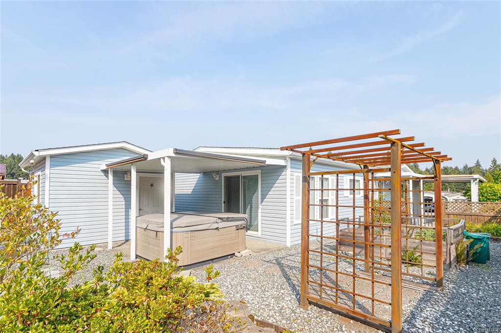 We are pleased to present this sizable home in prestigious Deerwood Estates, perfect for the downsizer who still wants the feel of a house. On the outside there is a charming fenced yard complete with raised garden beds, a bubbling hot tub and a wired workshop! Once you enter into the foyer, you will find to your left an expansive and open kitchen bathed in sunlight from the overhead skylights and sliding glass doors out to your covered patio. Also on the left side is the primary suite that will welcome you...