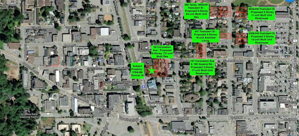 ZONED, SERVICED & DEVELOPMENT READY - PRIME MIXED USE SITE A rare opportunity to acquire two adjacent properties (378 & 386 Duncan St) totaling 14,800 sqft (0.34 acres) in a strategic land assembly with Downtown Comprehensive (DTC) zoning. Each lot has existing 2-bed 1-bath home. Elevated section of Duncan St with outlooks toward downtown & beyond, this site offers exceptional design flexibility with generous frontage & municipal services at the properties. DTC zoning supports high-density multi-family/c...