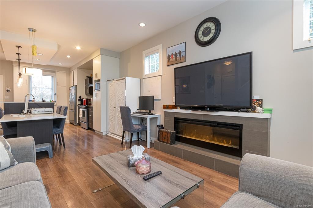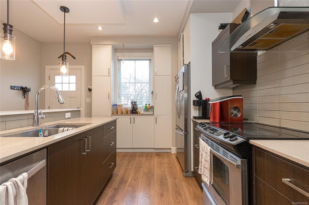 End unit. Zebra Designed townhome perched above Swan Lake. 2 level 1406 sq ft. home with main level private car garage. Main floor features a gourmet kitchen with quartz counters, island with raised bar, loads of cupboards, and stainless appliances. Combo dining/living area is spacious with linear fireplace. 3 bedrooms upstairs, with side by side front loader washer/dryer. Single garage, and driveway parking. Fenced perfectly landscaped front yard with patio, plantings + grass. Walk to uptown, parks, shoppi...