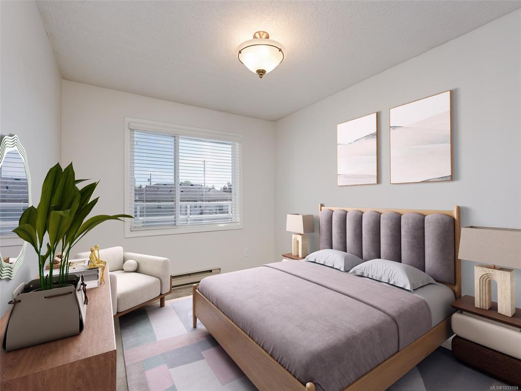 OPEN HOUSE SAT 1-3PM! Fabulous location! Close to UVIC! Positioned on the quiet side of the building this well-maintained & freshly painted suite offers a bright & private living experience. Enjoy 2 east-facing balconies, perfect for morning coffee in the sun. The well-designed layout provides excellent flow, w/ the kitchen opening to the living area & space for a bistro table, while the bedrooms are thoughtfully arranged in a staggered design to minimize shared walls & maximize privacy. The suites includes...