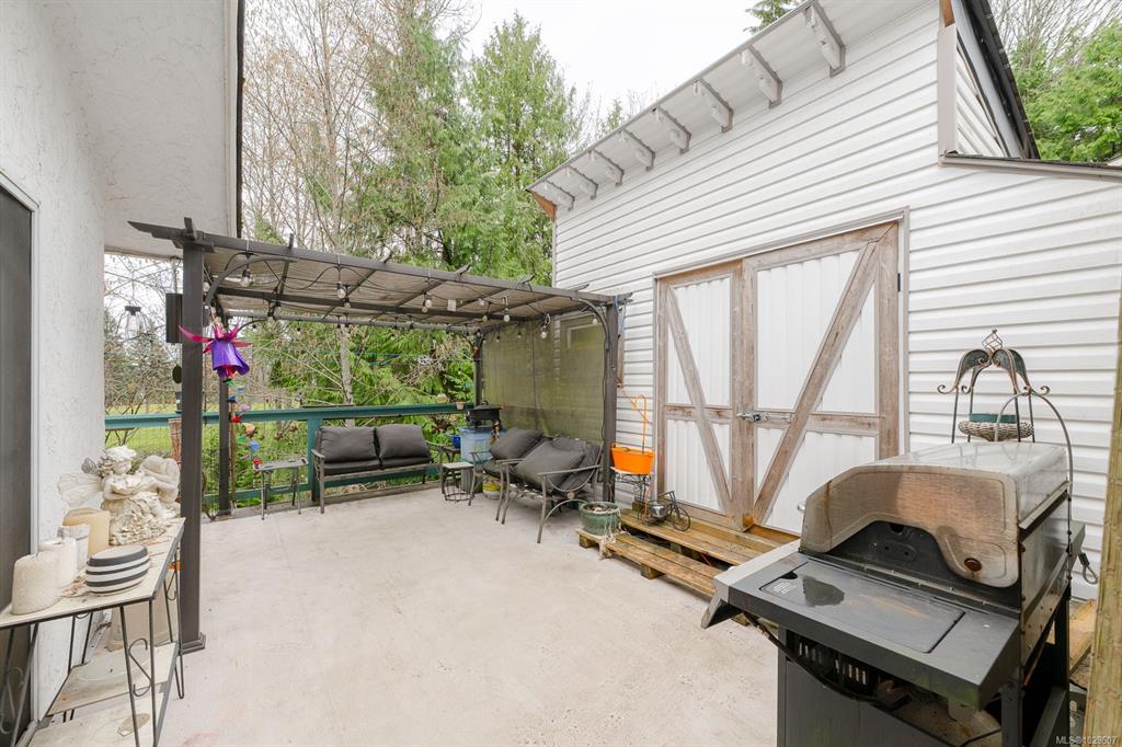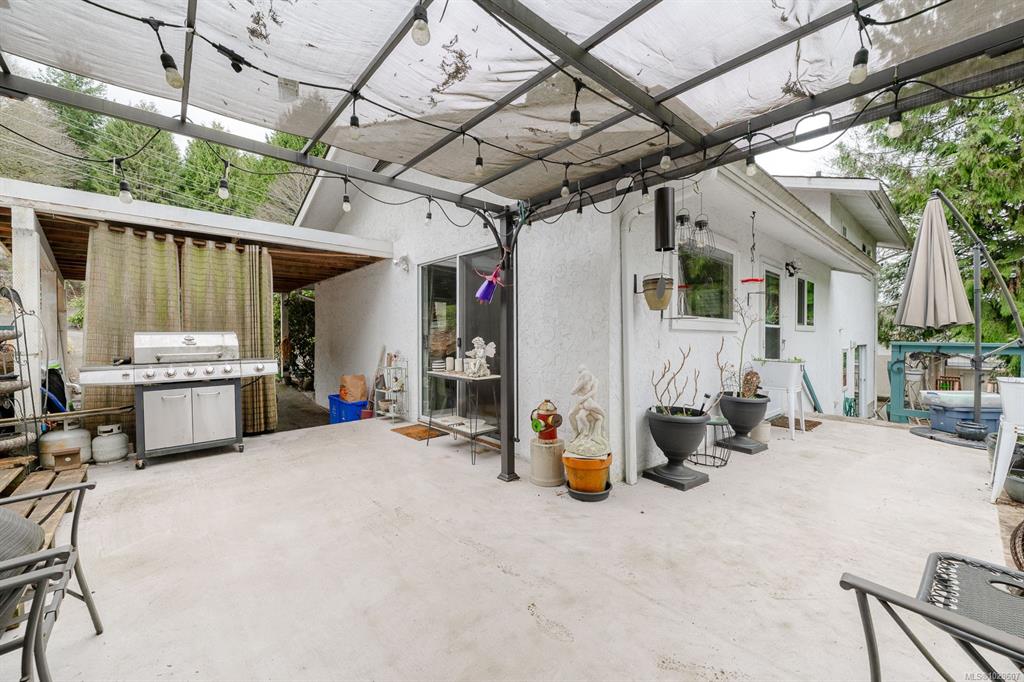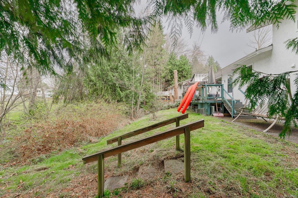 Charming split level home backing onto Ladysmith Golf Course. This well maintained 3 bedroom, 2 bath home offers a new heat pump installed in 2025, new windows, RV parking, in/out half circle driveway, private landscape, and newer appliances. The lovely back yard offers plenty of privacy, overlooking Holland Creek and the golf course, as well as a beautiful nature landscape; great for bird watching and basking in the summer shade. Large sundeck accesses spacious garden shed / workspace, and enjoy a 5 minu...