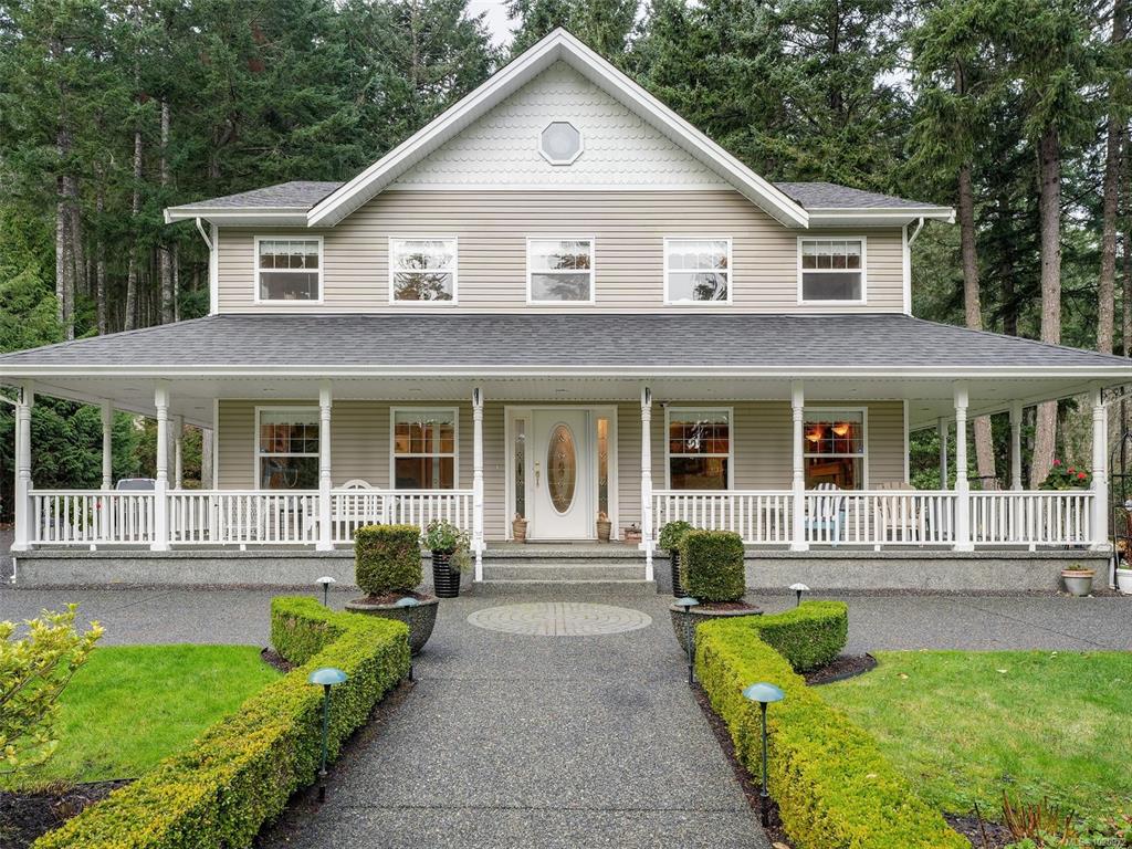 Country living at its very best! Traditional 1997, 4-bedroom, two-storey character home centered on 2.5 naturally beautiful, treed acres, abounding with Douglas Firs, Arbutus, Cedar, and Maples, all surrounded by superb sprinklered landscaping. The kitchen is a gourmet's dream, featuring high-end integrated Miele and KitchenAid appliances, Brazilian Granite countertops, an eating nook, fireplace, coffered ceilings, wainscotting, and heated floors. The formal dining room is sunny and cheerful and perfect for...