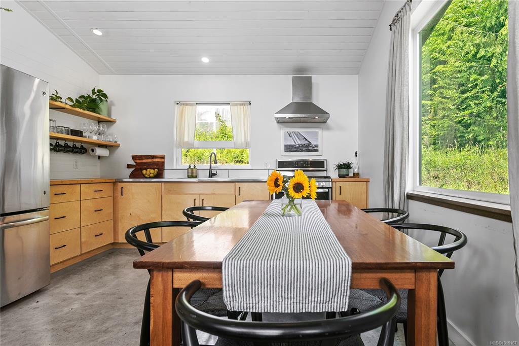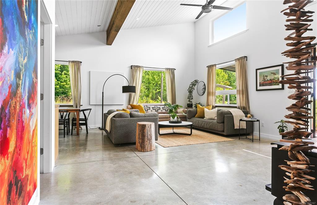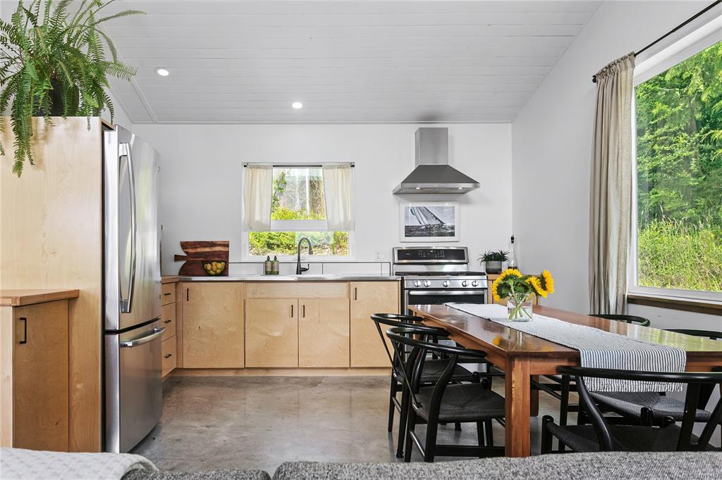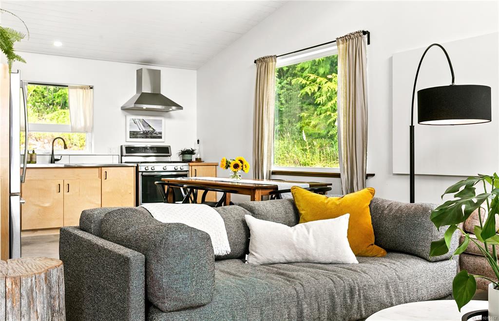 Tucked away on 2.62 acres of natural beauty, this 3-bedroom, 1-bath modern retreat in Jordan River offers the perfect West Coast escape. Thoughtfully designed with over 1,200 sq ft of open-concept living, the home features polished concrete floors with in-floor radiant heating, a cozy wood-burning stove, and large windows that frame serene forest and mountain views. The spacious kitchen and living area open to a covered patio—ideal for relaxing or entertaining. After a day surfing at nearby Jordan River or ...