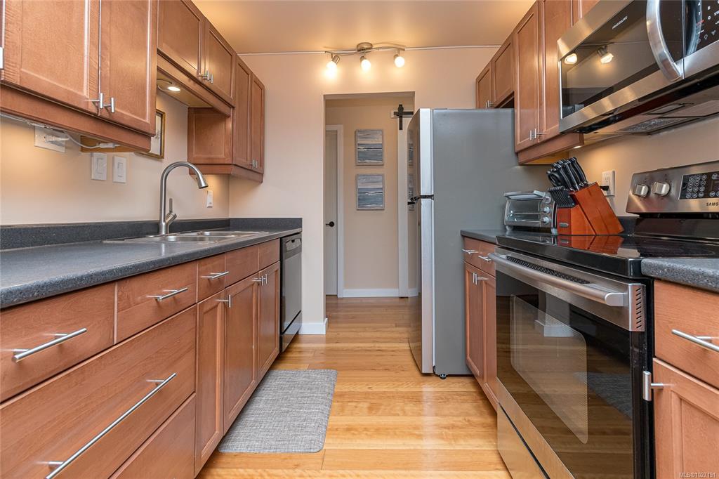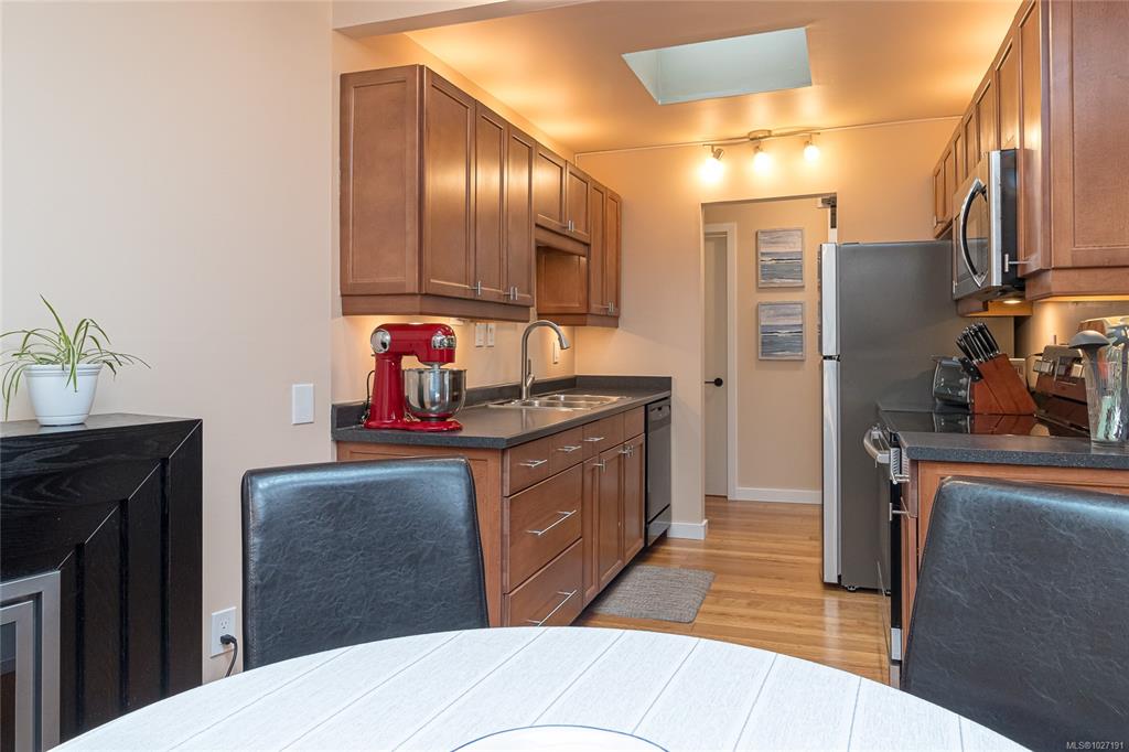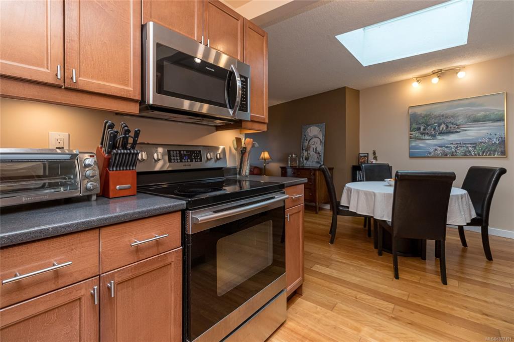 Stylish, spacious, and filled with natural light! This bright top-floor 2 Bedroom and 2 Bathroom condo offers over 1,200 square feet of comfortable living space with a layout designed for both everyday living and entertaining. Three large skylights flood the home with sunlight, creating an airy and inviting atmosphere throughout. A multitude of updates add modern comfort while maintaining a warm, welcoming feel. Step out onto your private balcony and enjoy peaceful views overlooking a beautiful Garry Oak...