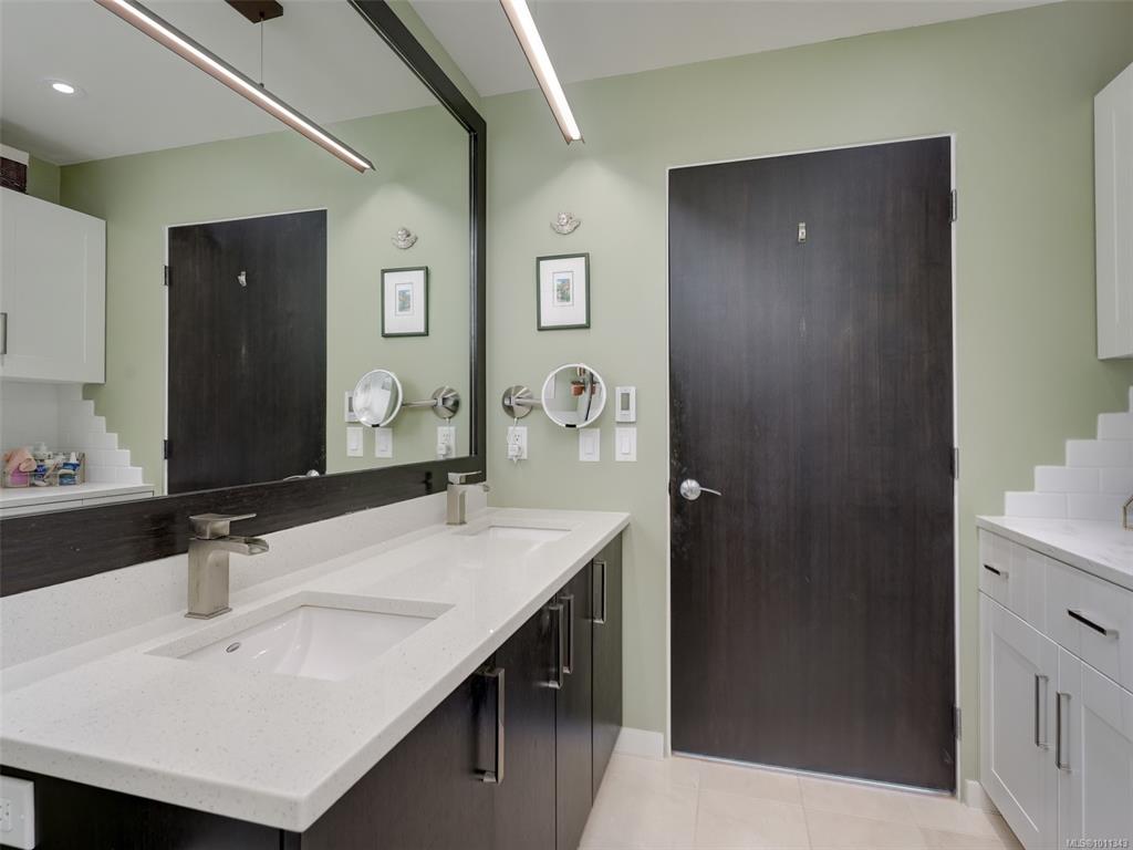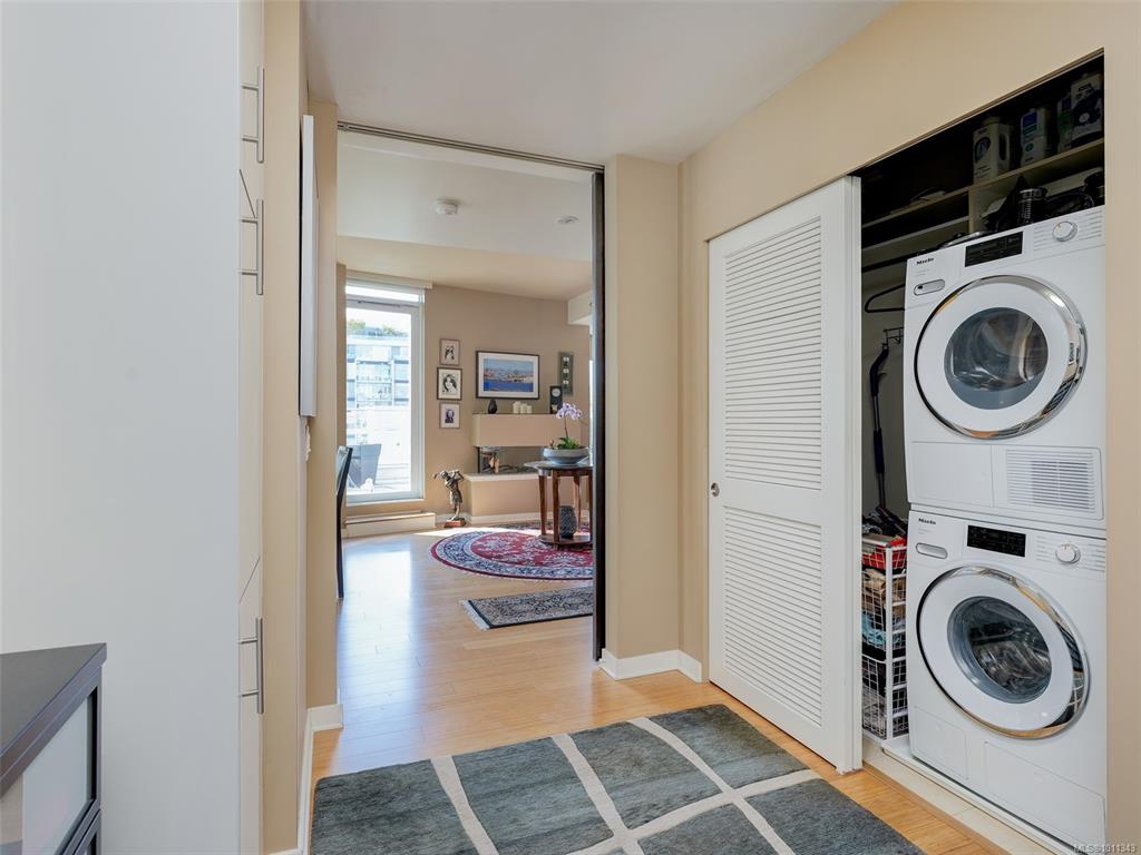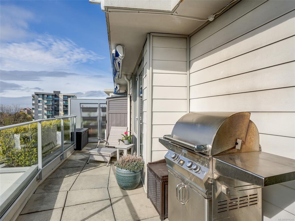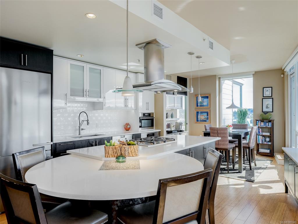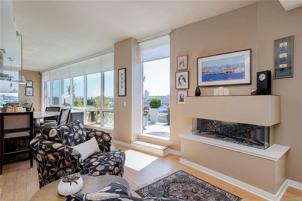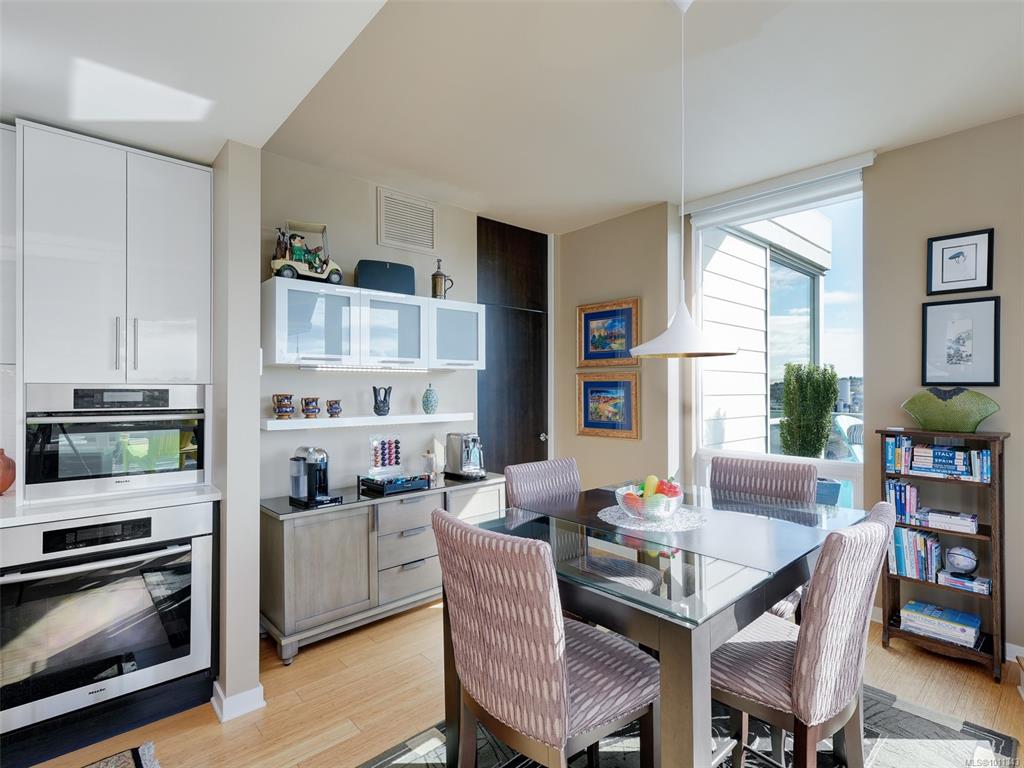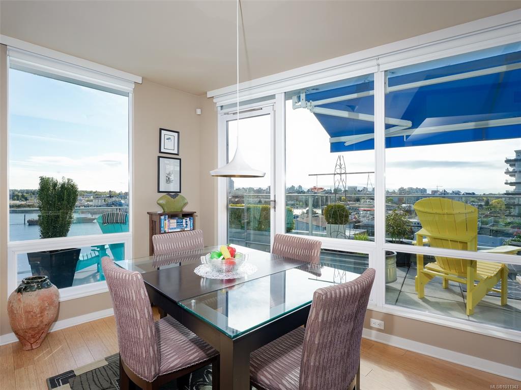 A rare offering in Dockside Green—this meticulously maintained sub-penthouse blends thoughtful updates w/ refined style. Built in 2008, this 1,181 sqft 2-bed + converted den condo offers a bright, open layout with high-end finishes. Enjoy heated bathrm floors, a steam shower, quartz counters, Miele appliances, custom Thomas & Birch cabinetry, a built-in Sonos sound system, Connect 4 automation, new electric blinds & awnings, and one of the few decks with a dedicated BBQ gas line. The large deck offers stunn...