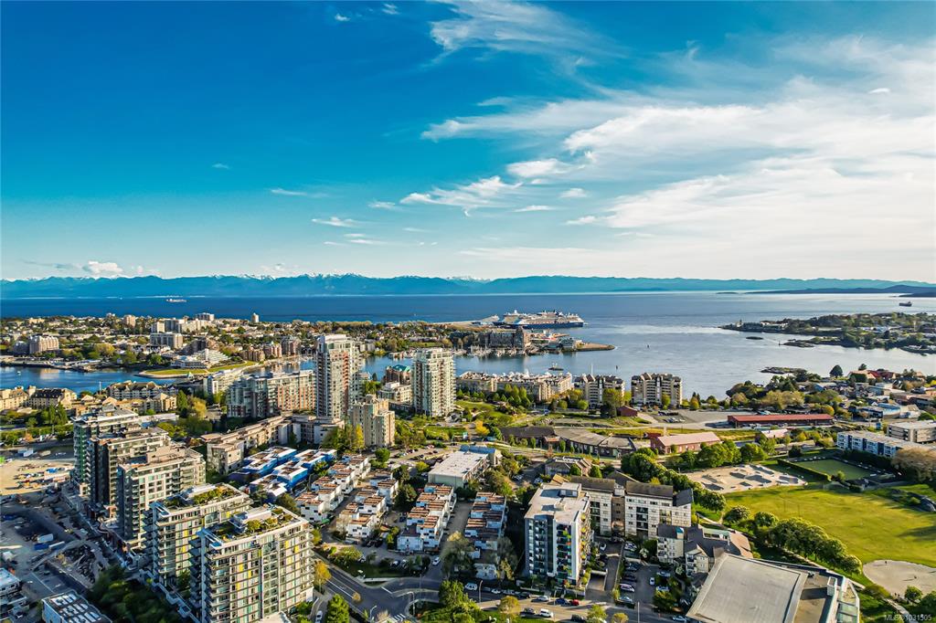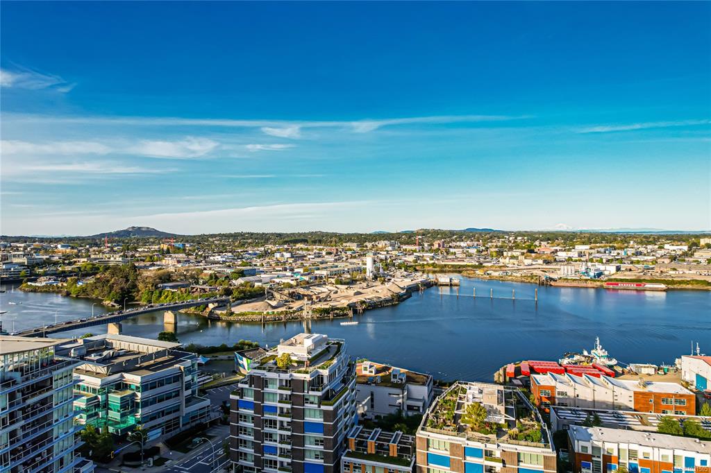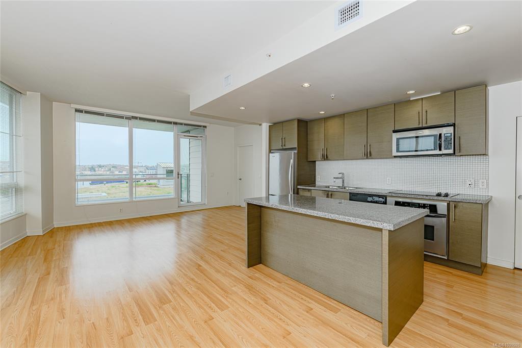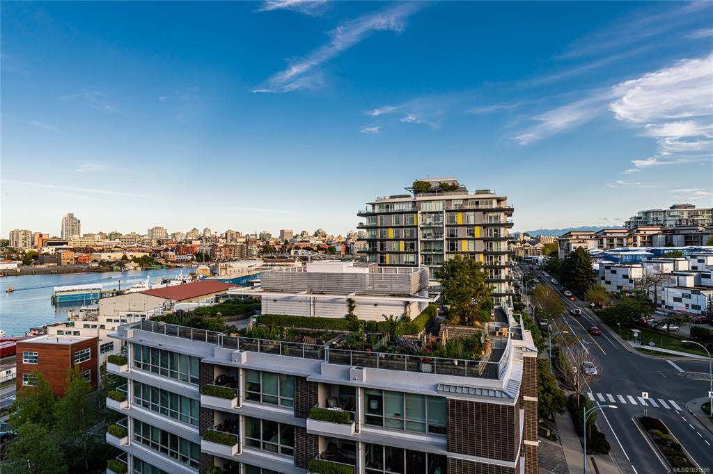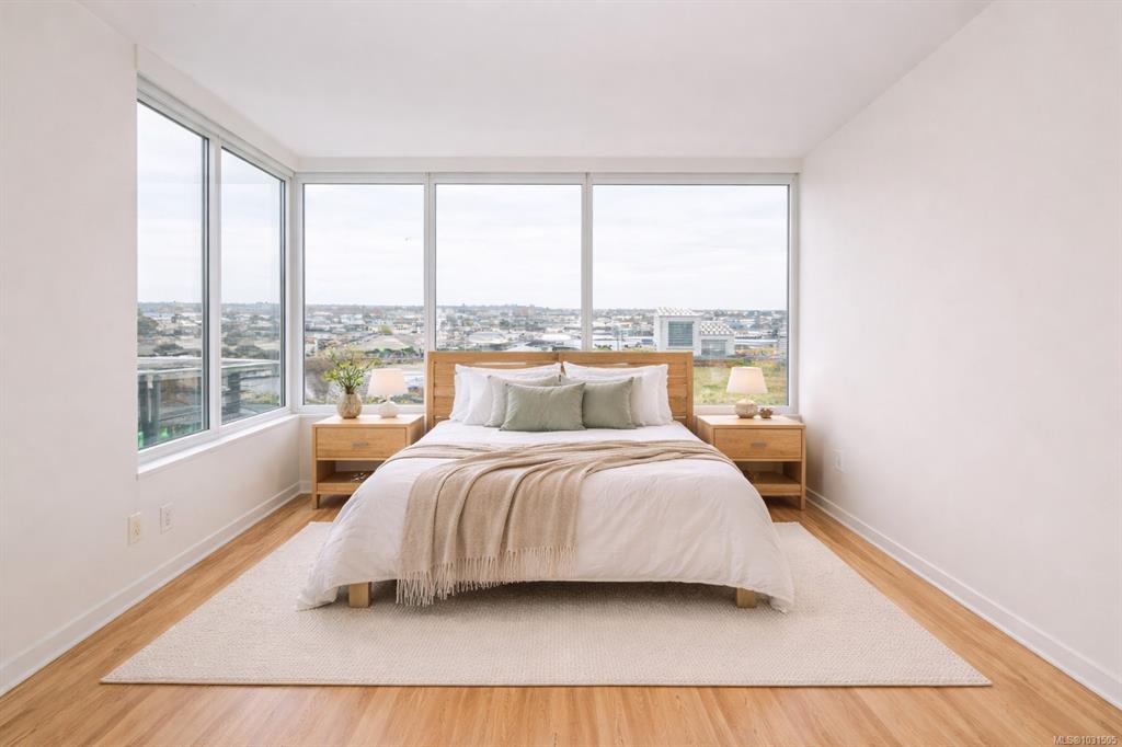 Welcome to Synergy at Dockside Green, an award-winning, LEED Platinum community in Victoria West. This bright 2 bedroom + den corner suite offers stunning views over the Upper Harbour and into the Gorge Waterway, with wraparound floor-to-ceiling windows filling the home with natural light and showcasing beautiful sunrises and evening cityscapes, enjoyed from both the main living areas and bedrooms. The open-concept living and dining area provides a thoughtful layout with separation between bedrooms, while t...