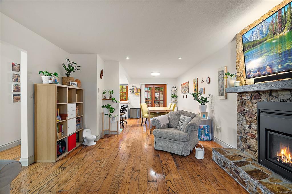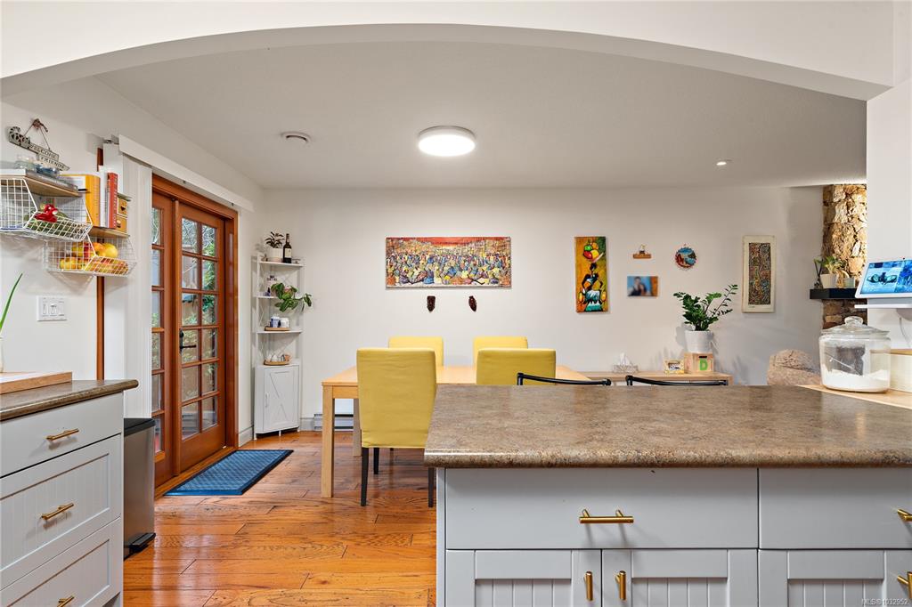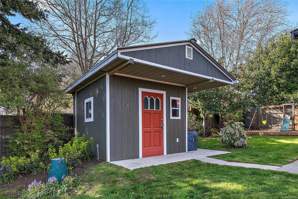 OPEN HOUSE - Sat Apr 25 1-3pm - Beautifully updated 3-bedroom, 2-bath rancher on a spacious Saanich East lot just under 10,000 sq ft. Enjoy comfortable one-level living with walkout access to a lovely, private backyard featuring mature landscaping, a new detached workshop/office space, and full fencing. Quality improvements include engineered hardwood, vinyl windows, updated kitchen, 2019 roof, gas fireplace, newer hot water tank, 2025 heat pump system, and more. Excellent indoor-outdoor flow with a Mediter...