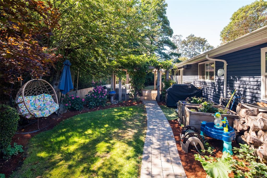 ATTENTION RETIREES, this one is ideal and awaits you, this turnkey 3 bed, 2 bath ONE LEVEL LIVING backs onto Feltham Park and peaceful trails, offering a rare blend of nature and city living. Spend your mornings with coffee under the reclaimed cedar pergola, surrounded by lush gardens and apple trees, or unwind in the evening with the sounds of birdsong and parkland just beyond the yard. Inside, the bright and inviting layout includes a custom kitchen with quartz counters, gas range, and stainless steel app...