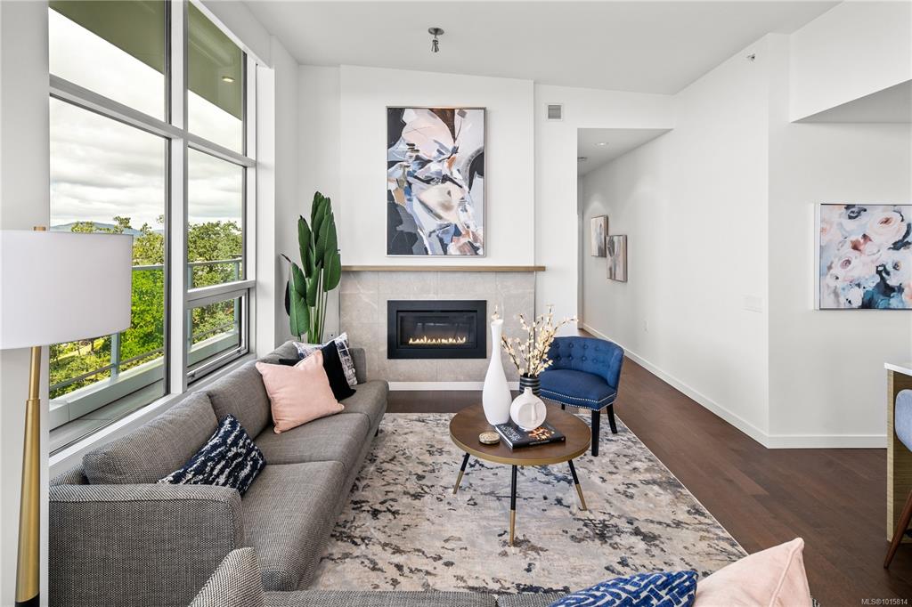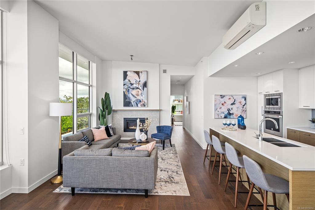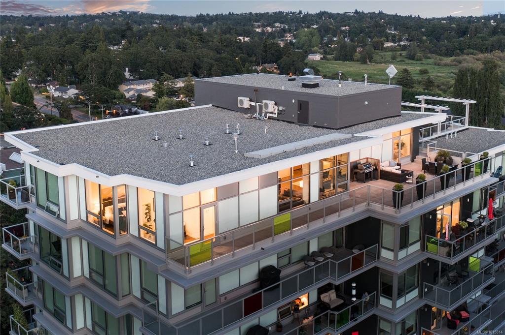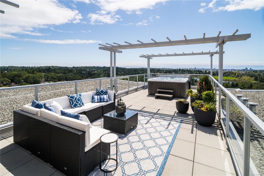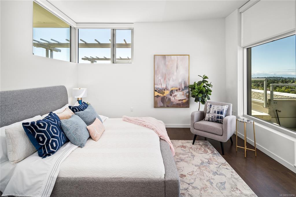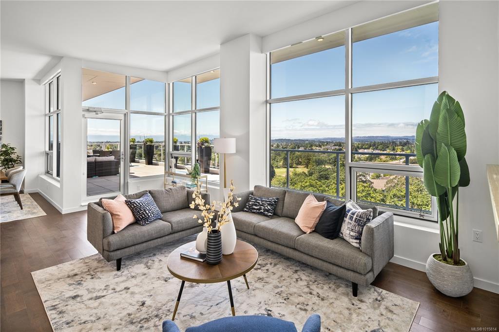 Open House: Sunday 1-3. A Rare Penthouse Offering. The premier residence in this steel & concrete development and one of only two on its floor, this home is truly without equal. Nearly 1,600 sq.ft. of private terraces showcase 300° views from downtown Victoria to the Sooke Hills & Olympic Mountains. Inside, 1,568 sq.ft. of light-filled space features vaulted ceilings, expansive windows, built-in valences & heat pumps found only in penthouse homes. A split-bedroom layout ensures privacy, each with a deluxe e...