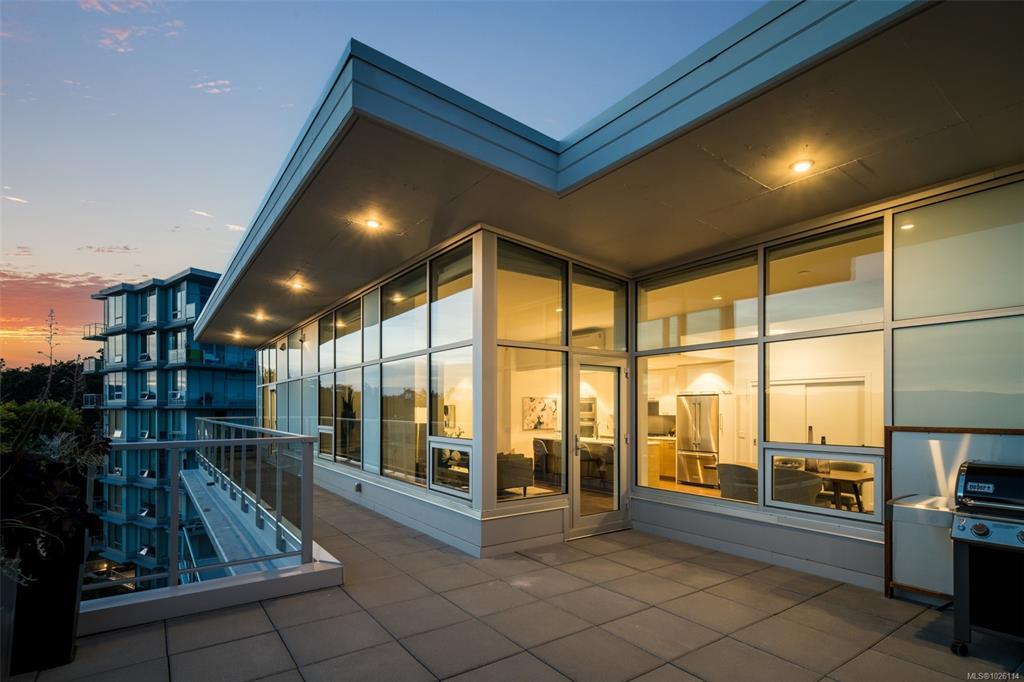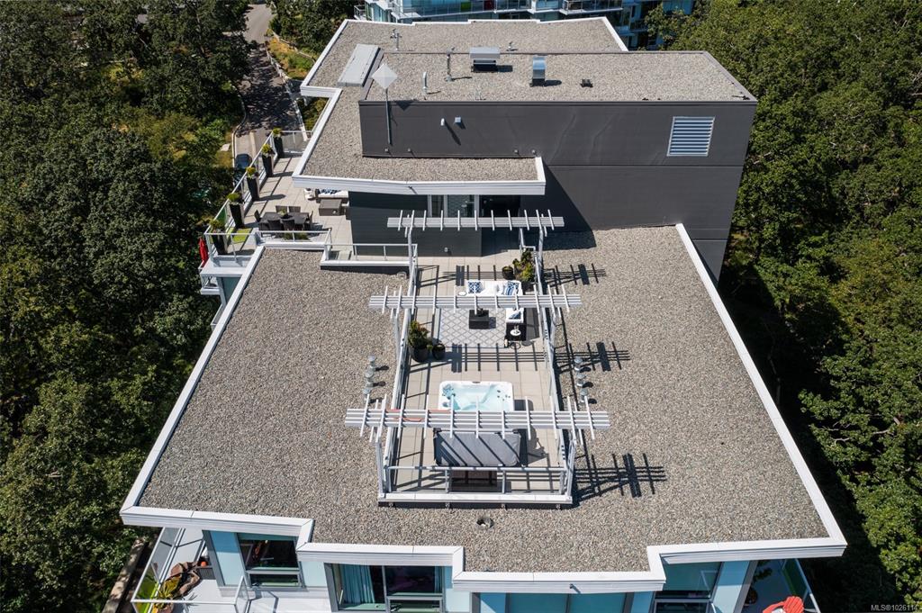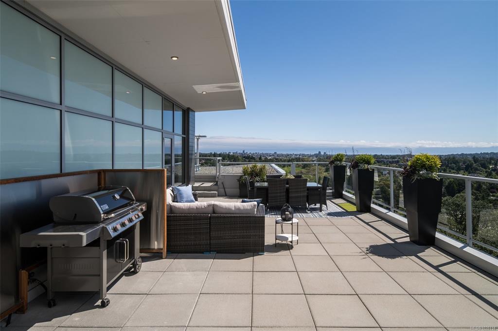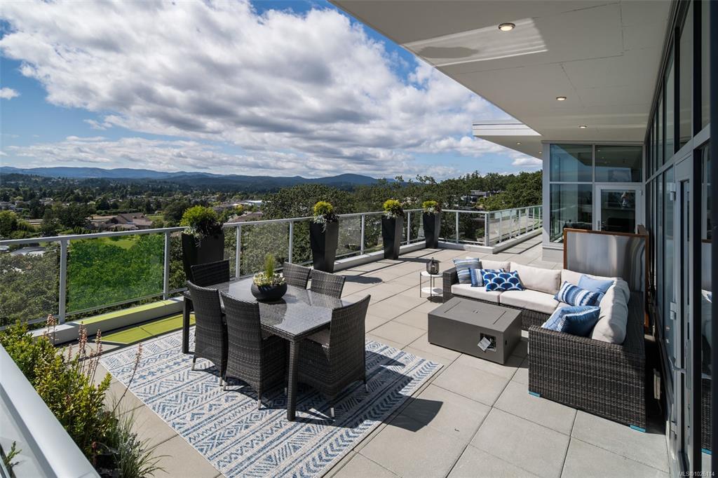 Open House: Sat 1-3 pm A Rare Penthouse Offering. The premier residence in this steel & concrete development and one of only two on its floor, this home is truly without equal. Nearly 1,600 sq.ft. of private terraces showcase 300° views from downtown Victoria to the Sooke Hills & Olympic Mountains. Inside, 1,568 sq.ft. of light-filled space features vaulted ceilings, expansive windows, built-in valences & heat pumps found only in penthouse homes.A split-bedroom layout ensures privacy, each with a deluxe ens...