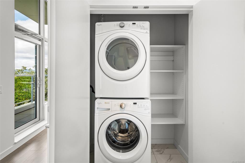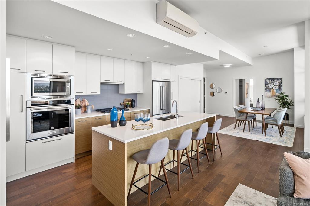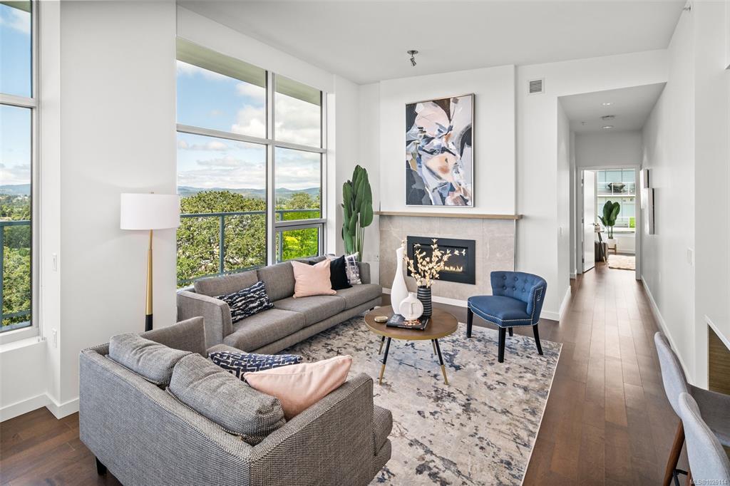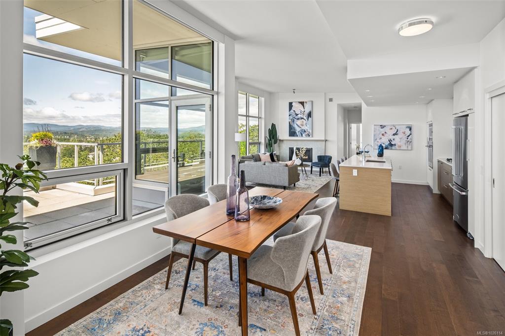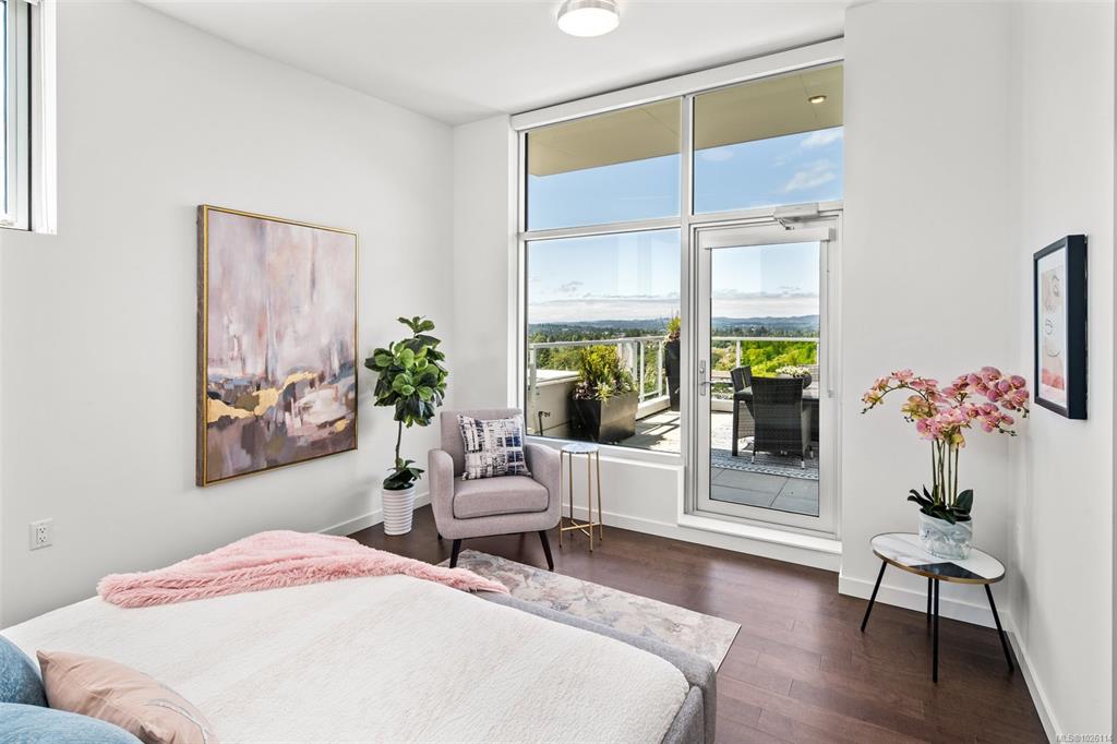Open House: Sat 1-3 pm A Rare Penthouse Offering. The premier residence in this steel & concrete development and one of only two on its floor, this home is truly without equal. Nearly 1,600 sq.ft. of private terraces showcase 300° views from downtown Victoria to the Sooke Hills & Olympic Mountains. Inside, 1,568 sq.ft. of light-filled space features vaulted ceilings, expansive windows, built-in valences & heat pumps found only in penthouse homes.A split-bedroom layout ensures privacy, each with a deluxe ens...