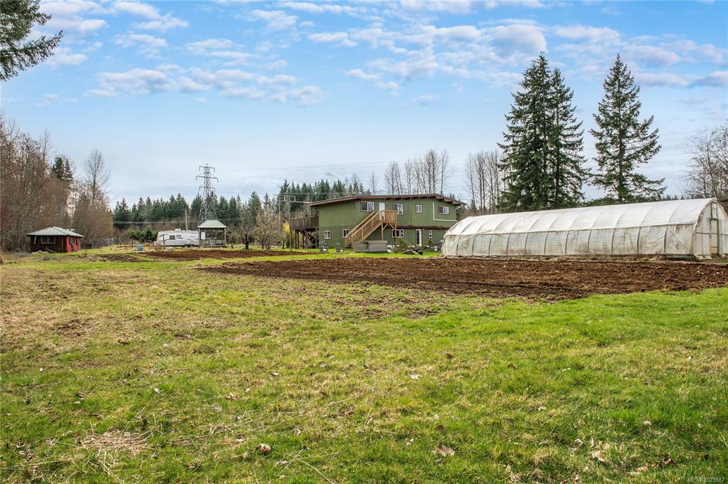 Rare 7 acre hobby farm located in the popular York Road area between Campbell River & Courtenay on a no-through road, just 7 minutes off of the Island Hwy. This 5 bedroom, 2.5 bathroom home offers over 3000 sq' of living space on two levels. There are two new kitchens (2021) that are perfect for a multi-generational family & a large deck on the upper level for entertaining. The home features a new lifetime warranty metal roof, mini-split heat pump & has recently undergone $400K worth of updating & structura...