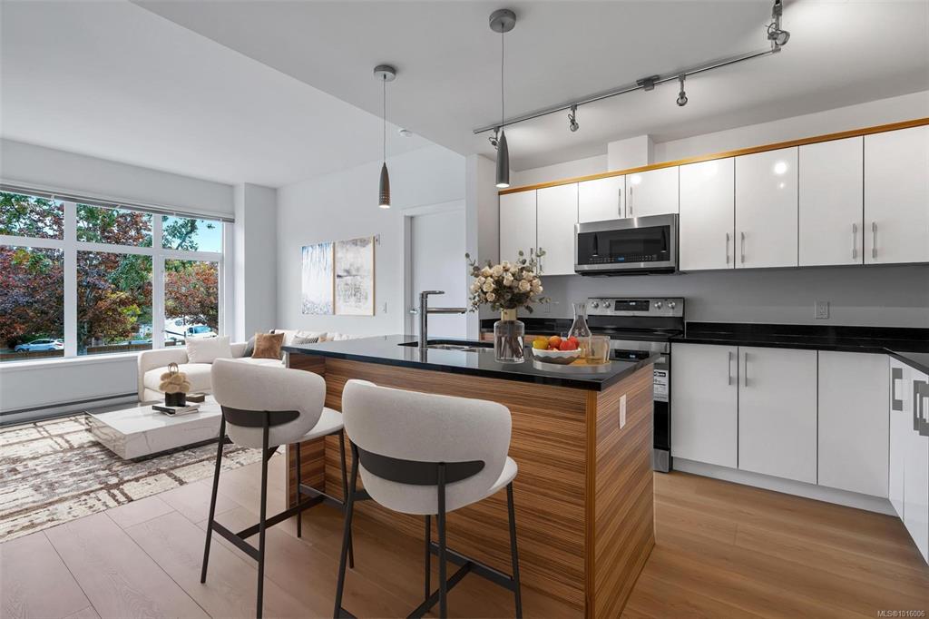 Step into this stylish, move-in-ready 2 bed 2 bath condo that offers unbeatable value and modern comfort just minutes from UVic! The functional floor plan features two bedrooms thoughtfully separated on opposite sides for maximum privacy — ideal for students sharing, young professionals, or small families. The spacious open layout, large windows, and quality finishes create a bright and inviting atmosphere. Enjoy stainless-steel appliances, in-suite laundry, secured underground parking, and a private balcon...