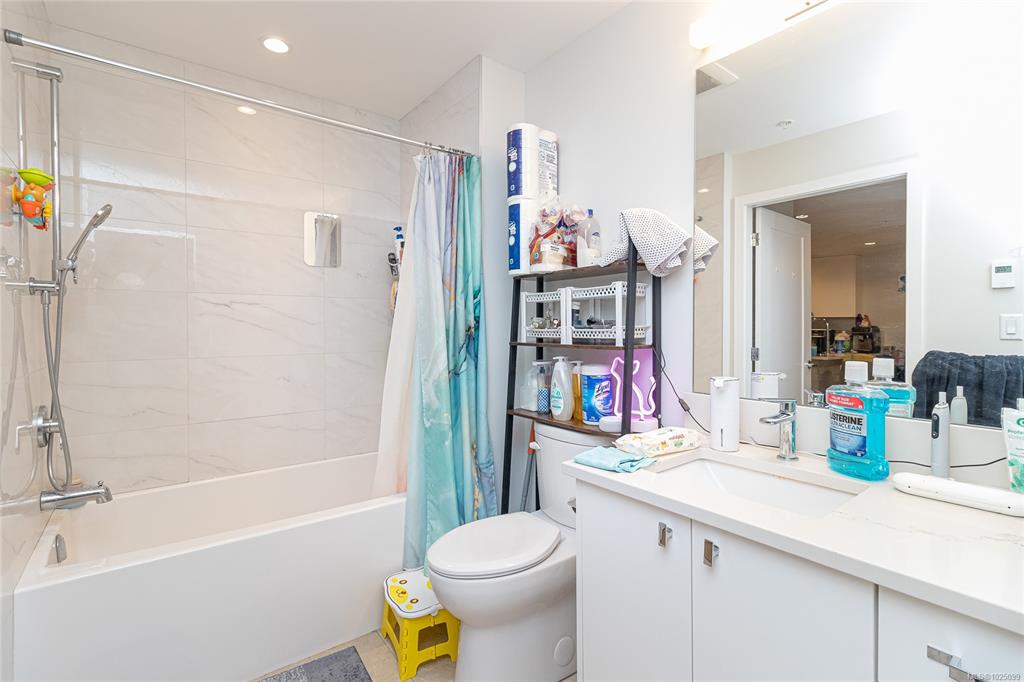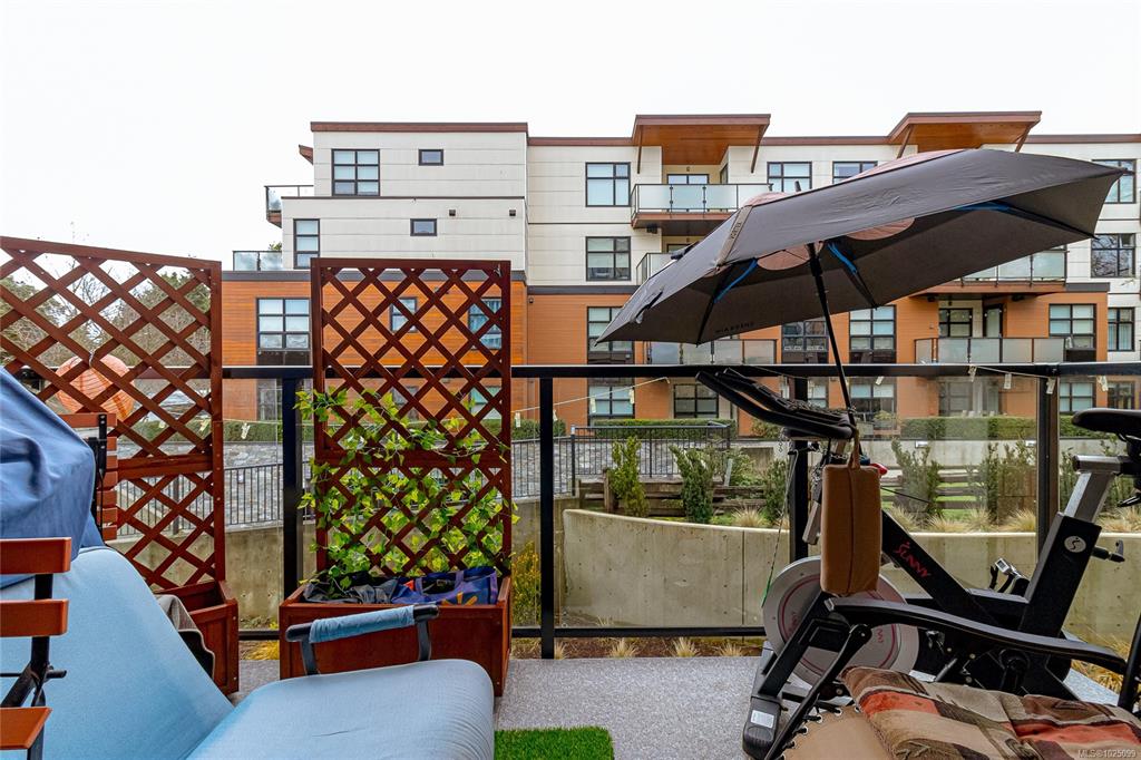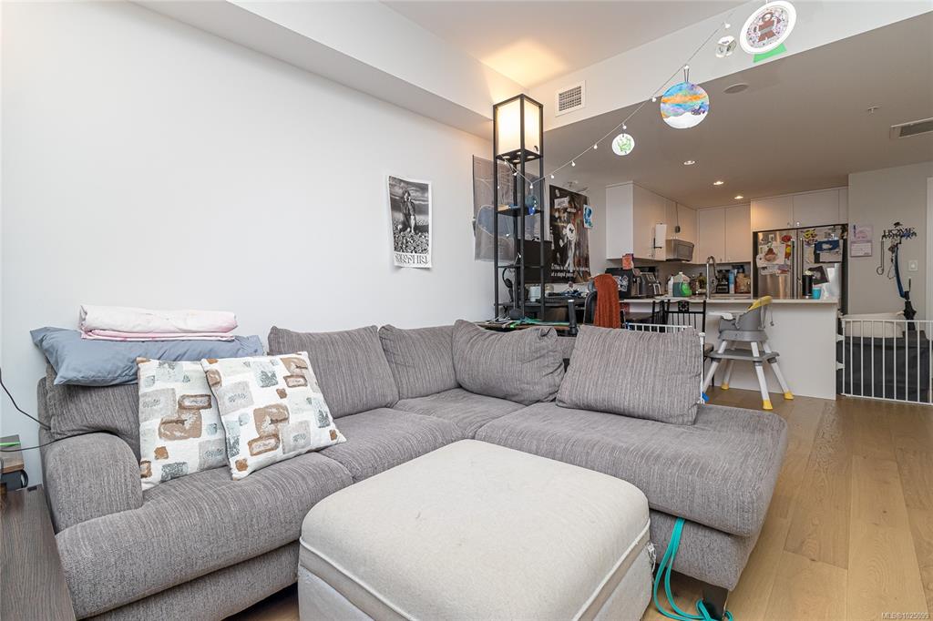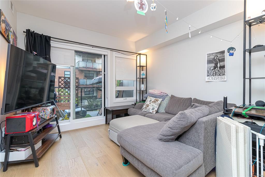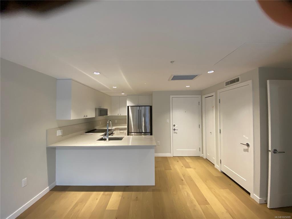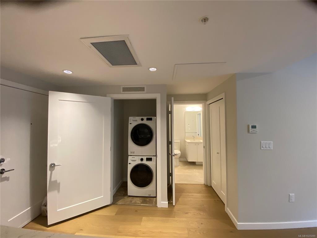 Welcome to The Affinity! This like-new (December 2023) 1-bedroom spacious unit (665 sf) features engineered hardwood floors, quartz countertops and Kitchenaid appliances along with an HVAC system to keep you cool on those warm Victoria summer days, the finishings speak for themselves! In-suite laundry, secure underground parking with EV charging in every spot, separately secured storage locker and bike storage, plus lots of visitor parking. Strata fees includes natural gas domestic hot water system. Balance...