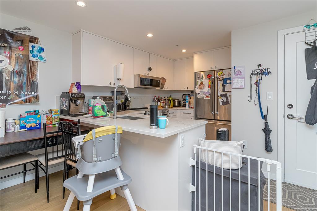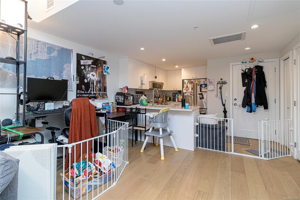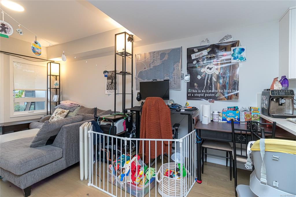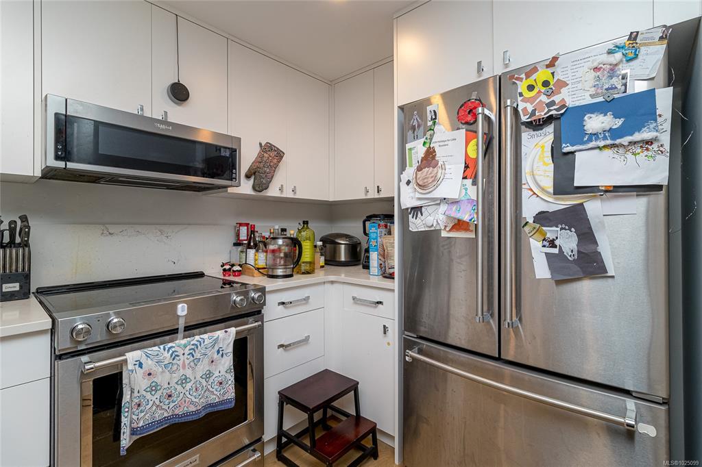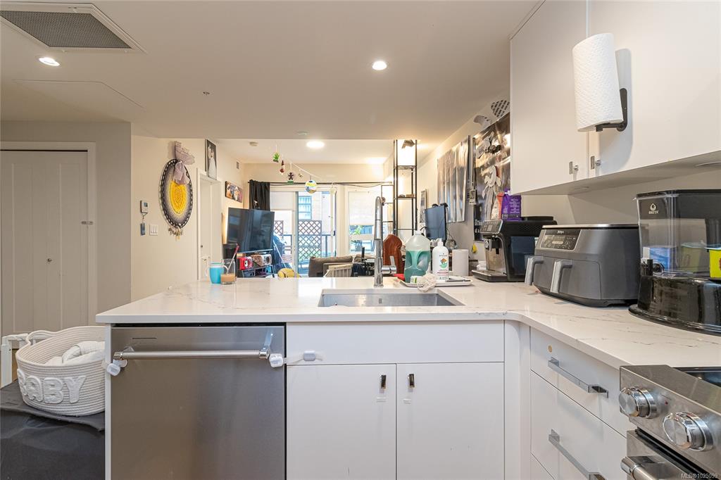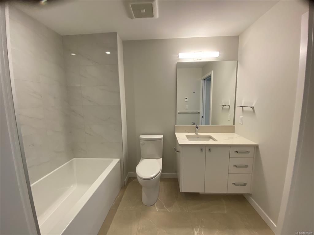 Welcome to The Affinity! This like-new (December 2023) 1-bedroom spacious unit (665 sf) features engineered hardwood floors, quartz countertops and Kitchenaid appliances along with an HVAC system to keep you cool on those warm Victoria summer days, the finishings speak for themselves! In-suite laundry, secure underground parking with EV charging in every spot, separately secured storage locker and bike storage, plus lots of visitor parking. Strata fees includes natural gas domestic hot water system. Balance...