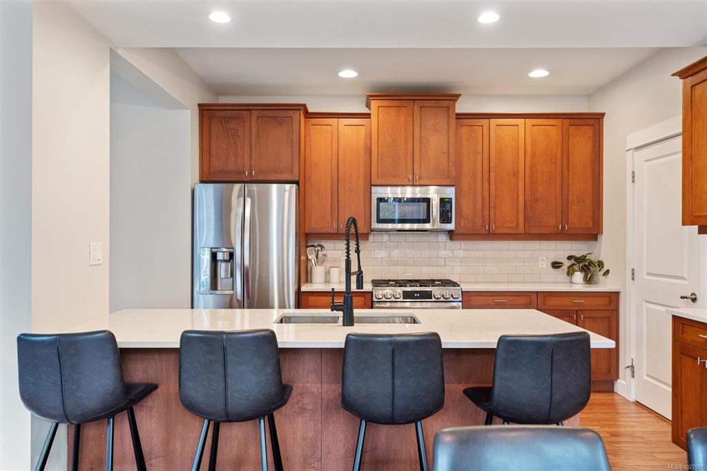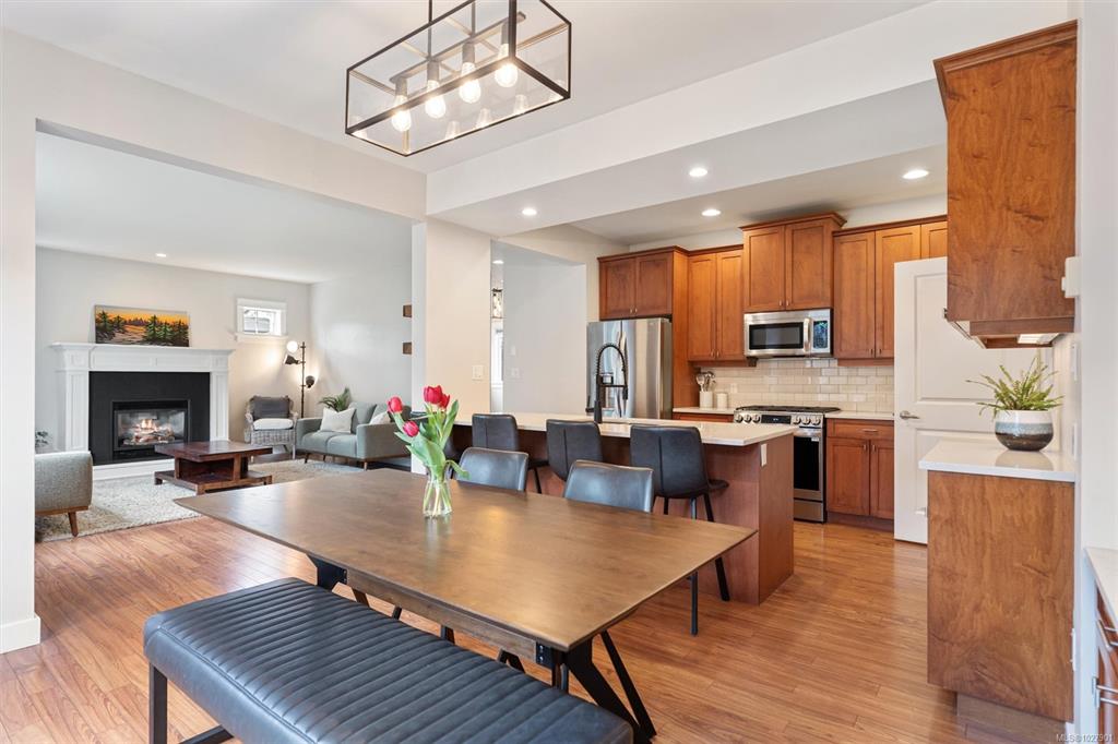 Tucked at the end of a quiet cul-de-sac in Saanich’s popular Copperfield Village, this thoughtfully designed 2007 home offers an ideal layout for family living. A rare highlight is four bedrooms located on the upper level. The main floor features a bright open plan with a generous kitchen & island, plus easy access to the patio for outdoor dining. The adjoining living & dining areas feel warm and inviting with a gas fireplace & 9-foot ceilings, while a separate family room and powder room add everyday funct...