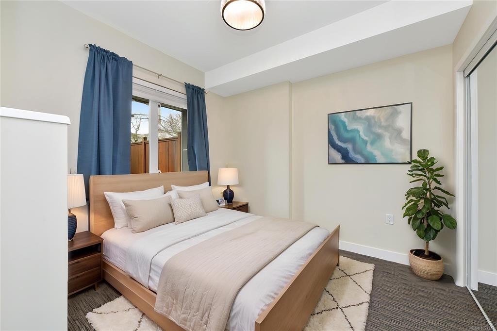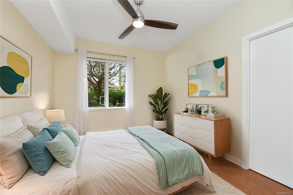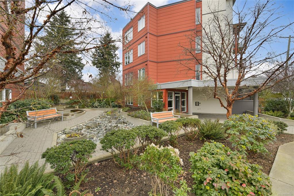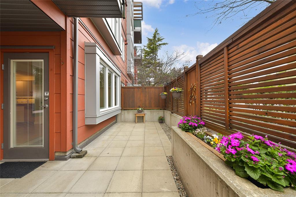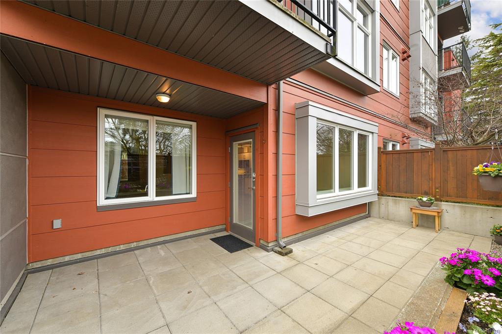 Welcome to The Brix - a central and sought after ground level condo with large 196 sq ft patio! Enjoy your own fenced patio with private entrance. Perfect for walkers and dog owners with only mere steps to the Lochside Trail. 2 well separated bedrooms and 2 full baths including a spacious 10 x 8 ensuite bathroom. Efficient floor plan, 8 foot ceilings, open concept kitchen and living area with fireplace. Updates include closet organizer, fresh paint, heated floors in spacious ensuite bathroom and remote ...