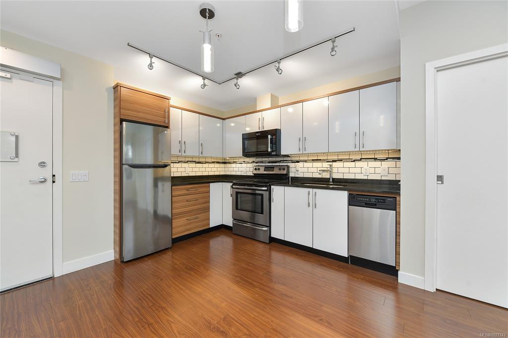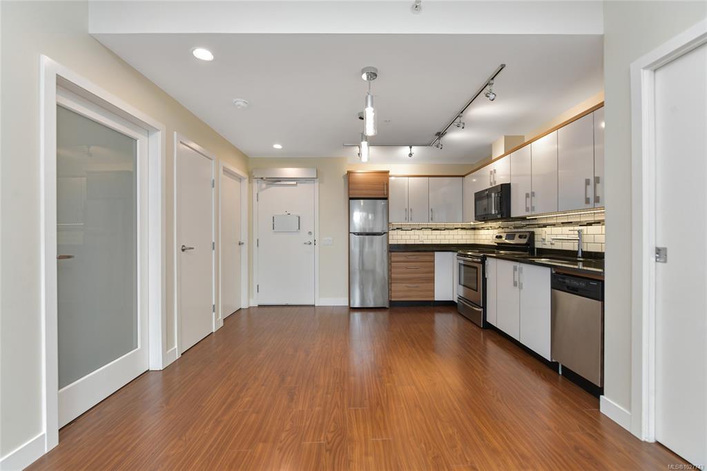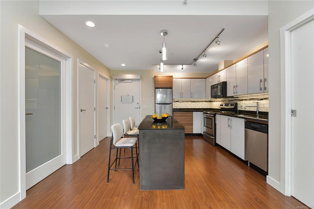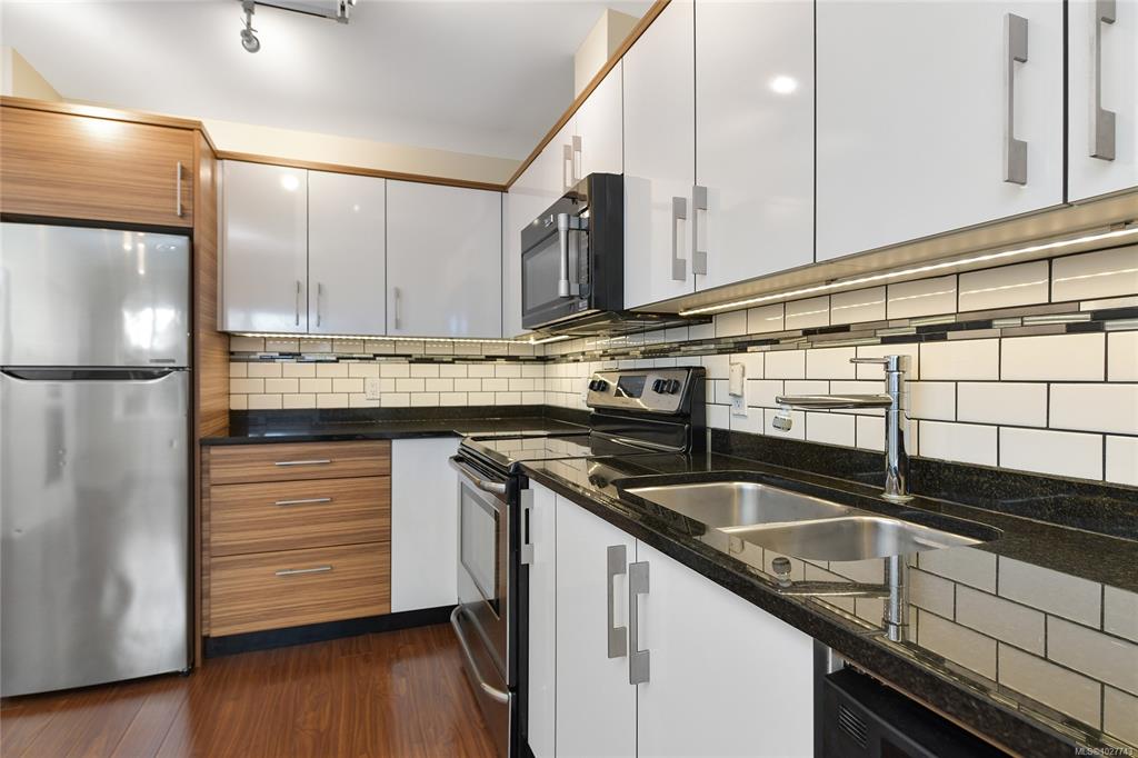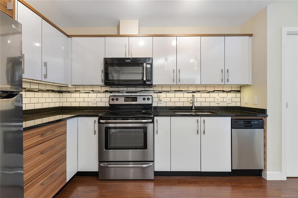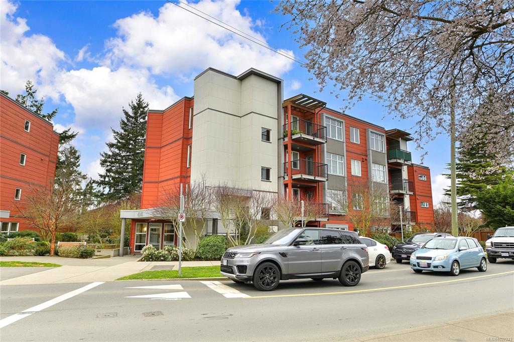 Welcome to The Brix - a central and sought after ground level condo with large 196 sq ft patio! Enjoy your own fenced patio with private entrance. Perfect for walkers and dog owners with only mere steps to the Lochside Trail. 2 well separated bedrooms and 2 full baths including a spacious 10 x 8 ensuite bathroom. Efficient floor plan, 8 foot ceilings, open concept kitchen and living area with fireplace. Updates include closet organizer, fresh paint, heated floors in spacious ensuite bathroom and remote ...