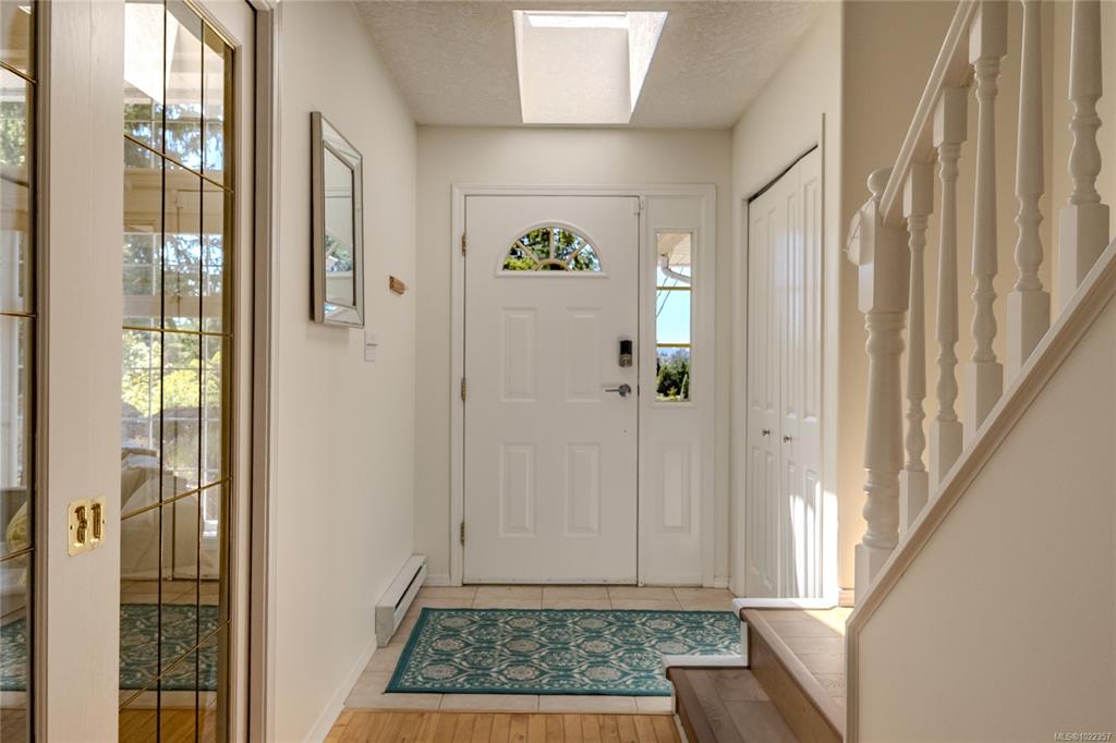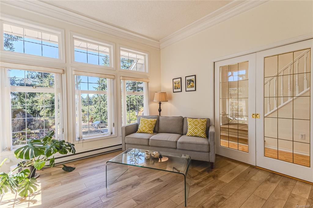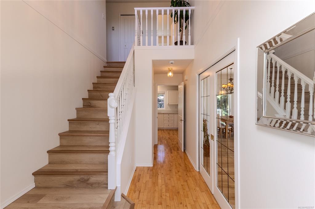 Solid family home Sitting high on a sunny lot in wooded Thetis Heights. A 0.47 acre lot featuring lots of stonework, privacy and views. A custom-built home with top end features, from a beautiful staircase in the grand entrance to the luxury living room with tall windows topped with transom windows that flood the house with light, to the millwork mantel over gas FP & handsome crown moulding on high ceilings which carry thru to the formal dining that opens to a big deck. The kitchen offers lots of cabinetry...