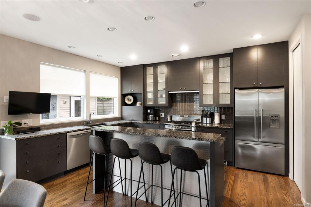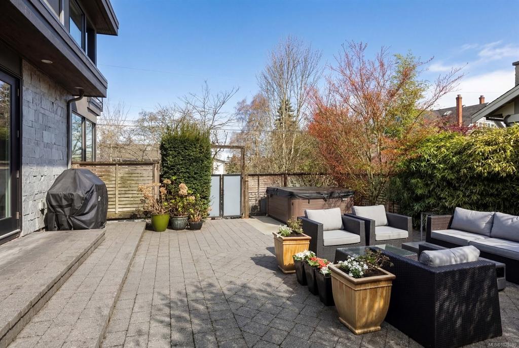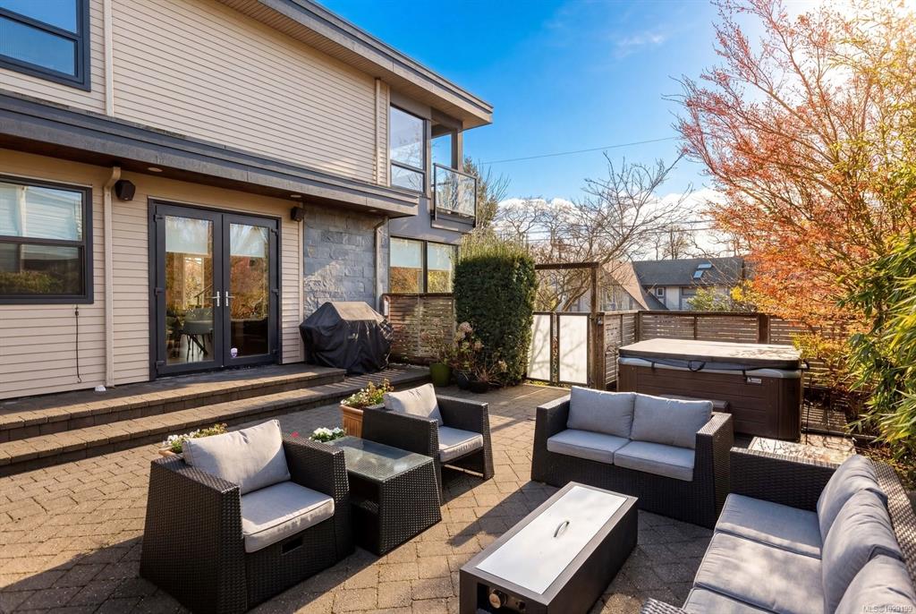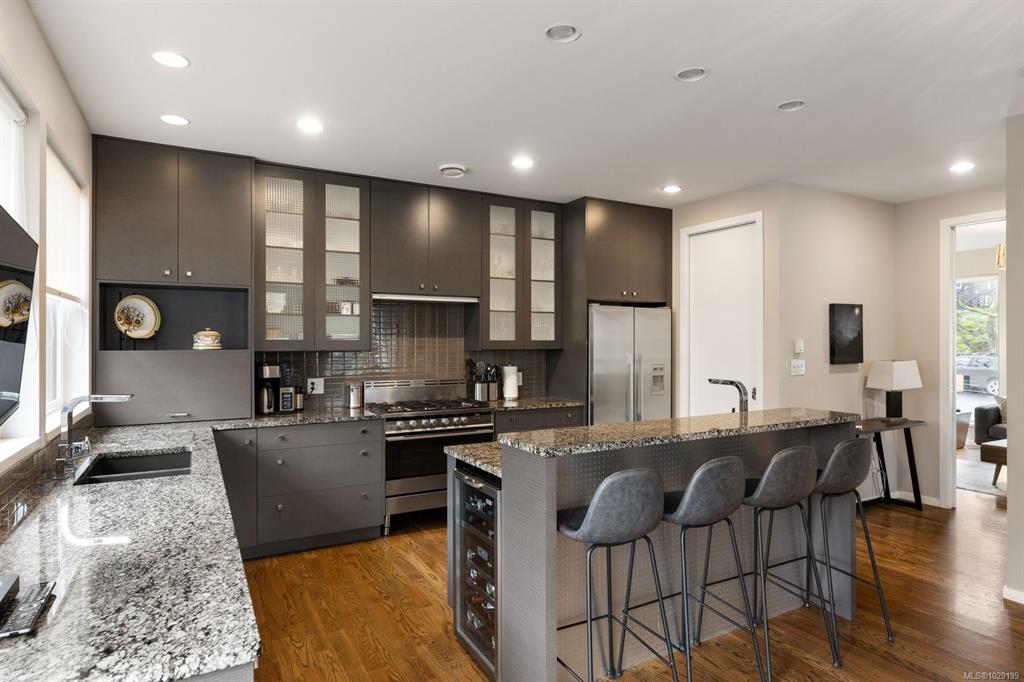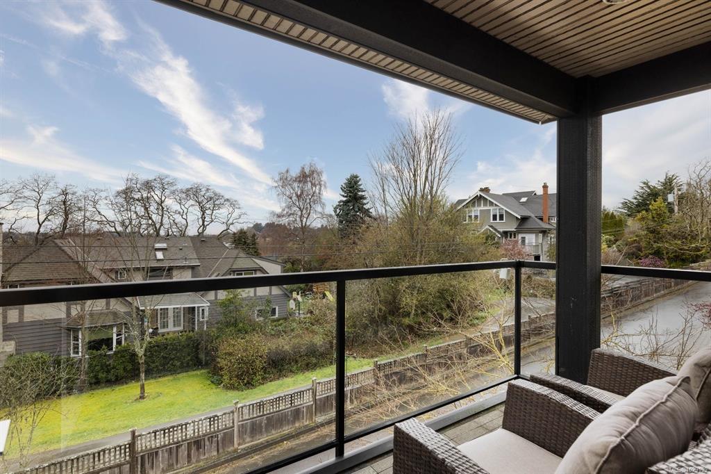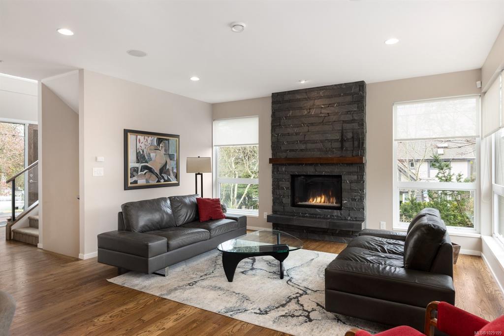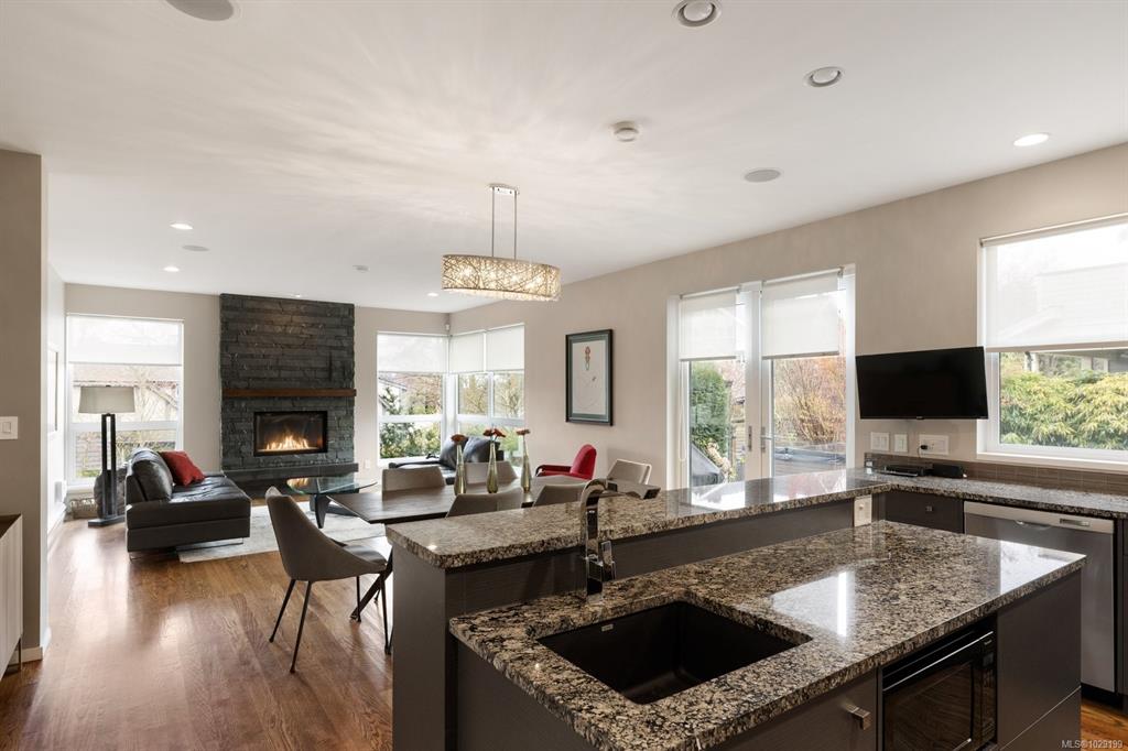 Stunning West Coast Contemporary home on the Fairfield Oak Bay border. Expertly built by Prodigy Developments with landscaping by Landeca. A vaulted entry welcomes you to this light filled 4 bed, 4 bath plus den home and leads you into the open concept great room with the living room highlighting a floor to ceiling slate fireplace, kitchen with breakfast bar, granite counters, wine fridge, gourmet Fisher & Paykel gas stove, oak hardwood floors throughout, and designer lighting. Ideal for family life and ent...
