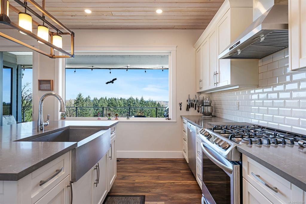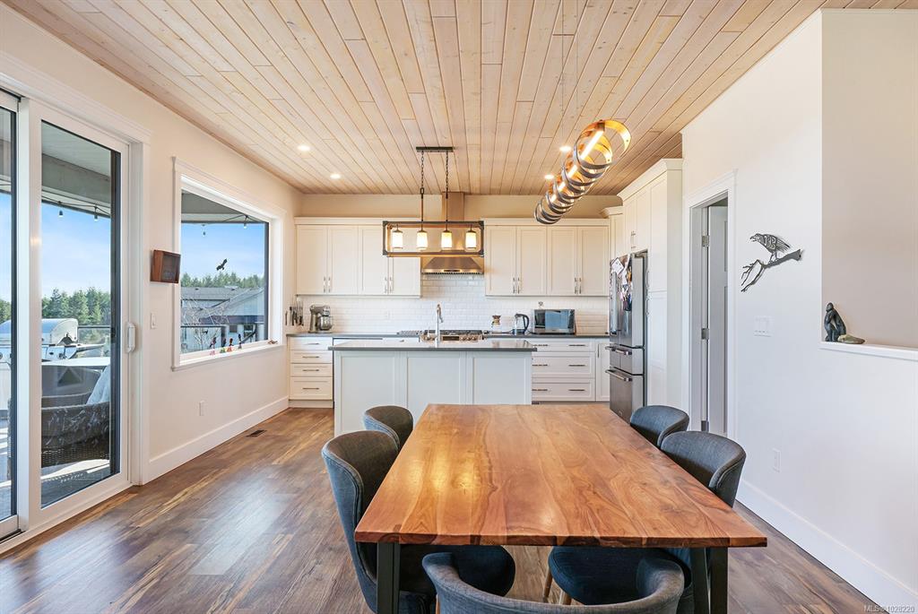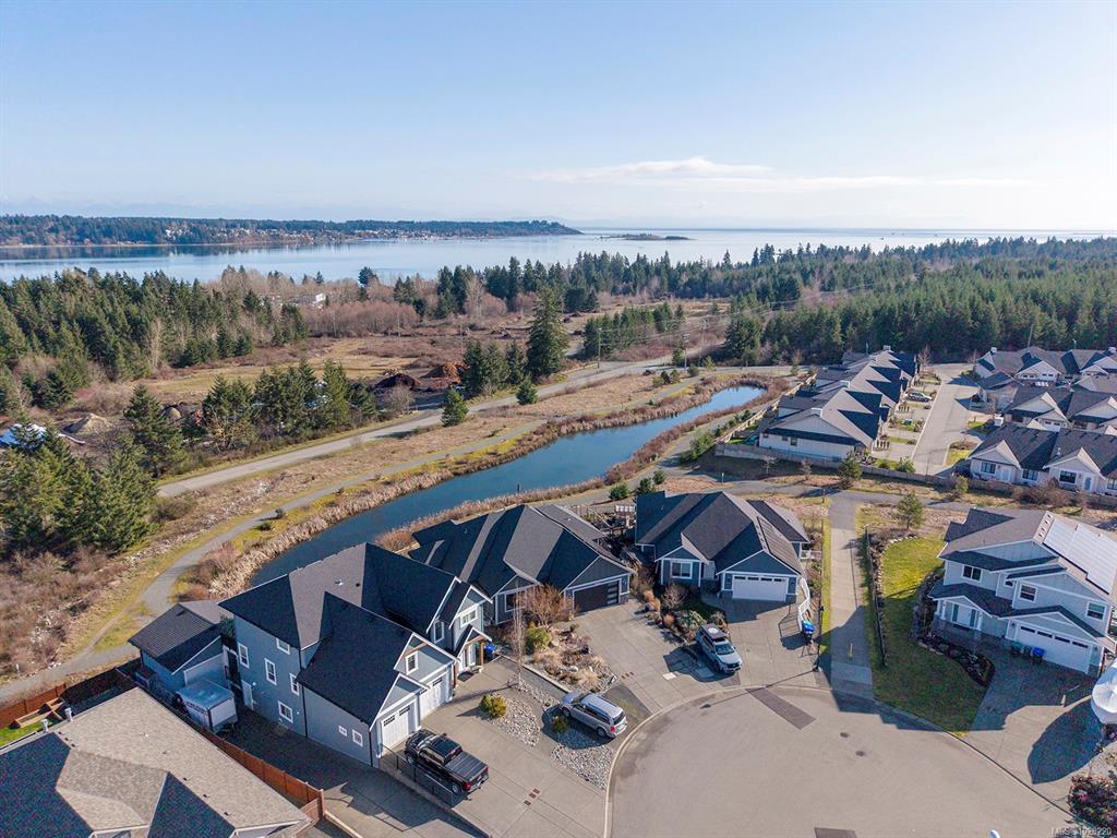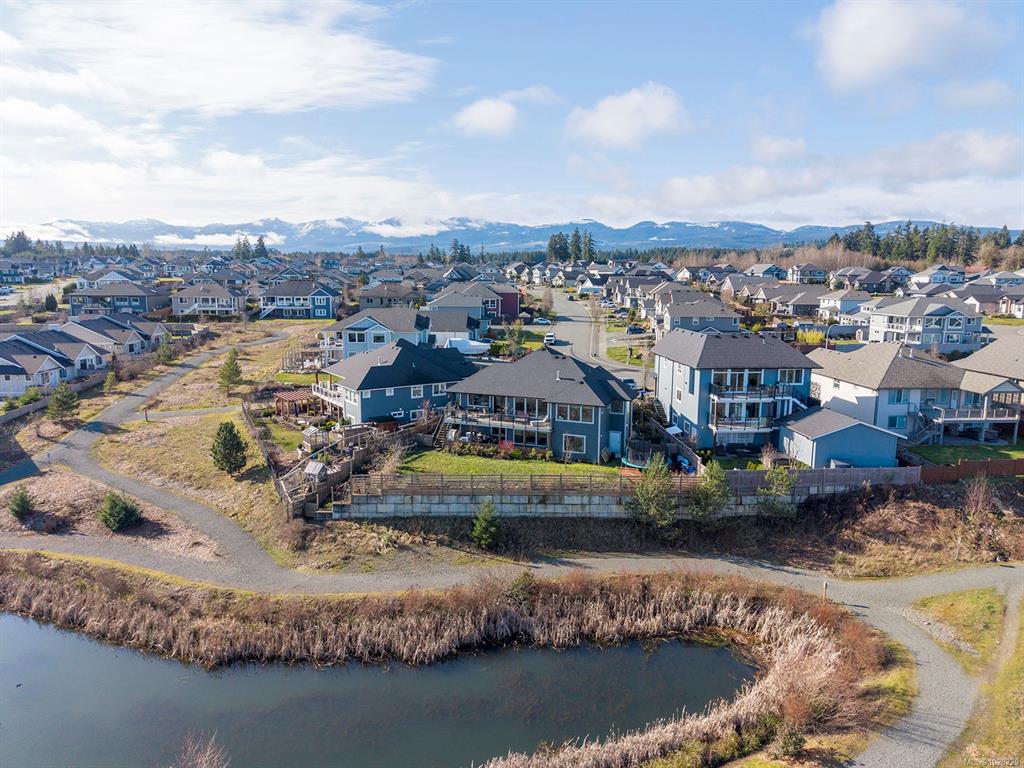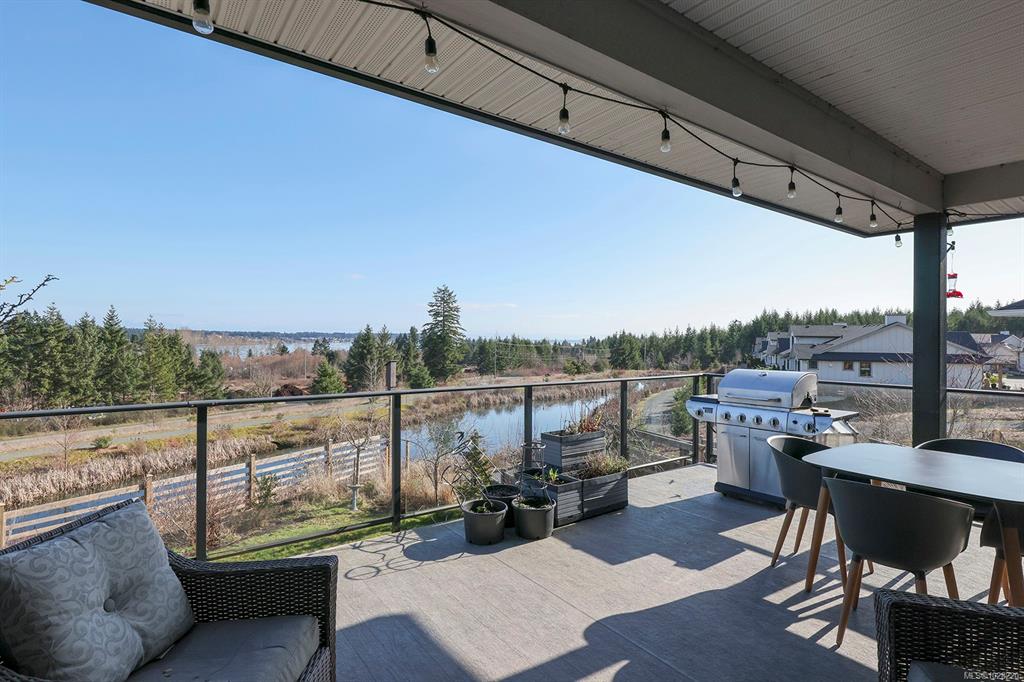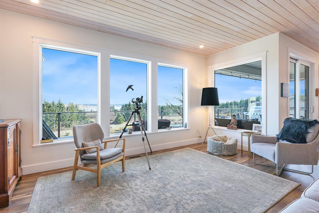 Experience the perfect balance of nature, comfort, and thoughtful design in this stunning 3,466 sqft Lawmar-built semi-custom home, built in 2018. Set on a spacious 0.21-acre lot, the home captures beautiful ocean views of the estuary and Comox Harbour while overlooking a peaceful park and wildlife-filled pond. Inside, whitewashed pine ceilings add warmth and character, while expansive windows bring in natural light and frame the serene landscape. Designed for flexible living, the home includes a 2-bedroom...
