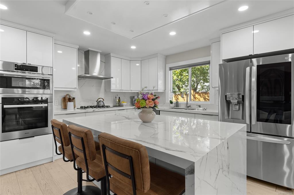 Luxury and comfort meet in this stunning, like-new 5-bed, 5-bath home incl. living room, family room, office/den, and a self-contained 1-bed suite (own hydro/entrance). Extension/renos done by one of Victoria’s top builders, it showcases modern elegance and premium quality. Main level boasts a bright open layout featuring a living room with linear fireplace, dining, gourmet Miele/Bosch kitchen, office, family room, full guest bath, and a main-level bedroom with ensuite. Upstairs, retreat to the spa-inspired...