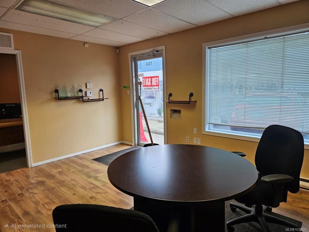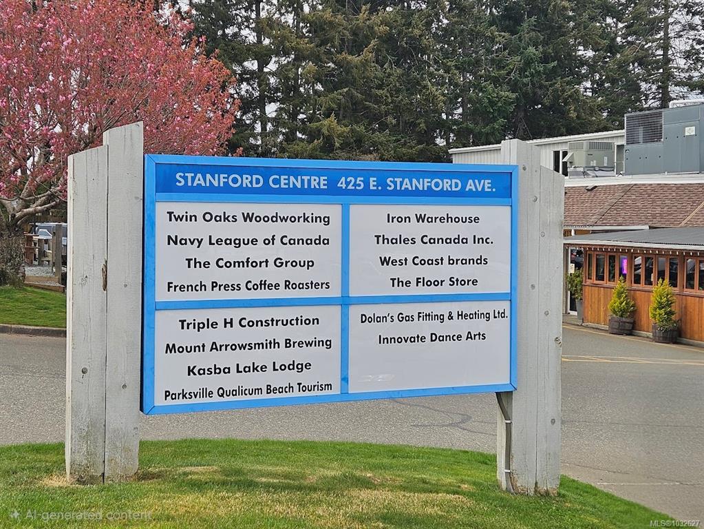 Unit 104 - 425 Stanford Avenue in Parksville is located within the 23-unit Stanford Centre, with this being the only unit currently available in the complex, offered for sale or lease. The unit provides approximately 2,263 square feet on the main floor, plus a 200 square foot mezzanine, with a functional layout including reception area, private office, file/storage room, break room with kitchenette, washroom, and warehouse/workshop areas. The main level offers front-facing office and reception space, a...