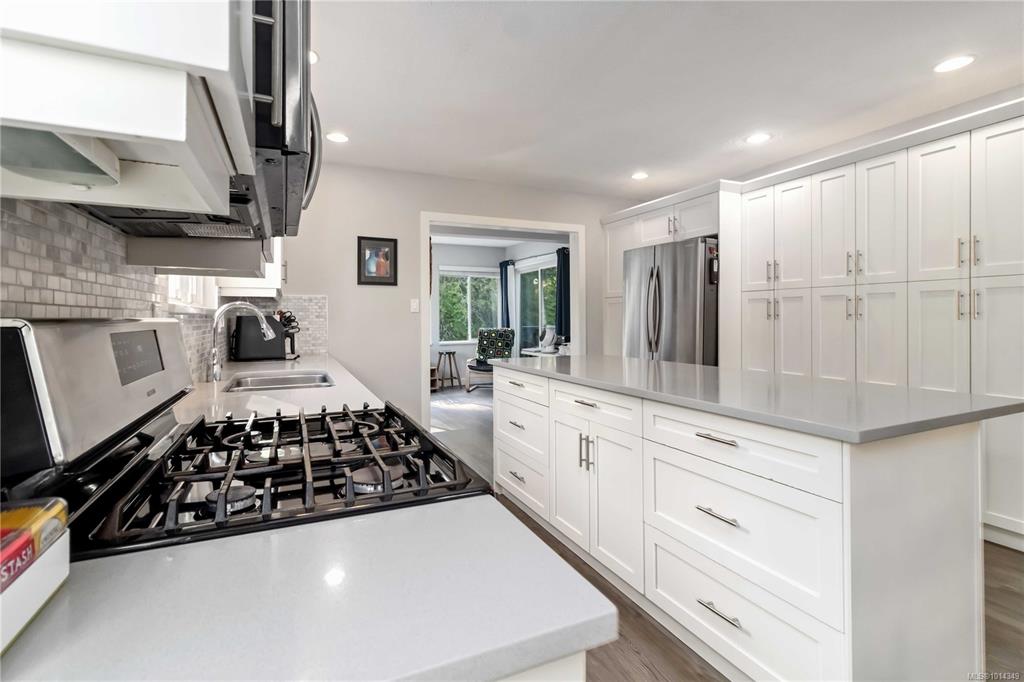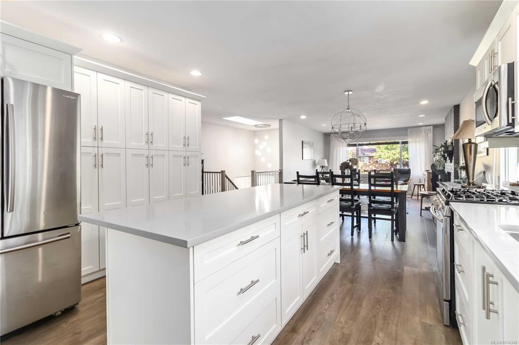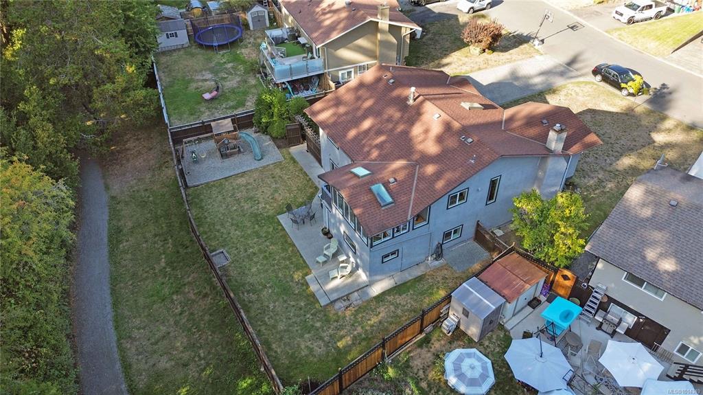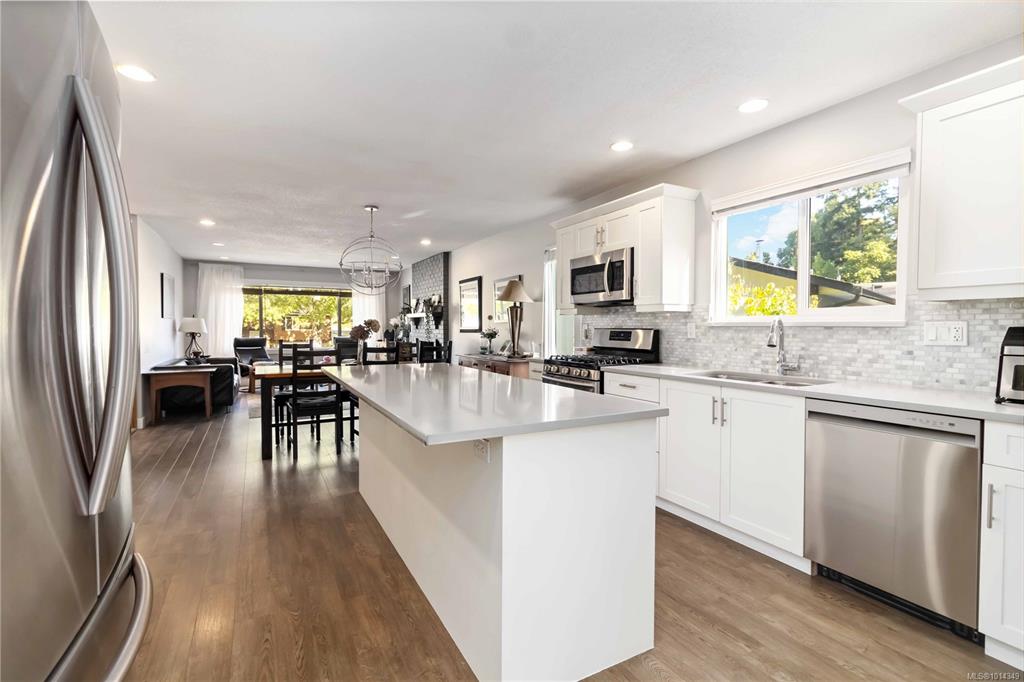 Come discover this versatile renovated home perfectly positioned in the family-friendly Northridge neighbourhood. Backing directly onto the Colquitz River Trail and Copley Park, this property offers everyday access to nature while being minutes from schools, shopping, and amenities. The 5-bed, 3-bath layout includes a bright main level with open living and dining areas, a stylish and well-equipped kitchen with island, and a sunroom that flows to the private fenced yard. Three bedrooms upstairs include a pri...