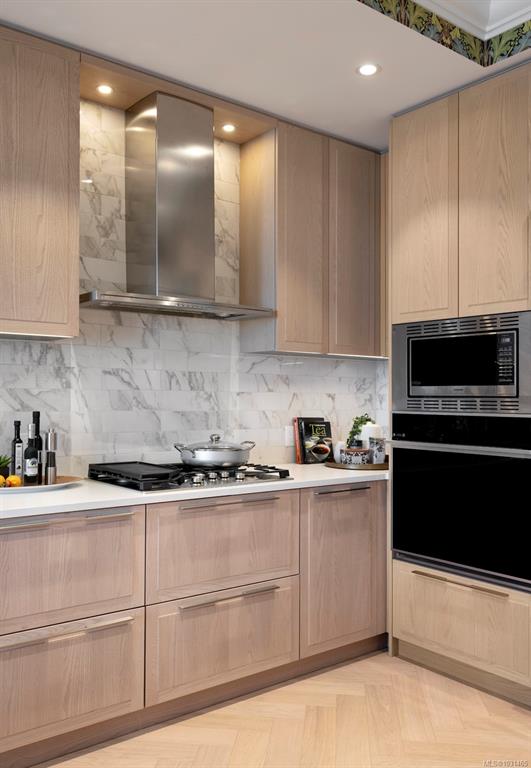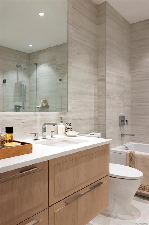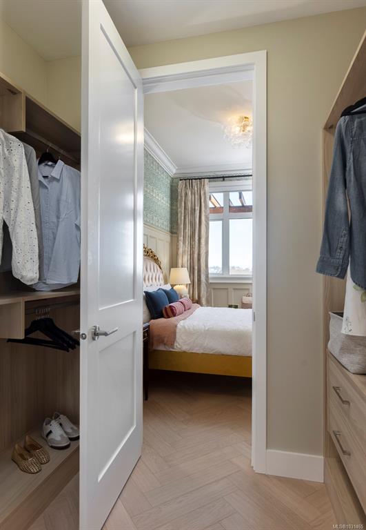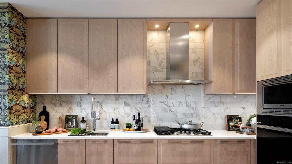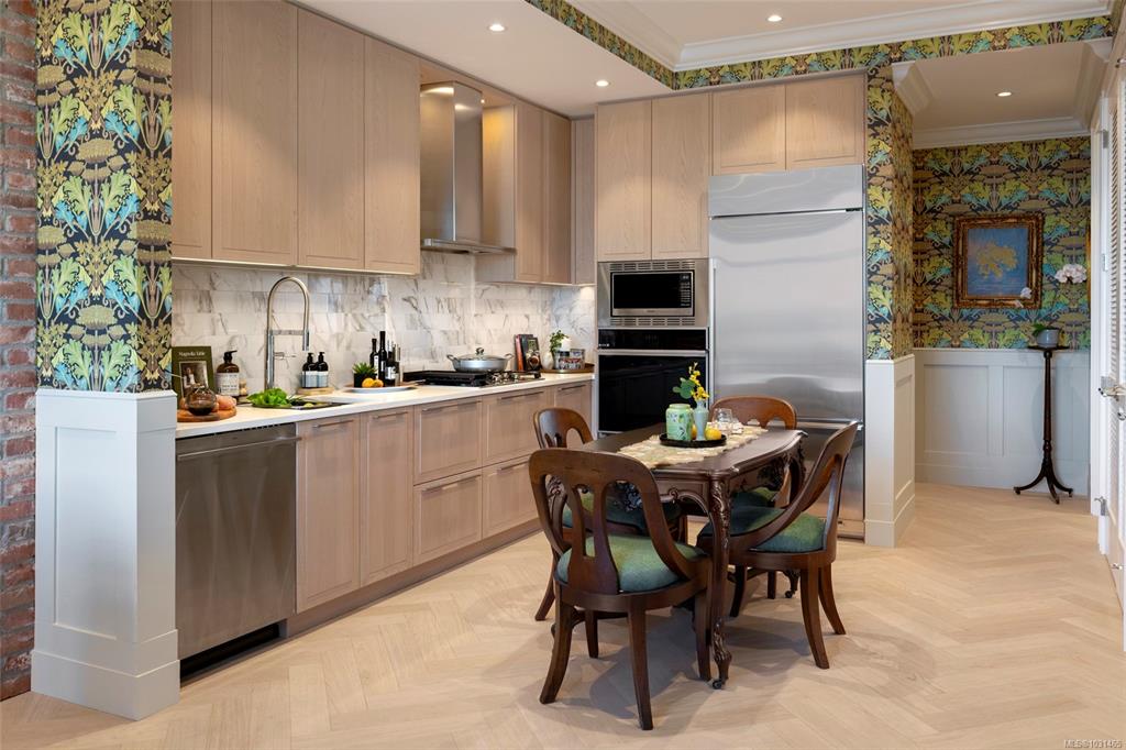 This stunning display home showcases wainscotting, crown mouldings, William Morris wall coverings and other timeless upgrades throughout, making it a truly unique place to call home. This spacious 1-bed, 1-bath home features a practical floorplan with 9’7” ceilings, 8’ doors, and herringbone oak flooring. The chef-inspired kitchen offers a GE Monogram appliance package, 5-burner gas cooktop, tile backsplash, and Italian ash cabinetry with pull-out shelving. The spa-like bathroom includes a soaker tub and fr...