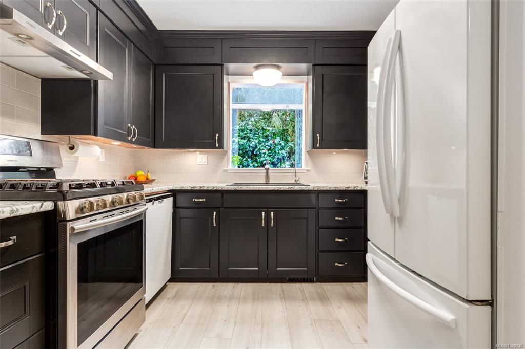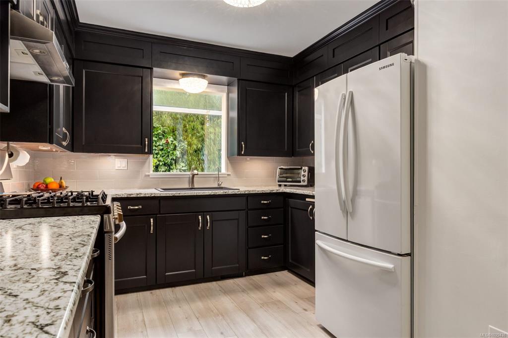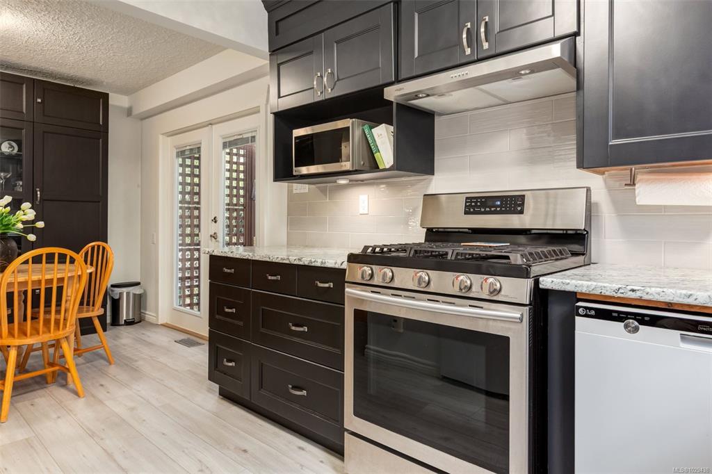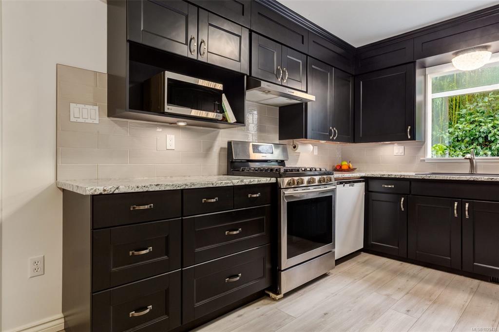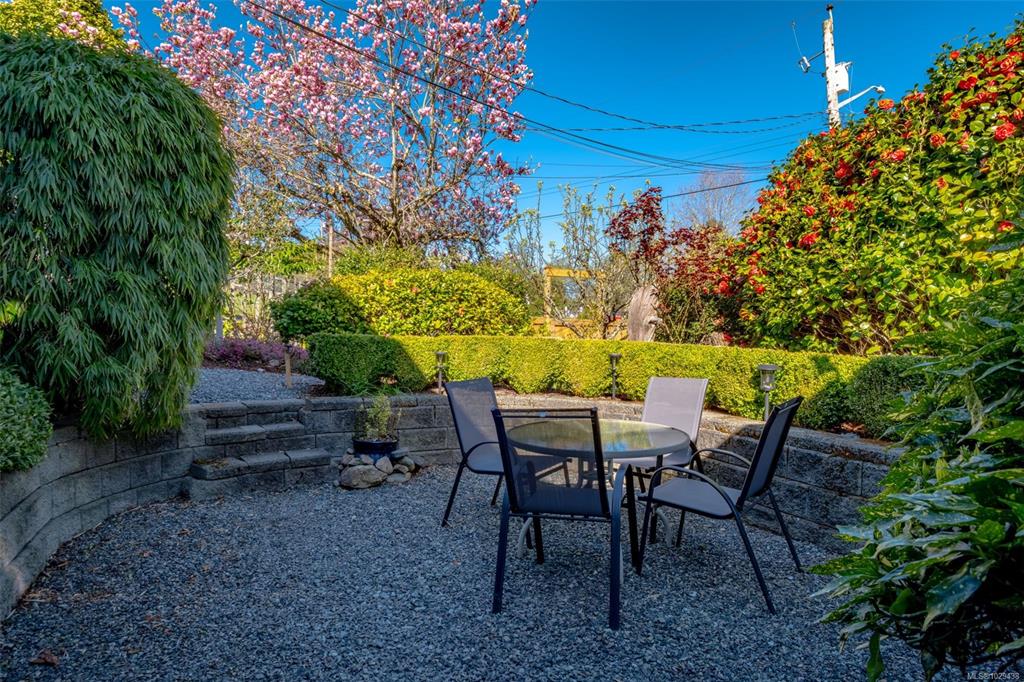This renovated home reflects the heart of Nanaimo’s Brechin area. The yard is an oasis with a waterfall, covered deck with woodstove, and an outdoor sitting to enjoy your privacy. Inside has a foyer with 12’ ceilings; the main level is updated with contemporary paint colours, fireplace with electric insert, and wired for surround sound, in the living room. The dining and kitchen areas are cozy yet functional with b/i buffet, French doors to your rear oasis, modern cabinetry with undercounter lighting, tiled...
