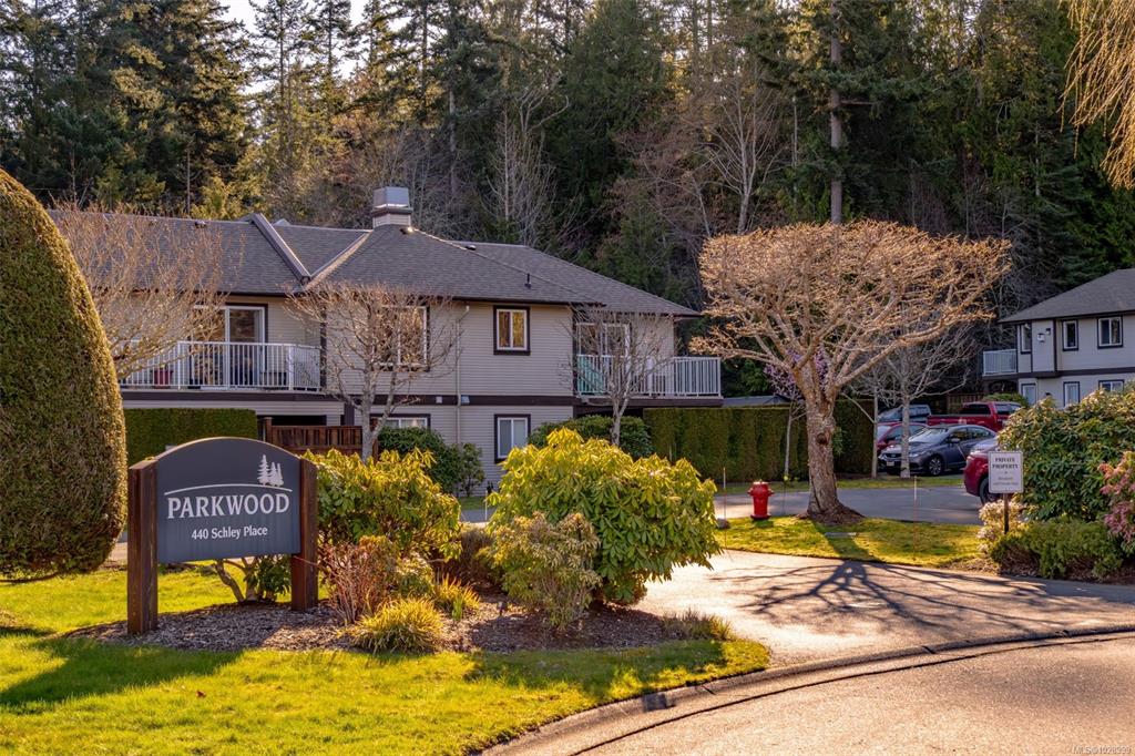 Welcome to Parkwood! This well-maintained, top-floor corner unit offers unmatched privacy and a bright, airy interior bathed in natural light from skylights. The spacious 2-bedroom, 2-bathroom layout features a cozy living area with a natural gas fireplace and a primary suite complete with a walk-through closet and ensuite. Enjoy ultimate peace of mind with a brand-new hot water tank, alongside the convenience of in-suite laundry, a large storage locker, and a private balcony overlooking lush gardens and ma...